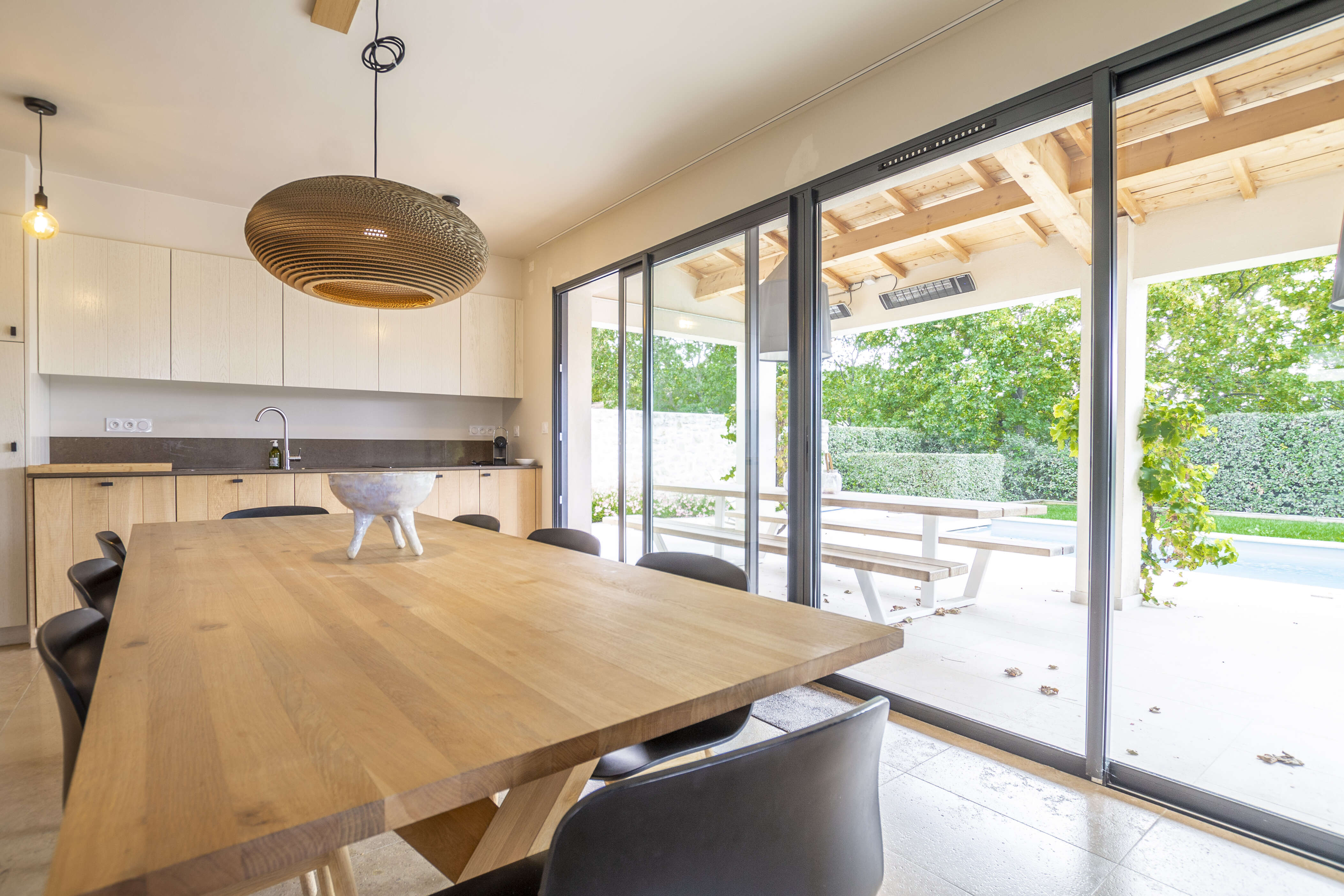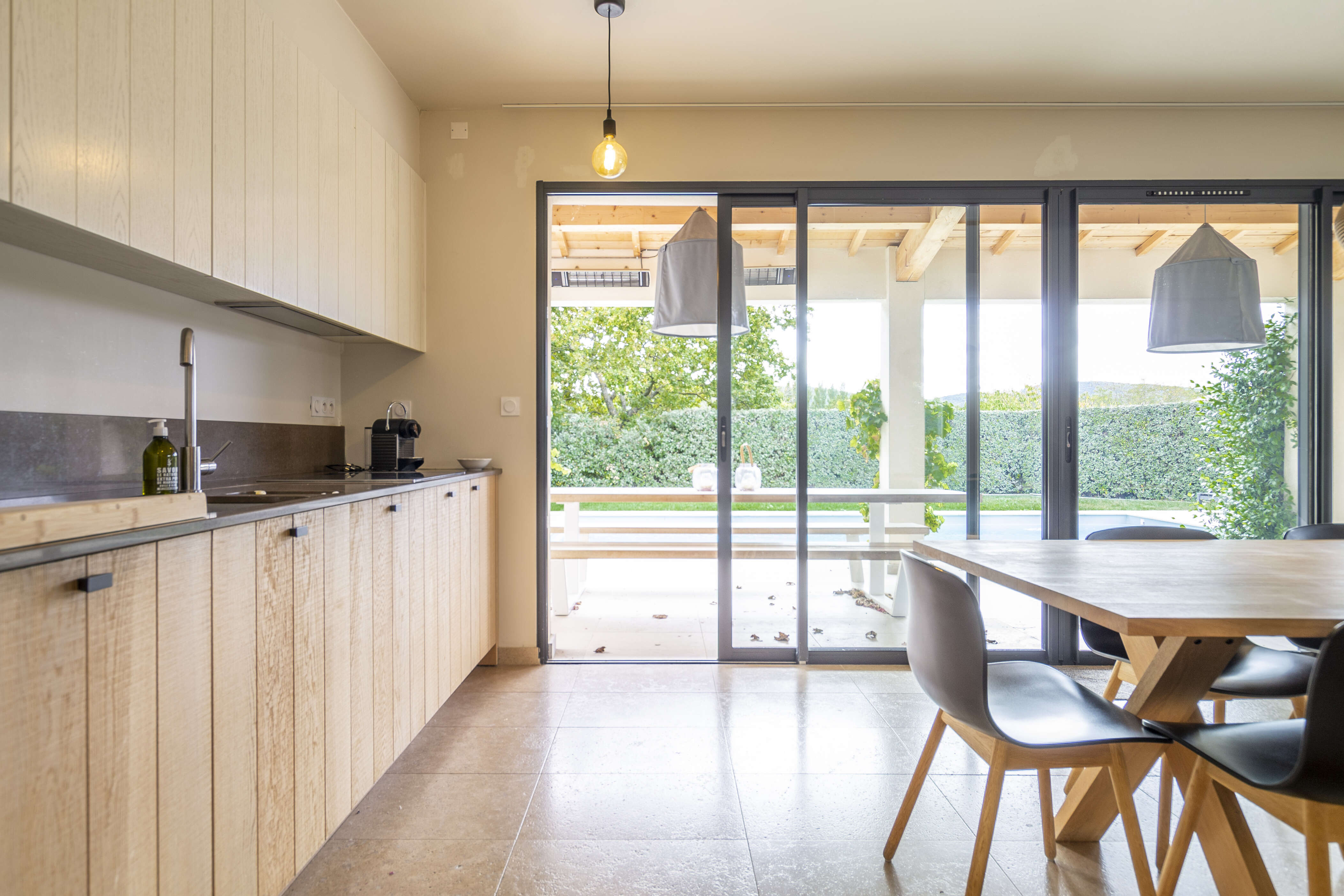 La maison de vacances avec piscine privée et jardin clos a tout pour passer d'agréables vacances à Malaucène. L'intérieur est luxueusement meublé avec un design danois. La belle pièce à vivre avec cuisine ouverte donne directement sur la terrasse couverte dotée d'une cuisine d'été et d'un barbecue. Il y a une chambre avec salle de bain au rez-de-chaussée qui a également un accès direct à la terrasse et à la piscine privée. La maison est donc accessible aux personnes à mobilité réduite. Il y a un système de refroidissement qui peut réduire la température des pièces jusqu'à 22°C lors de vagues de chaleur extrêmes.