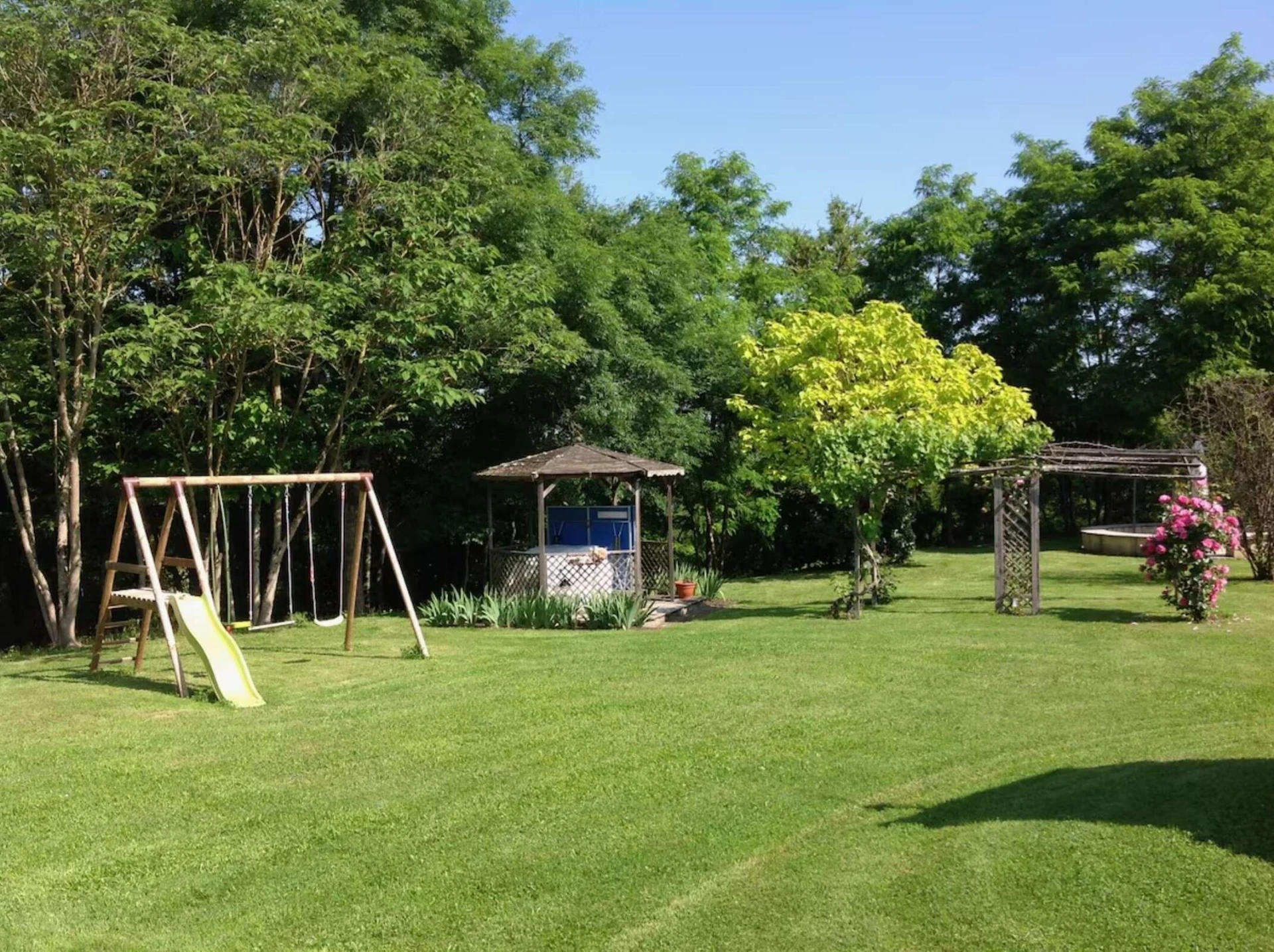 L'extérieur de la maison offre également de nombreuses options de jeux avec le terrain de pétanque, la table de ping-pong, le toboggan et la balançoire pour les enfants. Mais surtout, profitez de la belle piscine privée (10x5m, profondeur jusqu'à 2m), avec éclairage et alarme pour plus de sécurité. De nombreux espaces ombragés sont disponibles pour profiter d'une sieste en après-midi. Pour l'apéro, vous pouvez utiliser le merveilleux mobilier de jardin à votre disposition. On ne s'ennuie jamais dans ce beau gite de vacances.