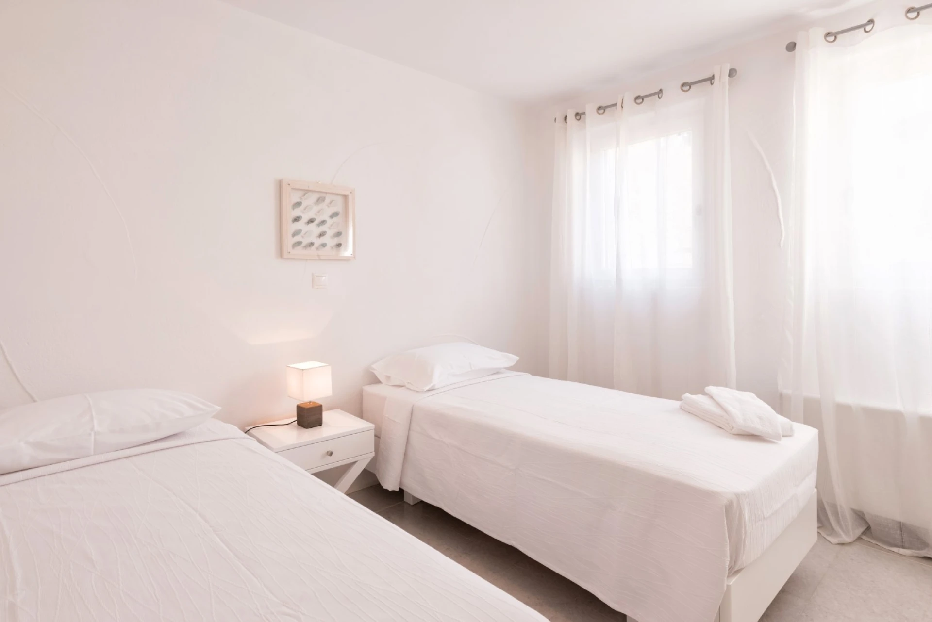 Le rez-de-chaussée comprend un salon lumineux, équipé d'un coin détente avec canapé, feu ouvert, télévision par satellite et une salle à manger. La cuisine entièrement équipée dispose d'une grande porte qui s'ouvre sur une magnifique vue sur la mer. Deux chambres à coucher sont situées à ce niveau, avec chacune une salle de douche. Un escalier intérieur en marbre mène à l'étage inférieur, où se trouvent les deux autres chambres à coucher. Elles se composent de deux lits simples qui peuvent être assemblés en un lit double, et elle se partagent une salle de bain avec une grande douche. L'intérieur est entièrement climatisé.