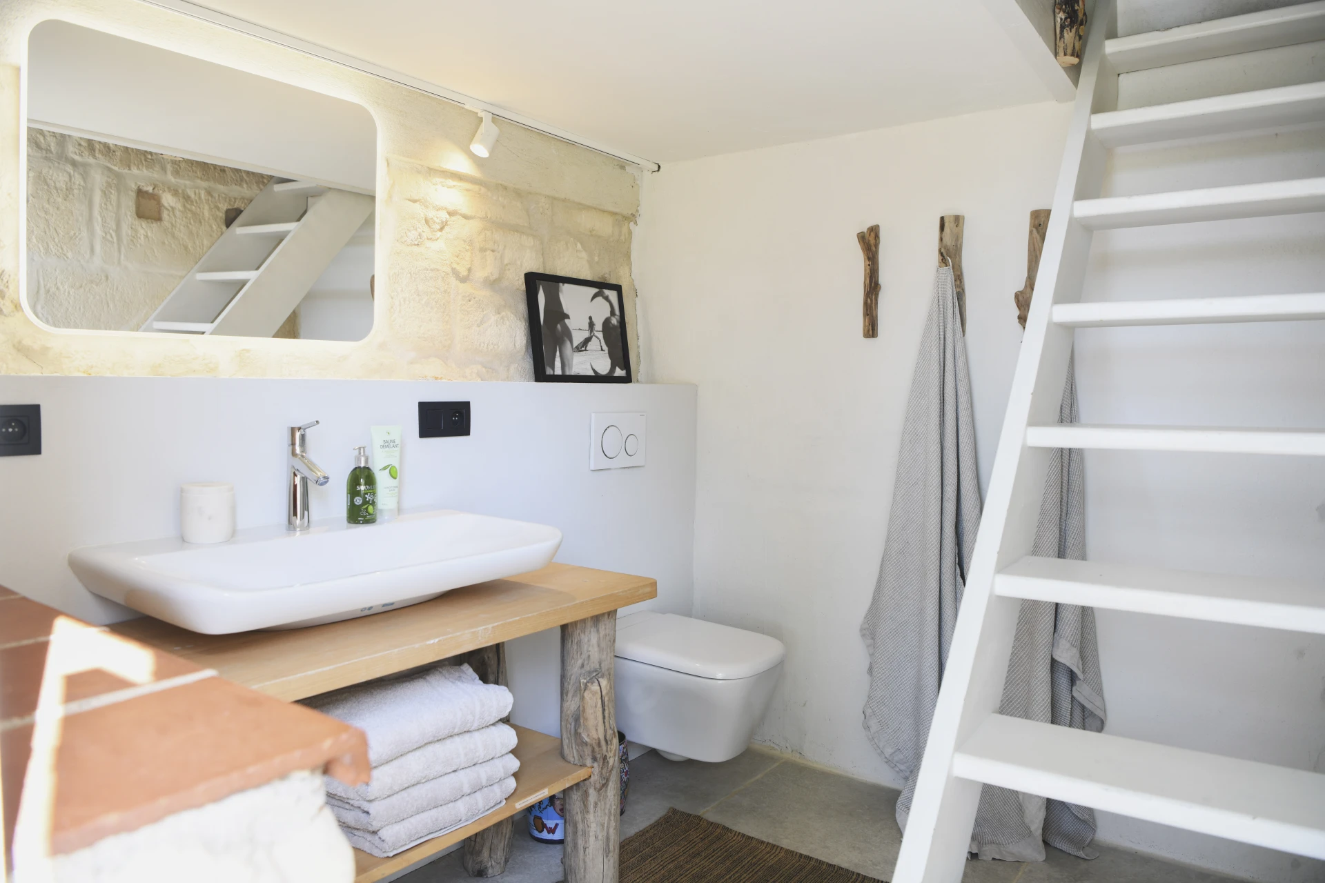 L'intérieur a été aménagé par la marque de design belge Scapa Home et dégage une élégance intemporelle, grâce à des couleurs chaudes, des matériaux naturels et un souci du détail. Des éléments authentiques tels que des poutres en bois et des murs de caractère s'associent au confort moderne. De plus, les photographies d'art du propriétaire, un photographe de renom, confèrent à la maison un caractère unique et personnel. La maison est équipée de toutes les commodités modernes telles que la climatisation, une cuisine entièrement équipée et des espaces de vie confortables, garantissant un séjour sans souci.