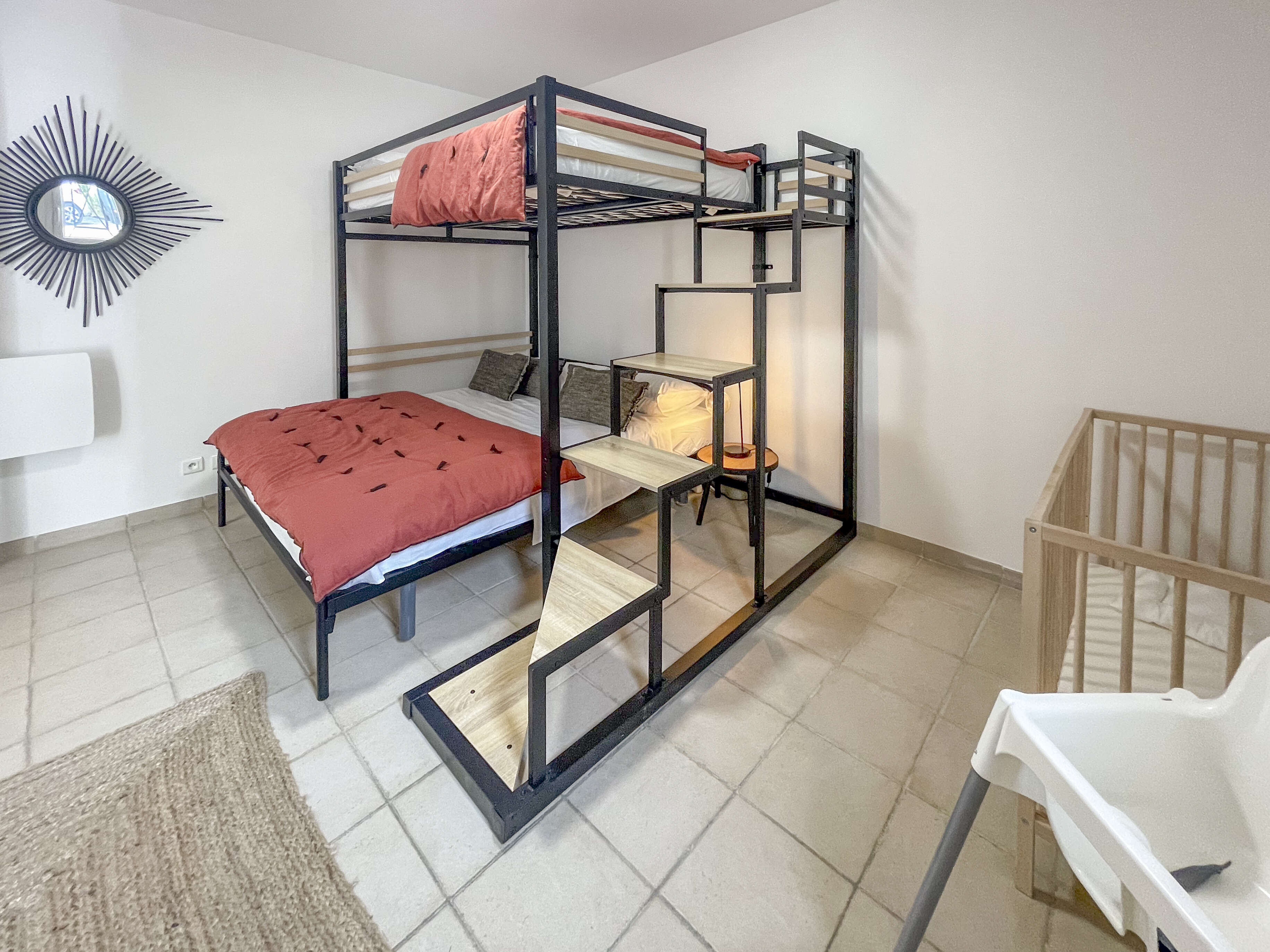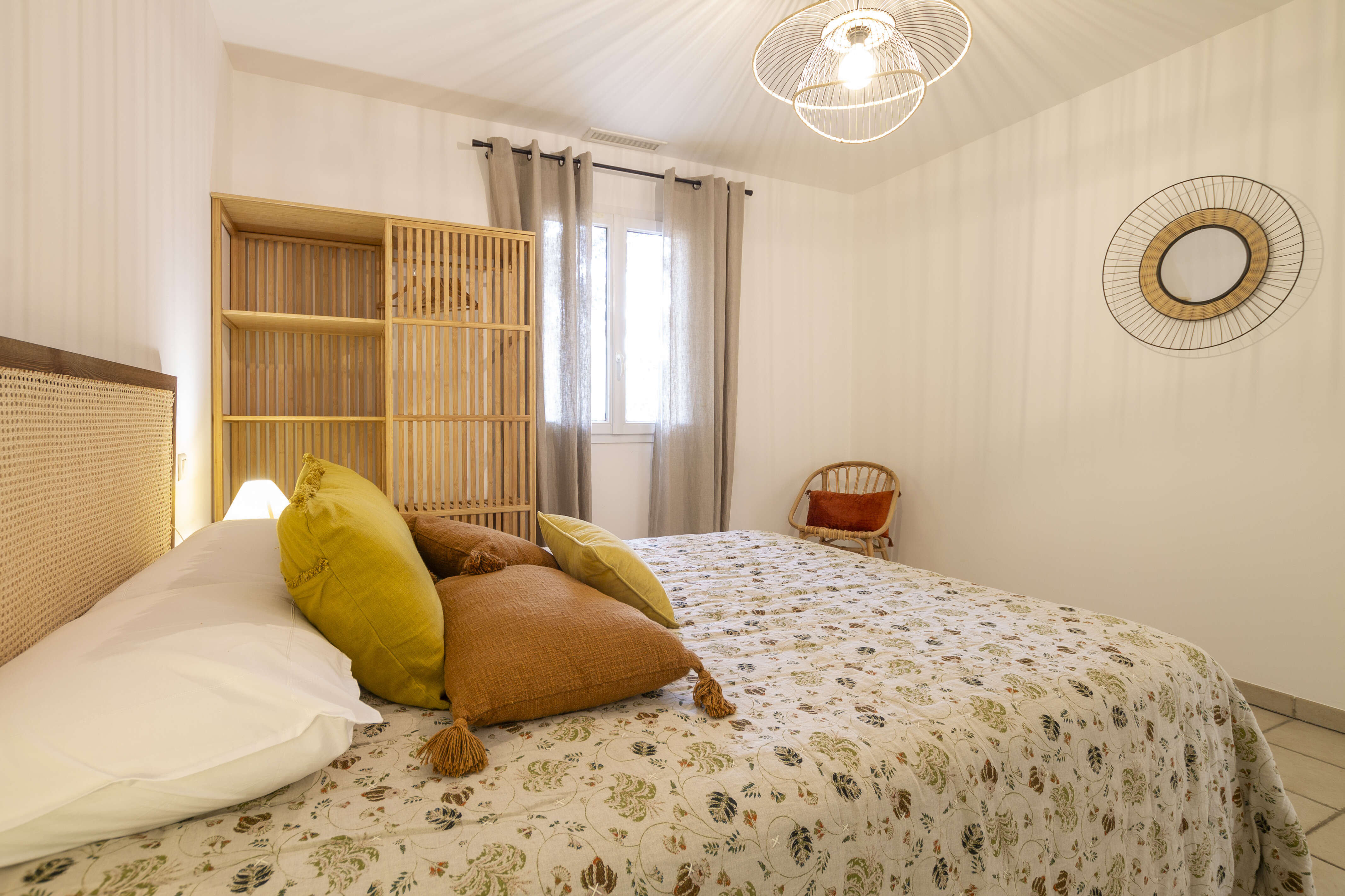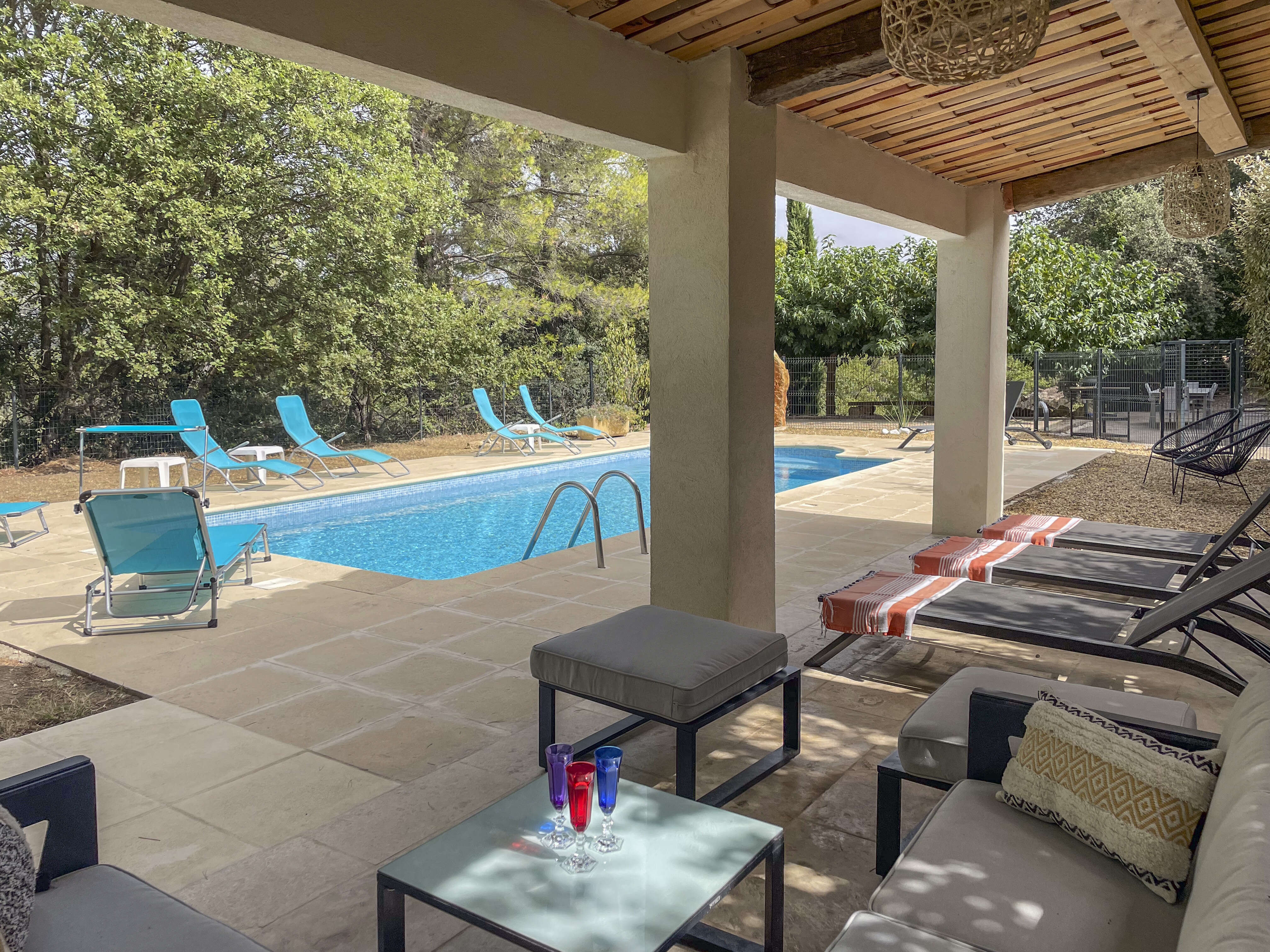 Extérieur : Grandes terrasses et ambiance autour de la piscine privée La propriété dispose d’une belle terrasse ouverte et d’une terrasse couverte, parfaites pour profiter d’un délicieux barbecue. La piscine privée, éclairée (profondeur de 0,6 m à 1,6 m – clôturée), a été entièrement rénovée. Autour de la piscine, un espace de détente de 100 m² est équipé de transats. Dans le jardin typiquement méditerranéen se trouve un terrain de pétanque. Le jardin est entièrement clôturé.