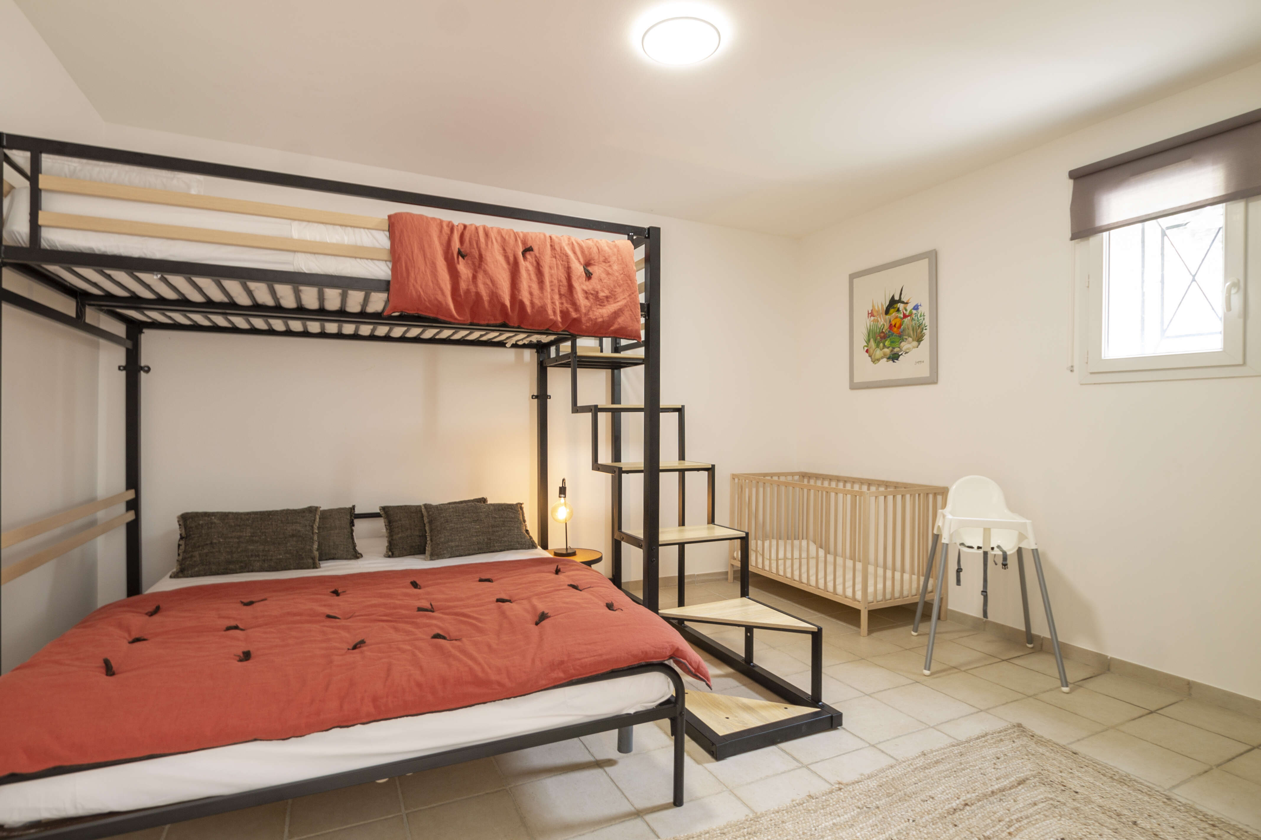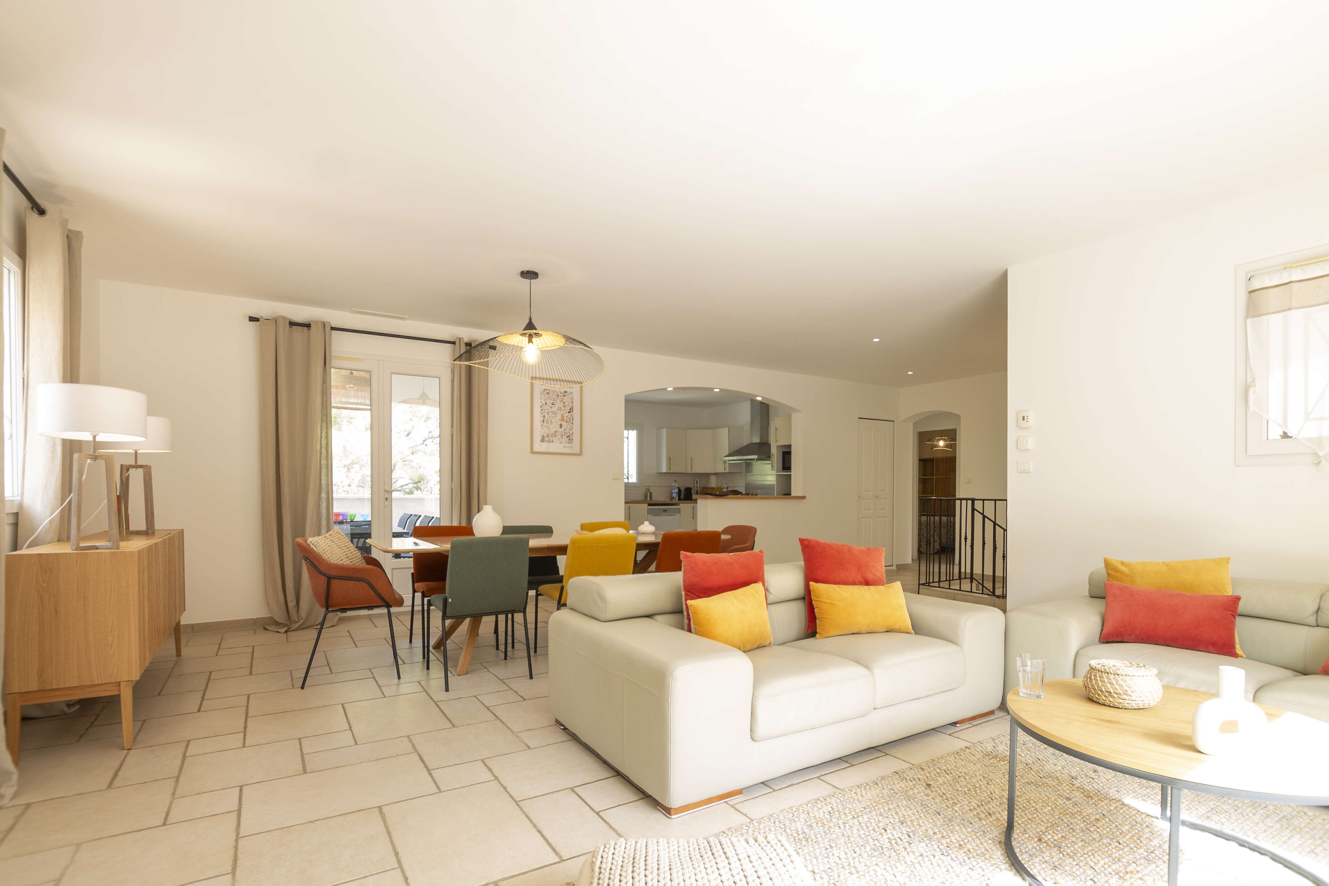 Intérieur : Chaleureux et élégant Le Peylon Bas est décoré avec goût et équipé de tout le confort moderne, y compris la climatisation. Vous vous y sentirez immédiatement chez vous ! La cuisine ouverte, entièrement équipée, donne sur la salle à manger et le salon. La maison dispose de 4 chambres, chacune avec un lit double et des armoires encastrées. Il y a une salle de bain avec baignoire et douche au rez-de-chaussée ainsi qu’à l’étage.