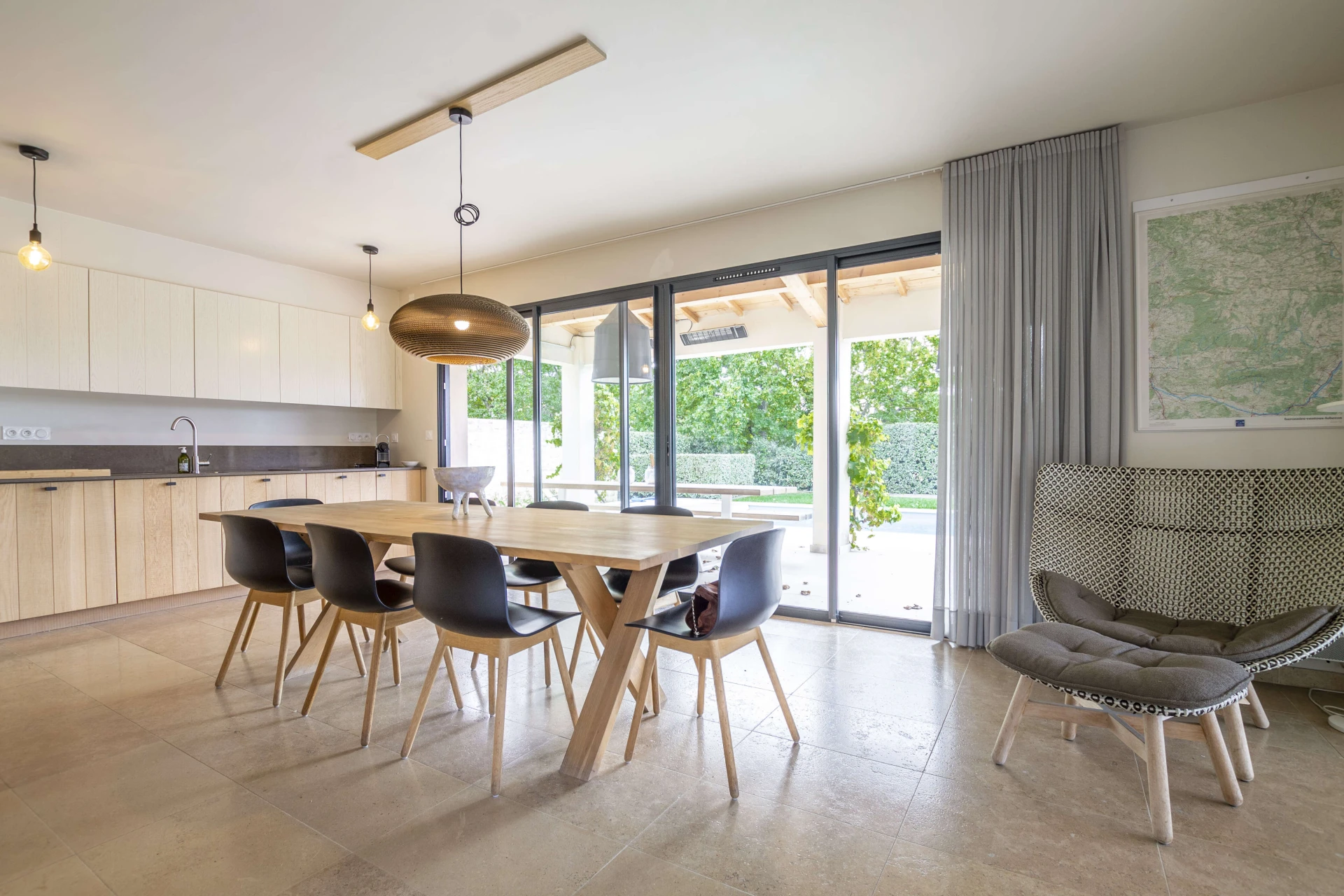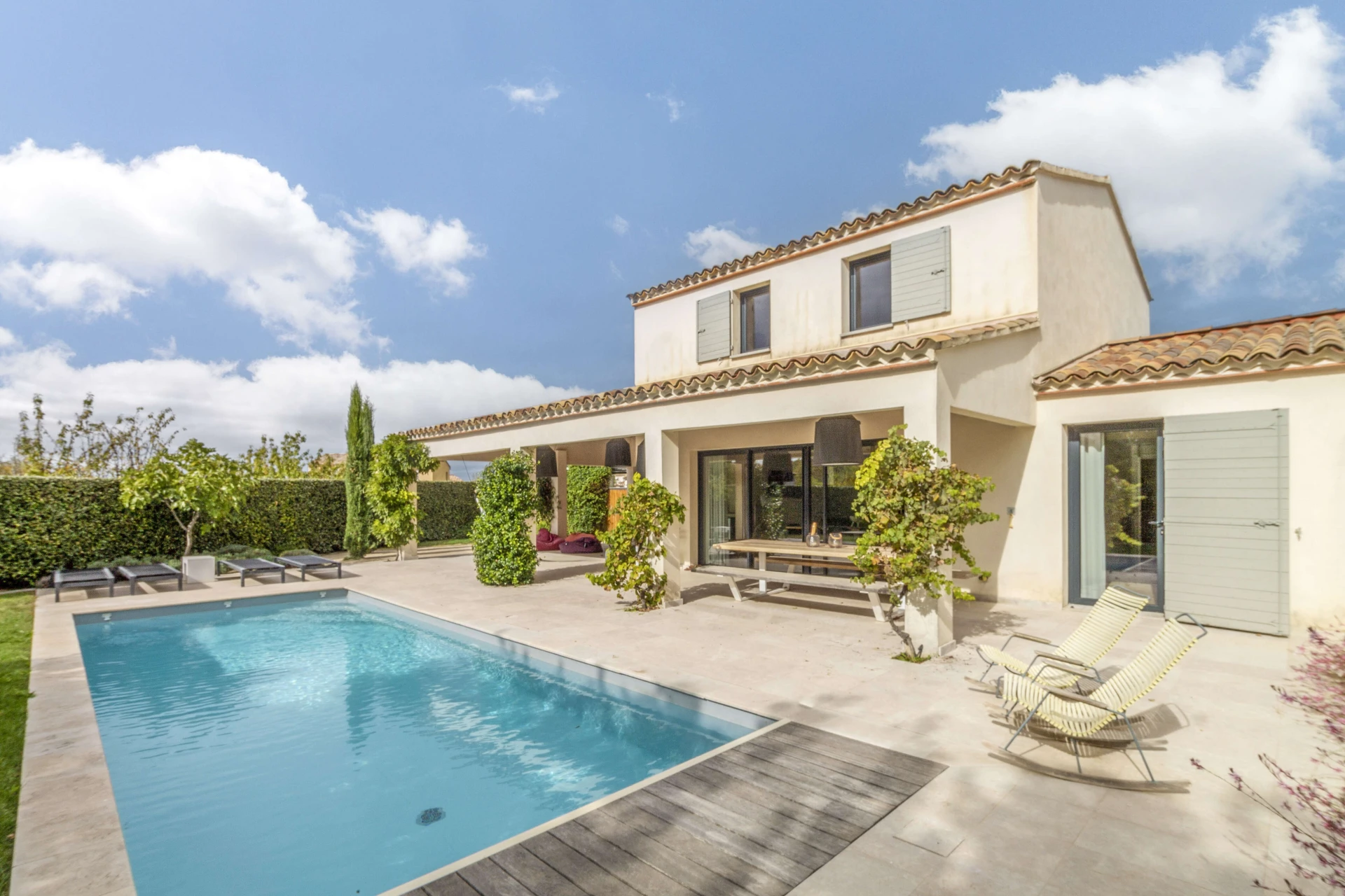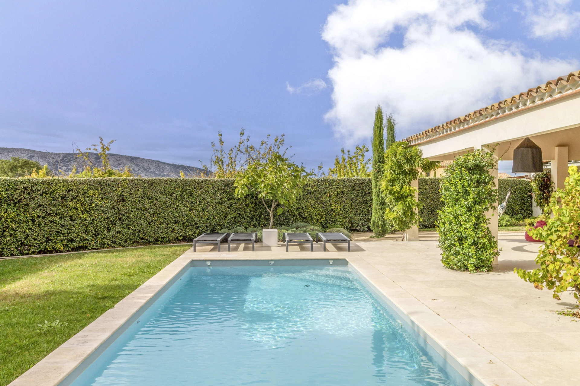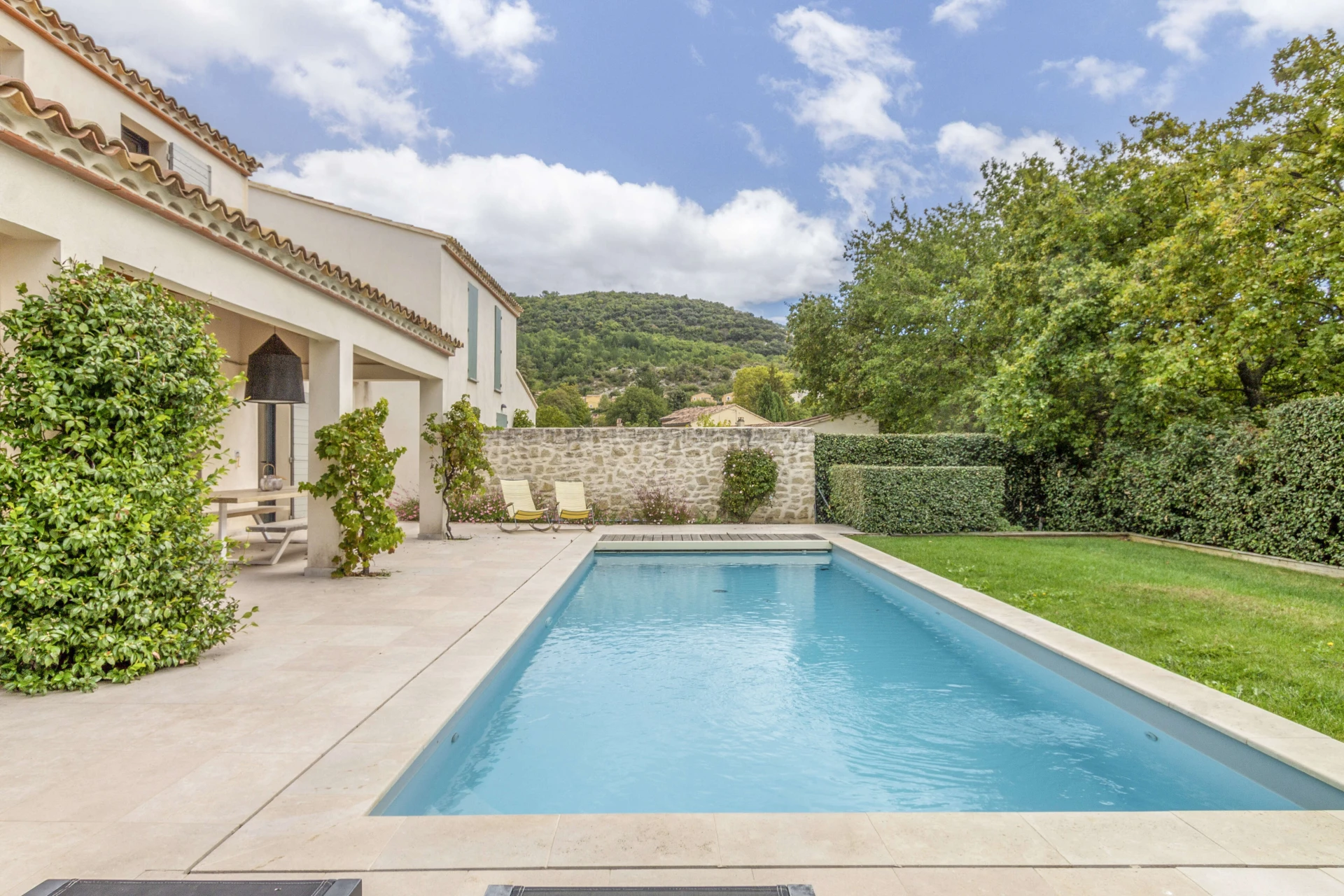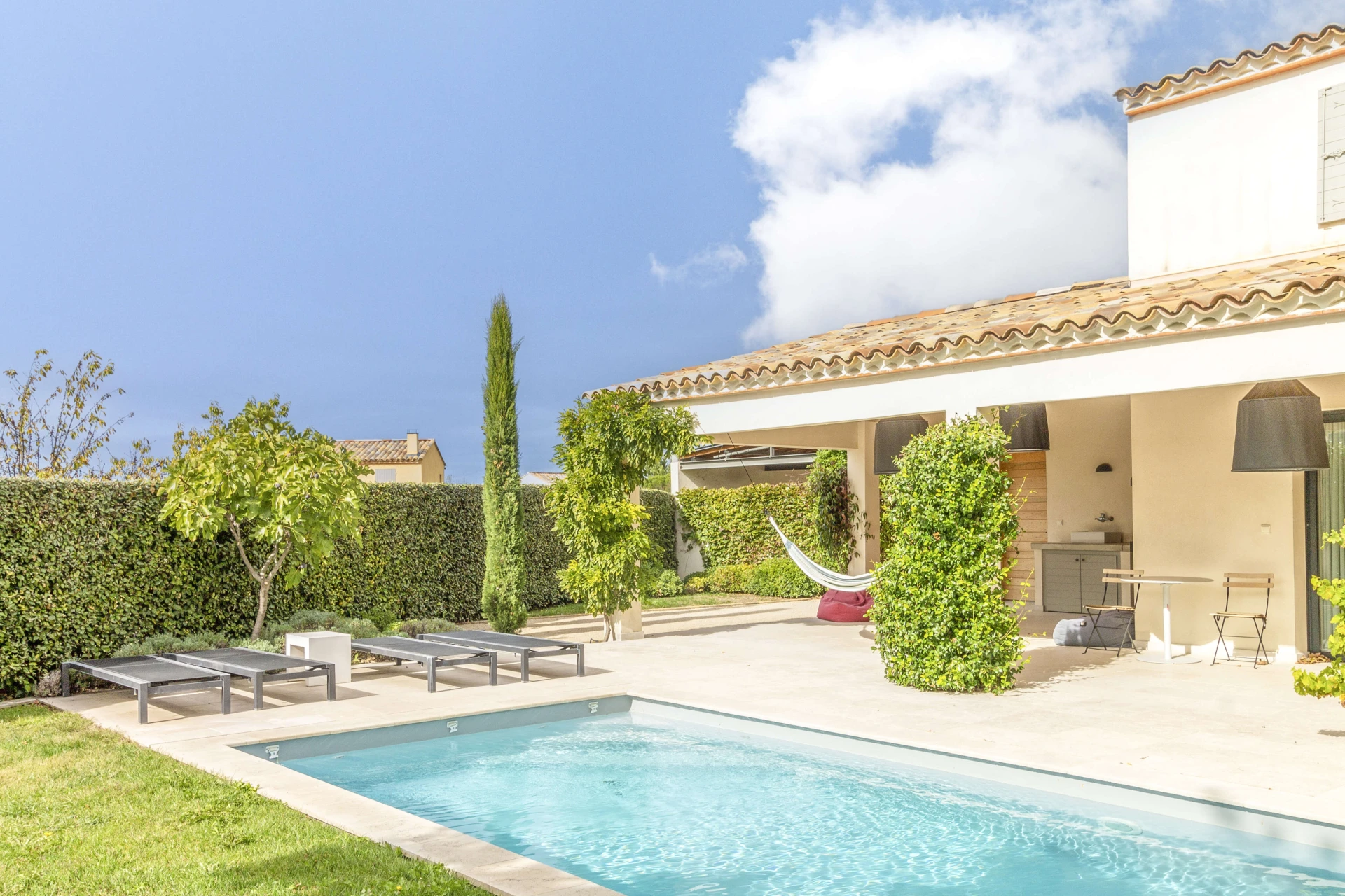 La maison de vacances avec piscine privée et jardin clos a tout pour passer d'agréables vacances à Malaucène. L'intérieur est luxueusement meublé avec un design danois. La belle pièce à vivre avec cuisine ouverte donne directement sur la terrasse couverte dotée d'une cuisine d'été et d'un barbecue. Il y a une chambre avec salle de bain au rez-de-chaussée qui a également un accès direct à la terrasse et à la piscine privée. La maison est donc accessible aux personnes à mobilité réduite. Il y a un système de refroidissement qui peut réduire la température des pièces jusqu'à 22°C lors de vagues de chaleur extrêmes.