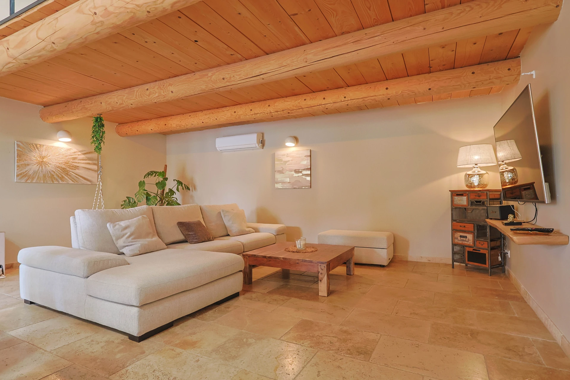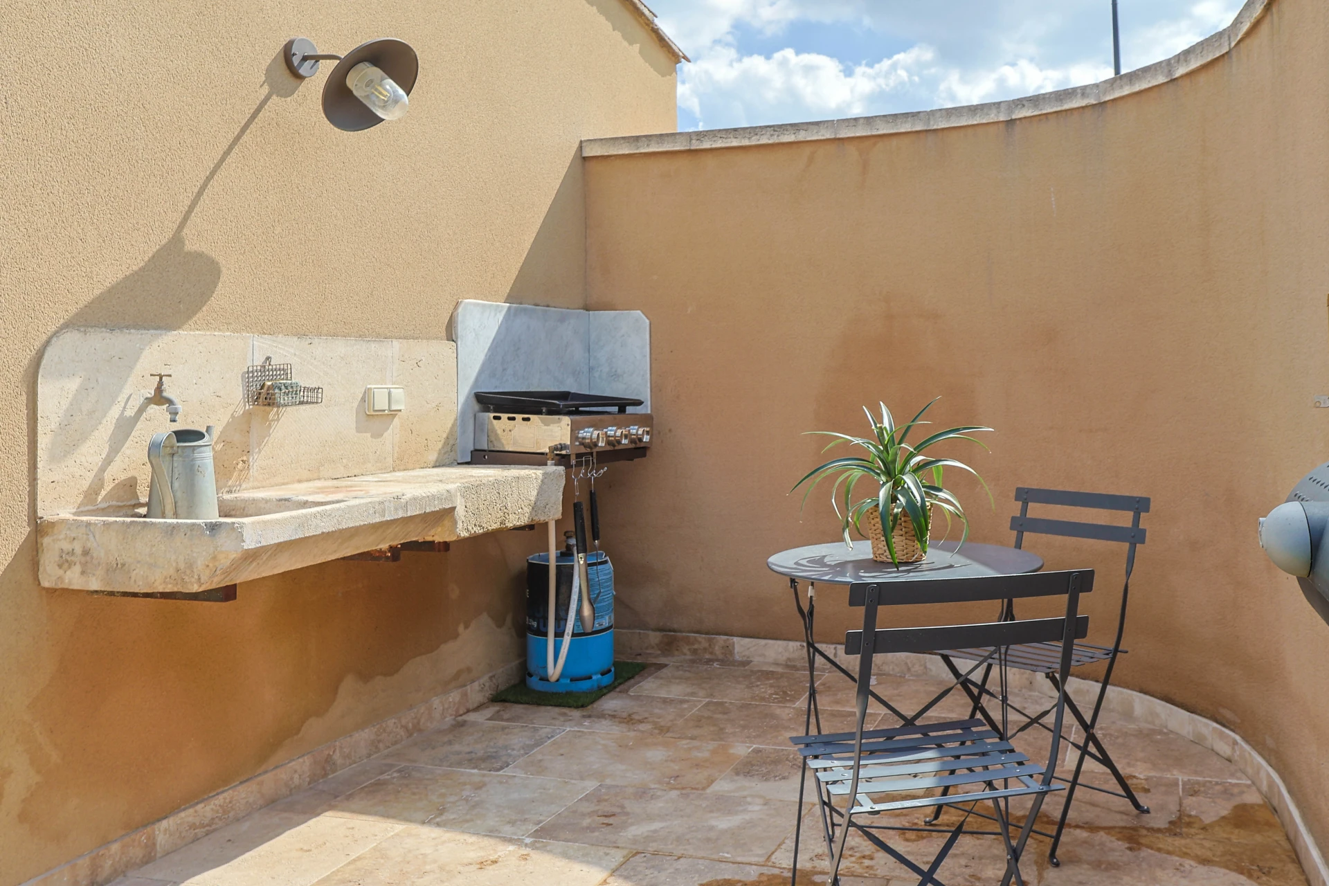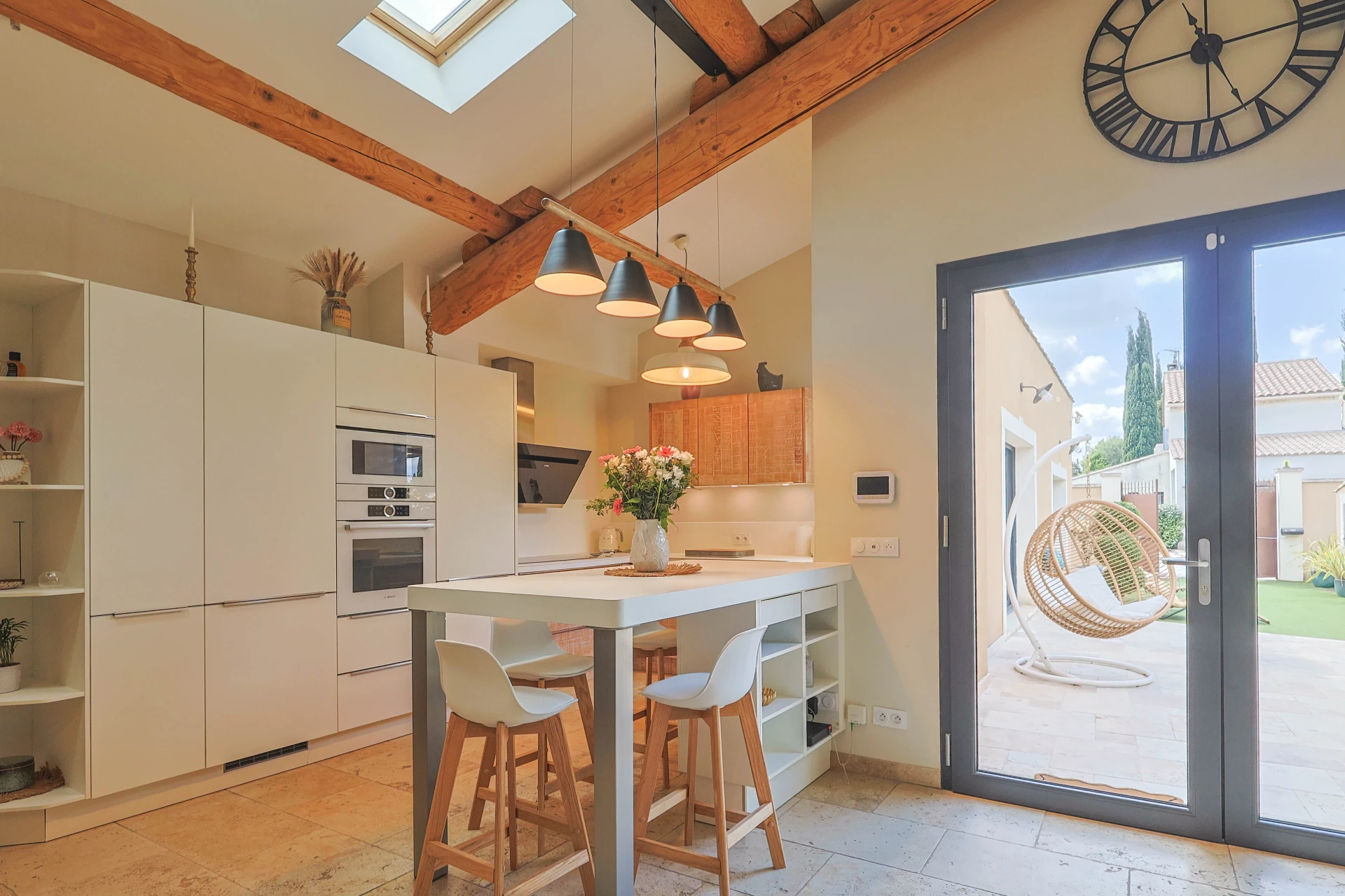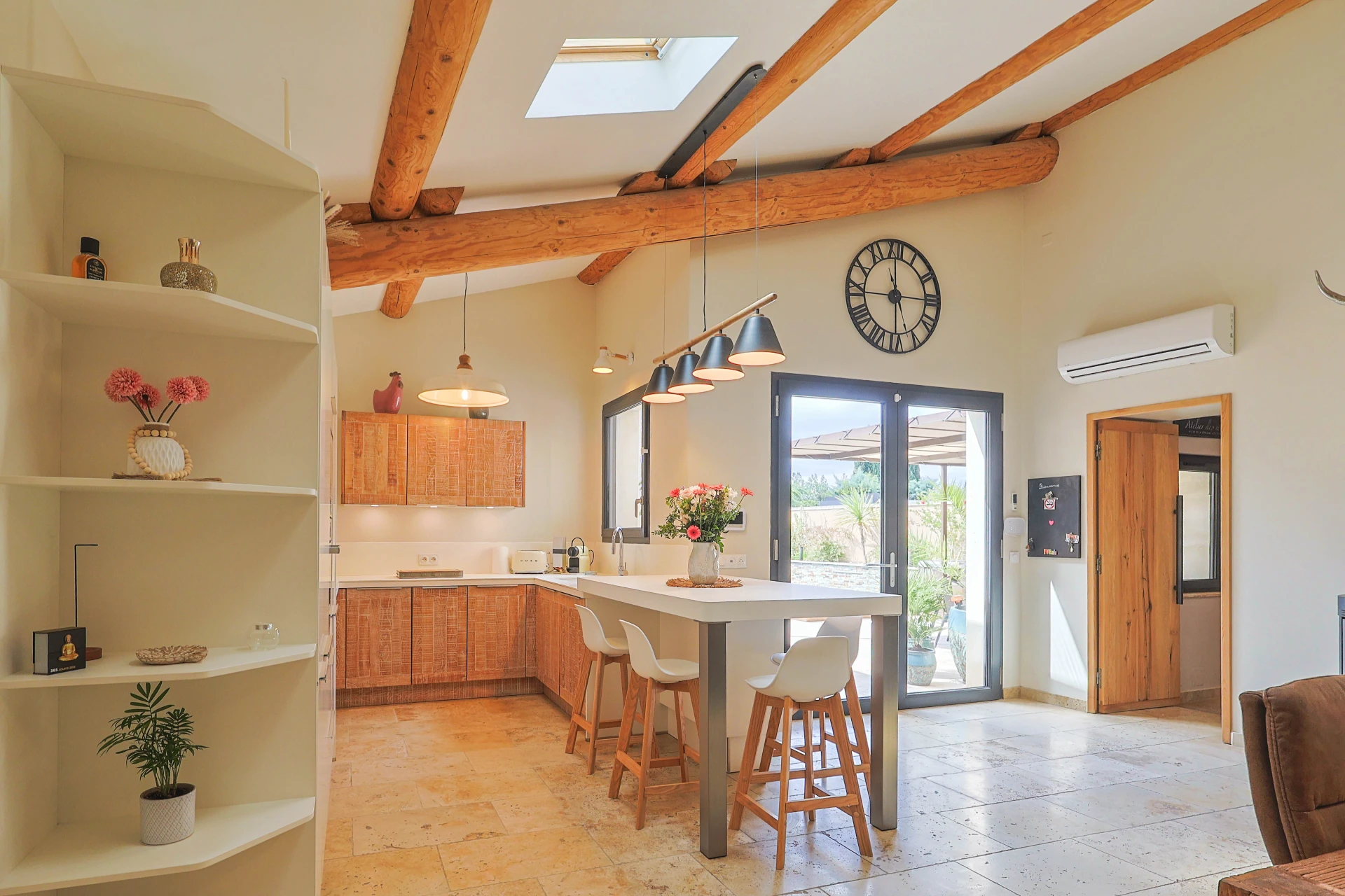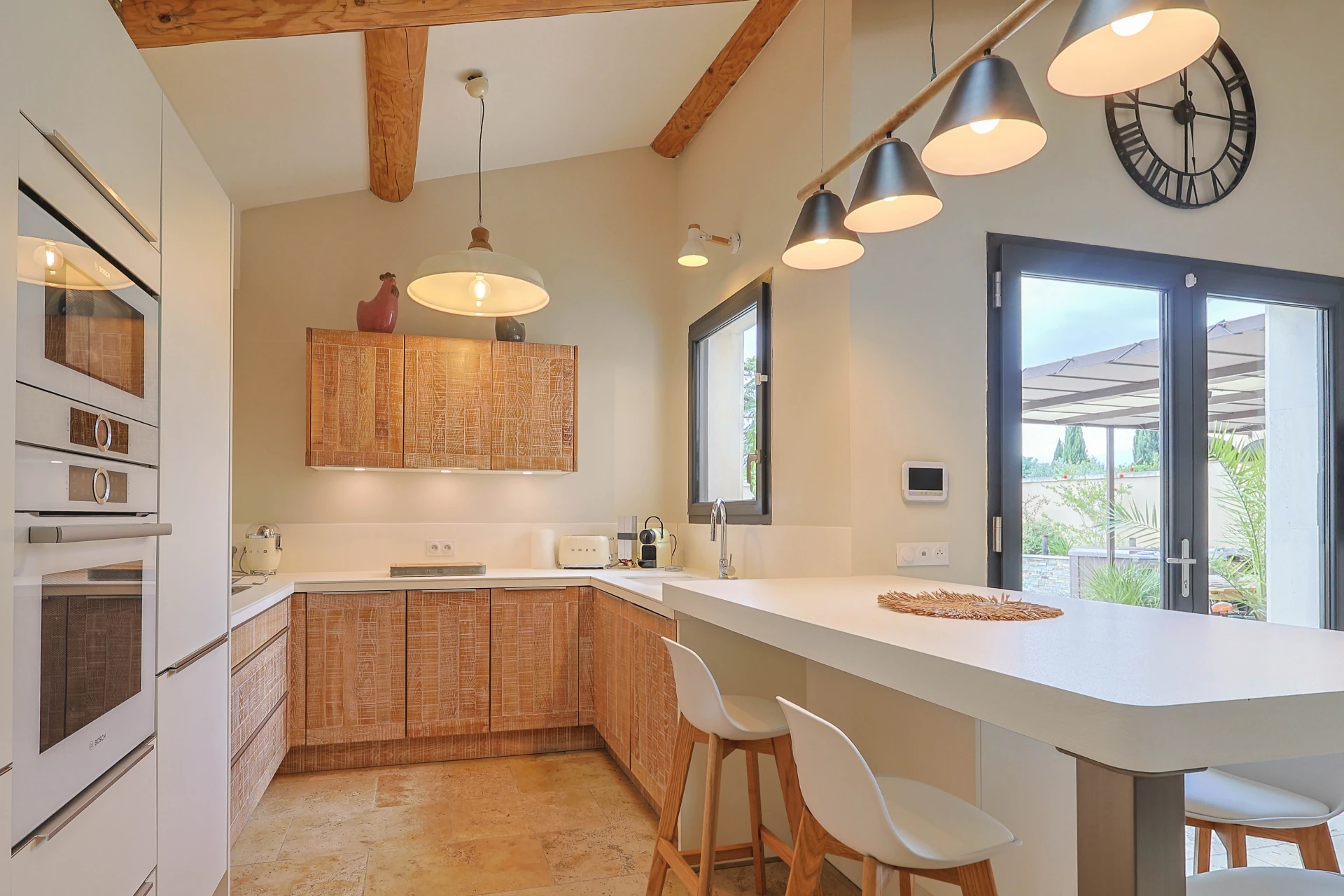 Cette maison de vacances pour 6 personnes en Provence est très bien équipée pour assurer un maximum de confort durant votre séjour. Une cuisine ouverte entièrement équipée donne directement sur une jolie table à manger ainsi que sur un salon convivial. Le séjour est orné de belles poutres en bois typiques de la région et dégage une atmosphère cocoon et chaleureuse. De plus, le séjour est entièrement climatisé. Toujours au rez-de-chaussée se trouve une première chambre double avec sa salle de bain privative. A l'étage, vous trouverez les deux autres chambres à coucher se partageant une salle de douche. La climatisation se trouve dans le couloir à l'étage, et diffuse bien dans les chambres à coucher.