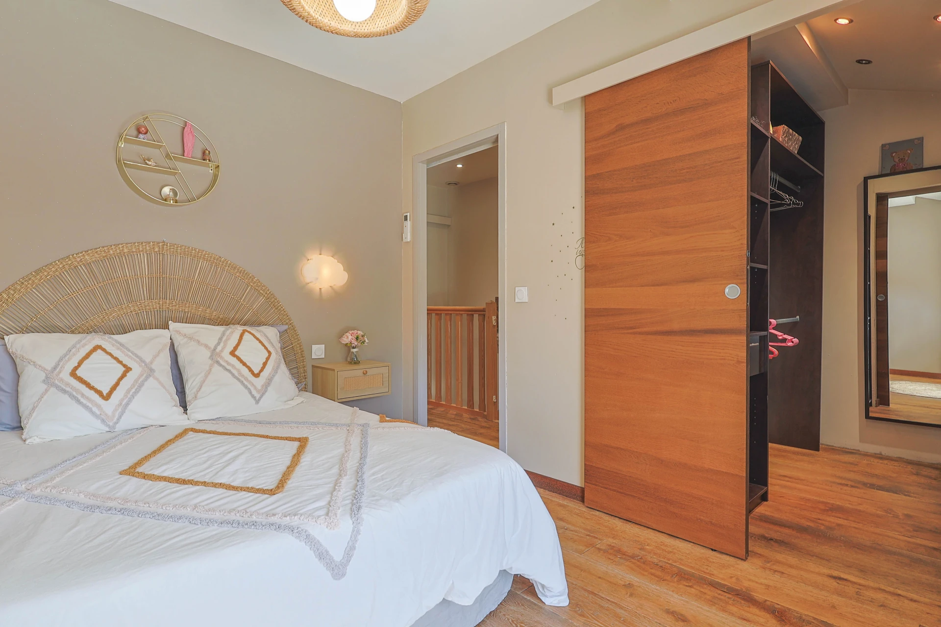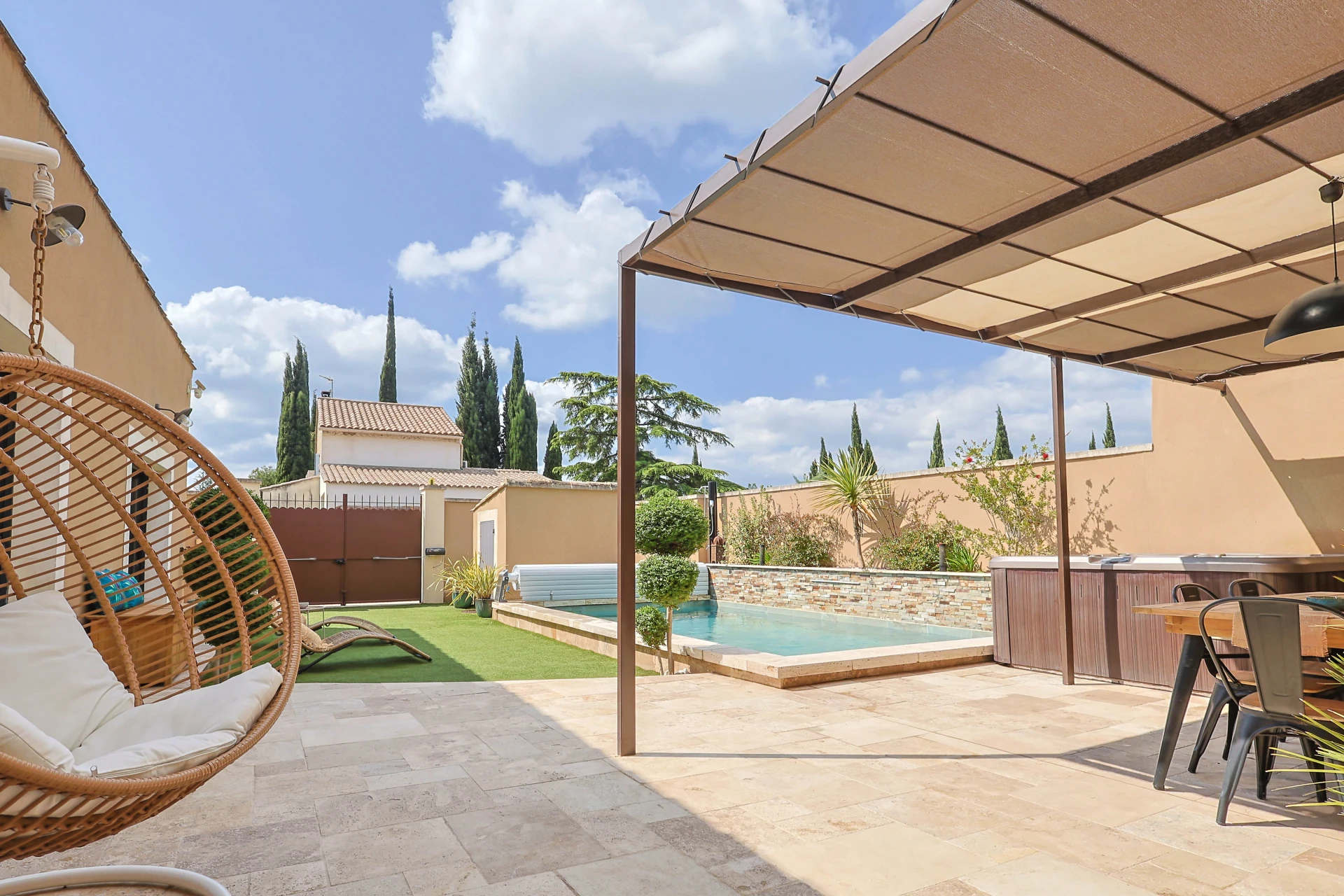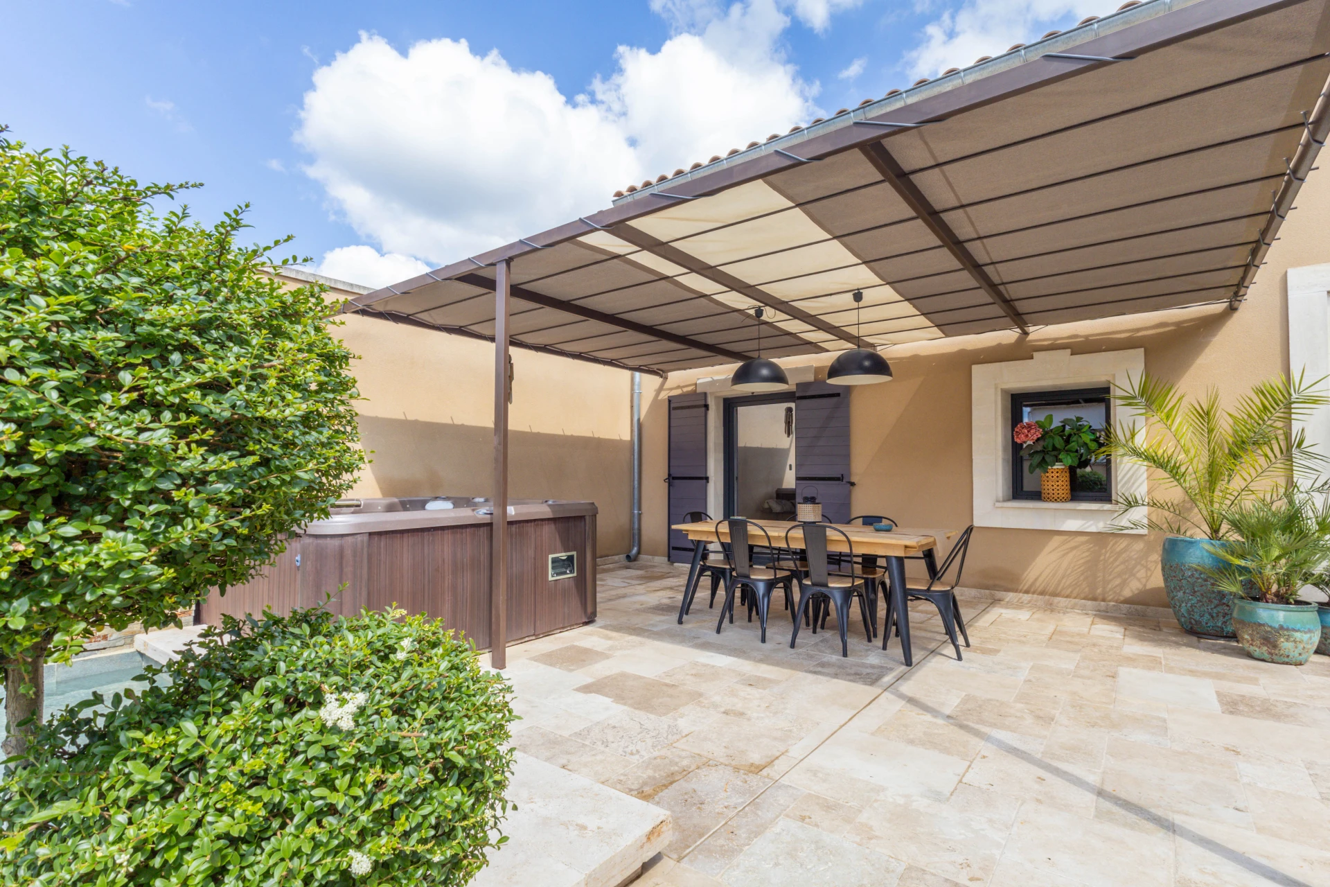 Tout comme l'intérieur, l'espace extérieur a été soigneusement agencé pour optimiser votre confort en utilisant l'espace disponible. Découvrez une magnifique piscine privée chauffée du 20/04 au 30/09 (6.5x3.5m, profondeur : 1,30m) avec éclairage, alarme et volet électrique. Il y a également une plage immergée au début de la piscine, idéal pour les petits enfants ! Autour de la piscine, profitez du mobilier de jardin : transats, parasol et salon d'extérieur, mais surtout du jacuzzi sous la terrasse couverte. Pour vos grillades de l'été, une plancha est à votre disposition. A l'avant de la maison, vous pourrez facilement garer vos véhicules et même profiter d'une partie de pétanque en famille ou entre amis.