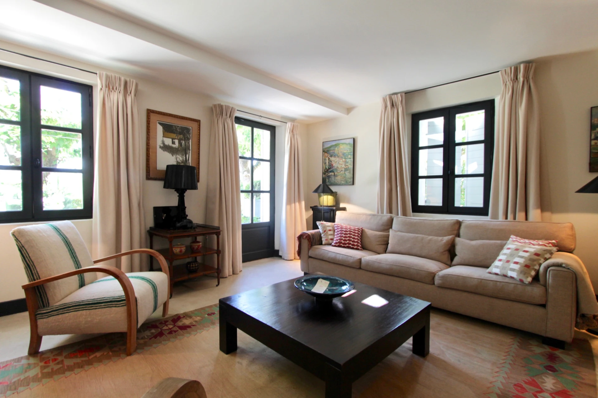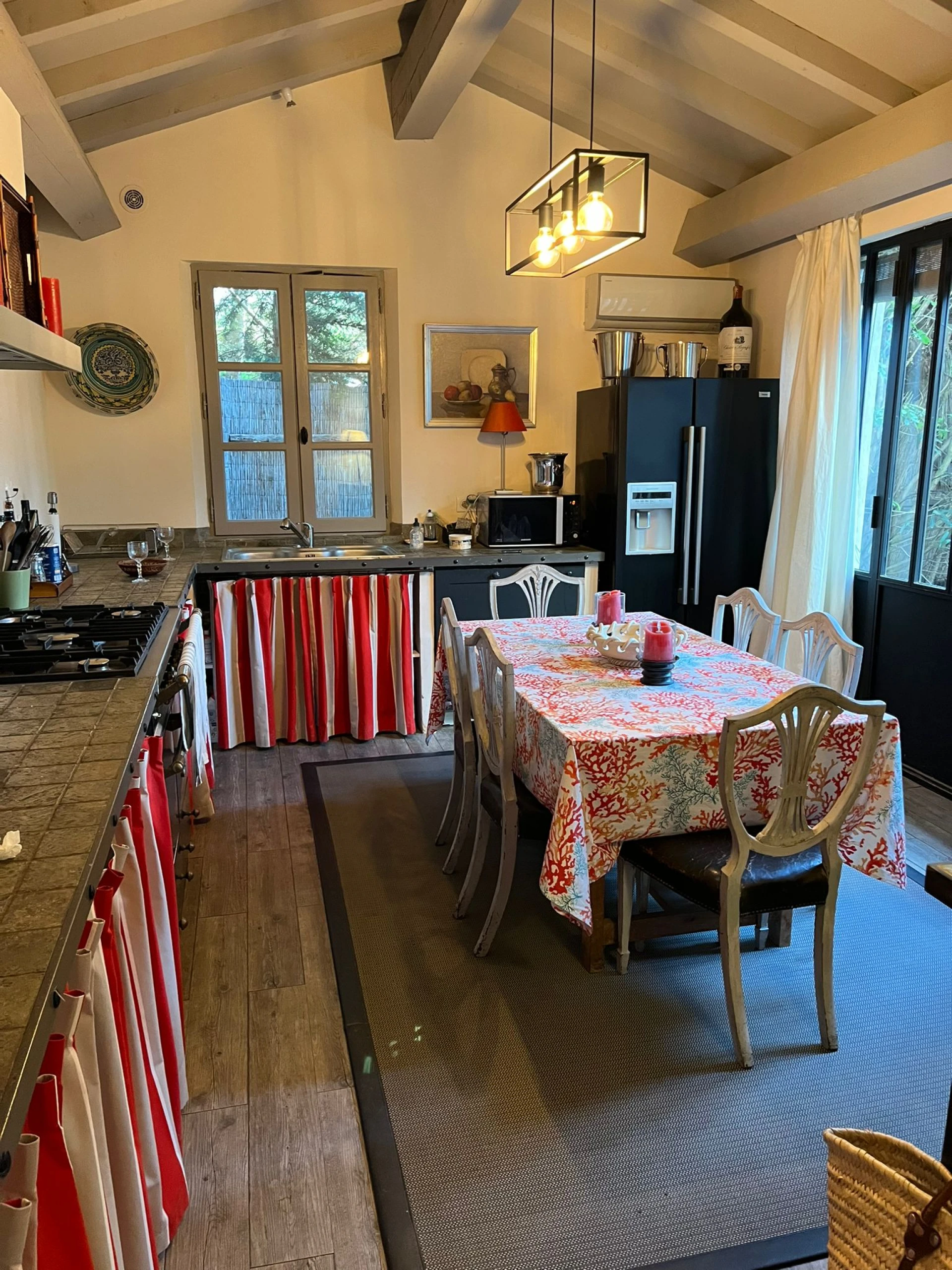 Le Mas a été entièrement rénové par un architecte d'intérieur français de renom. Tous les matériaux de construction et les appareils ménagers sont de la plus haute qualité. Un élégant mobilier contemporain se confond avec des pièces antiques sélectionnées avec soin; le tout accentué par des tapis artisanaux colorés et des œuvres d'art originales. Et avec tout le bien-être et tous les conforts possibles - y compris l'air conditionné pour les mois les plus chauds et l'accès Internet haute vitesse - cette maison vous invite vraiment à vous y installer et à profiter de la vie dans le sud de la France.