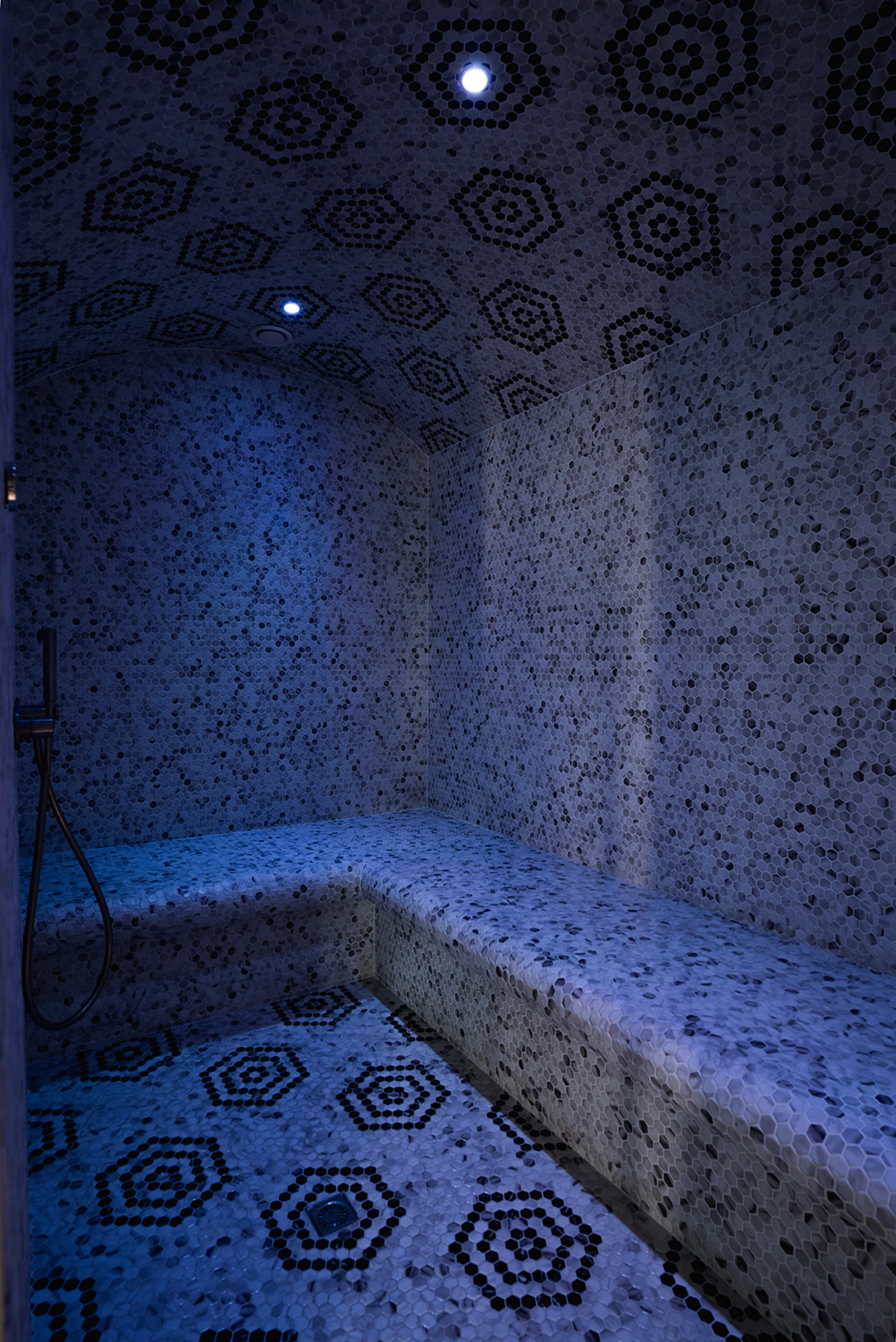 Espace bien-être avec hammam, jacuzzi et équipements sportifs