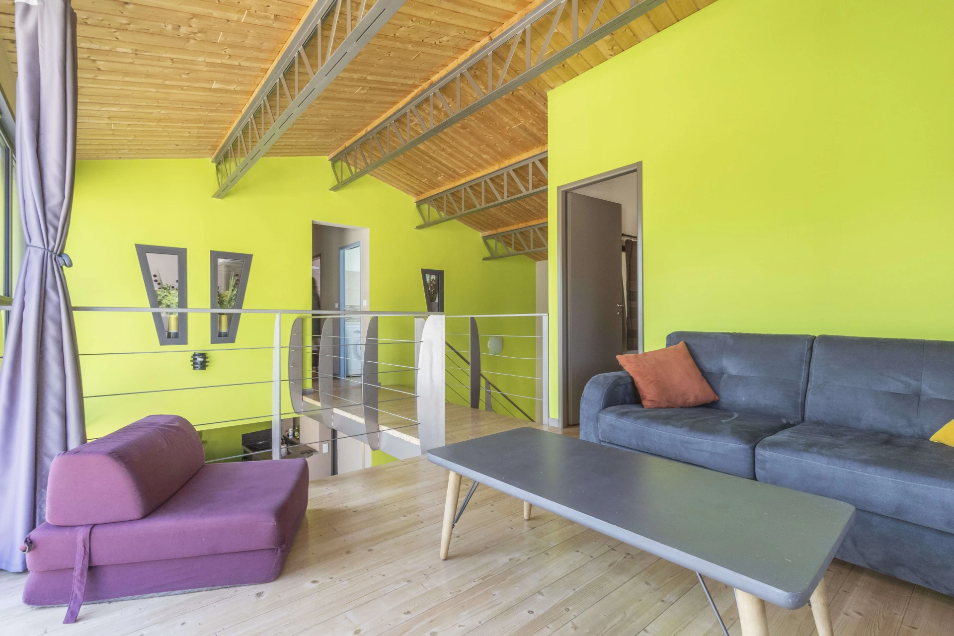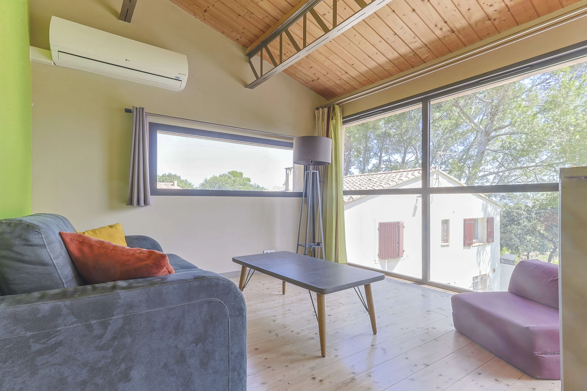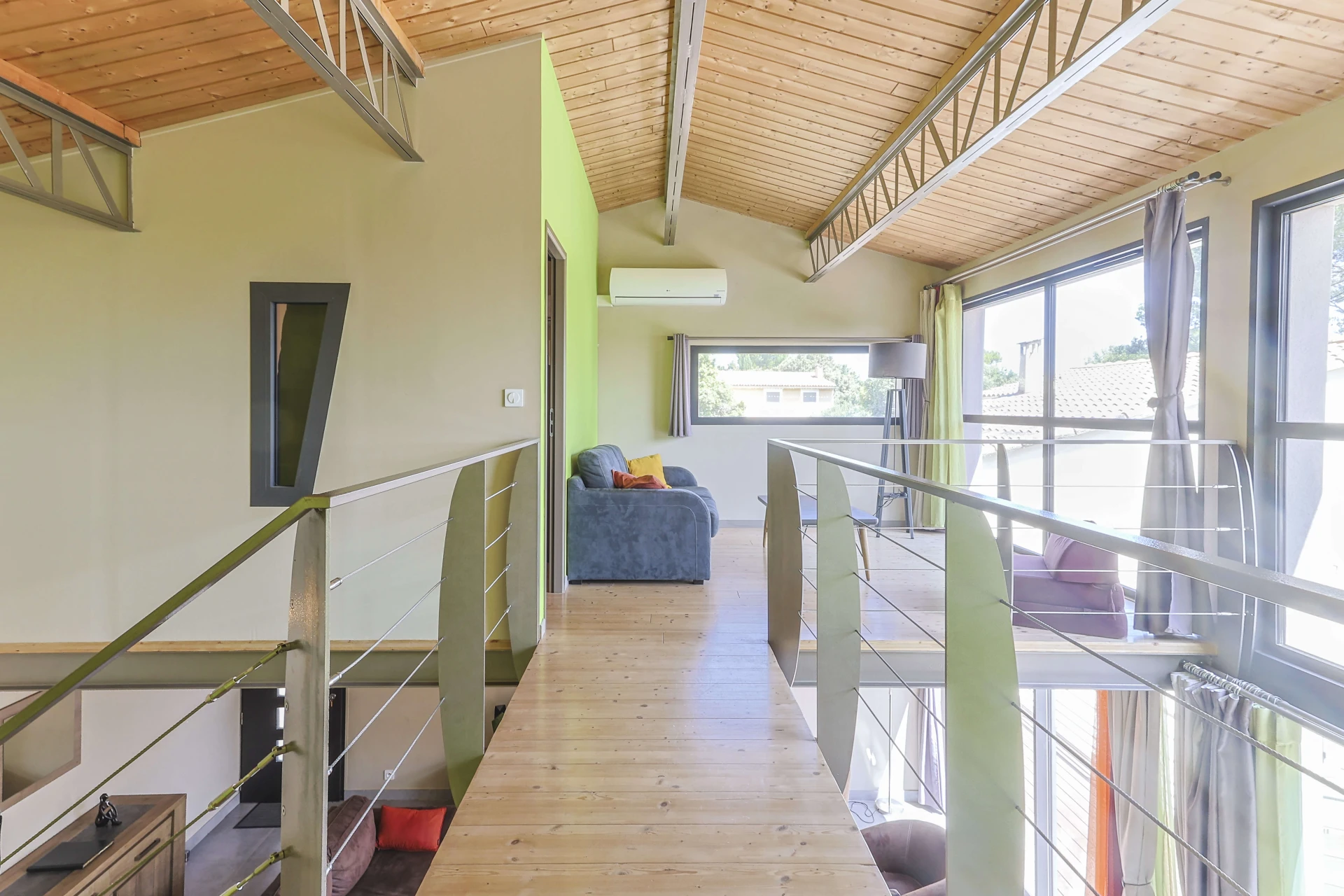 Moderne, alliant la chaleur du bois et le design du verre et des structures métalliques, elle dispose d’une superficie de 130 m2 éclairée par 50 m2 de baies vitrées. Elle bénéficie d’un superbe environnement en lisière de bois avec vue sur le Mont Ventoux, les dentelles de Montmirail ainsi que le village et le vignoble de Châteauneuf du Pape.