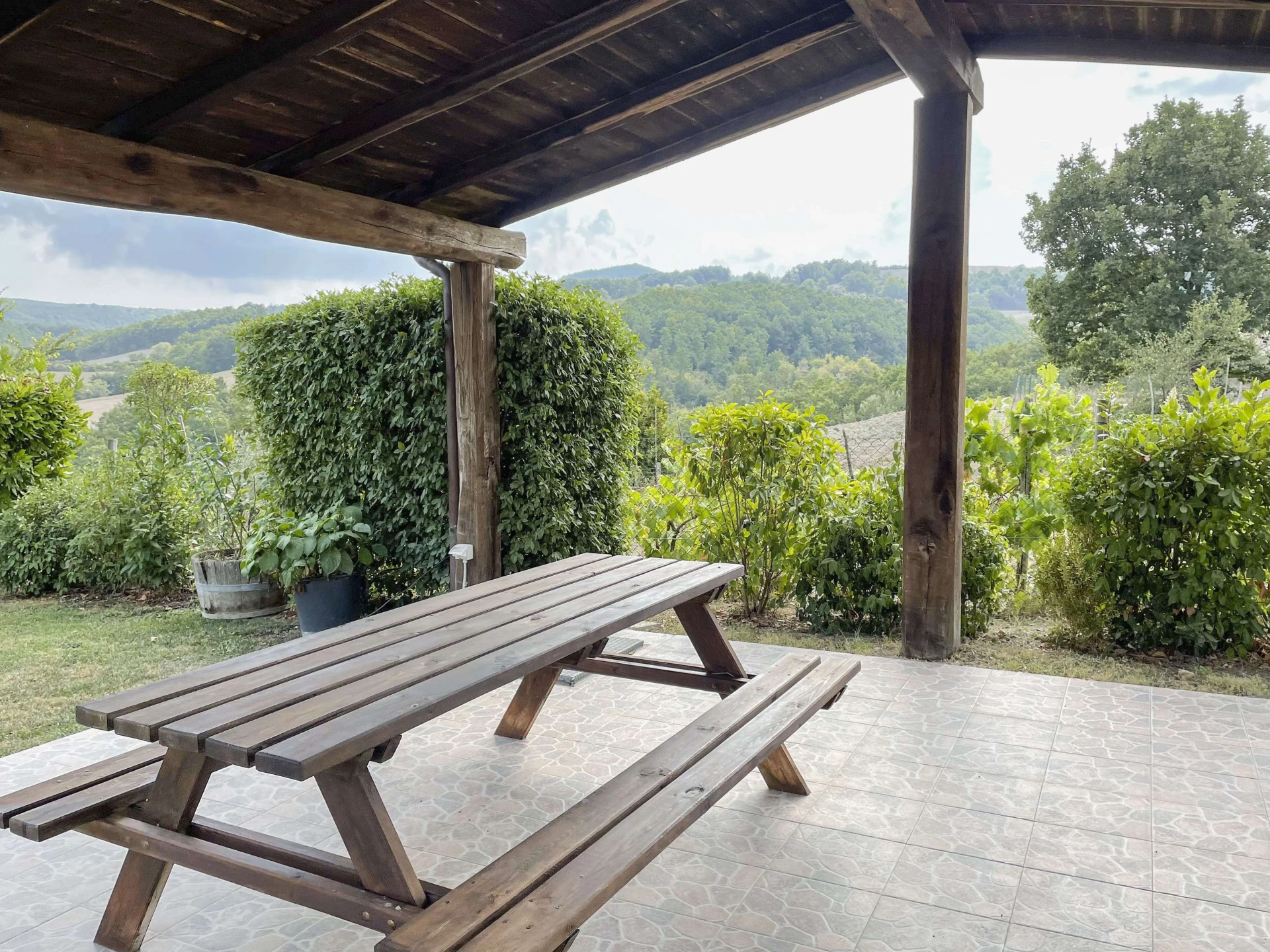 Il s'agit d'une maison de vacances avec piscine privée et jardin clôturé. La terrasse couverte est l'endroit idéal pour profiter ensemble d'un délicieux barbecue. Les vues panoramiques autour de la piscine (10x5m - 1,20 à 1,50 m de profondeur) sont tout simplement fantastiques ! En outre, un potager biologique est à la disposition des clients. En été, sous le bel arbre centenaire du jardin, une longue table permet de dîner en famille ou entre amis dans un cadre idyllique. C'est un lieu sublime pour des moments inoubliables entre amis et en famille. Ici, vous pouvez également profiter de l'ombre naturelle merveilleuse sous cet arbre centenaire. Au niveau de la piscine, il y a également une belle terrasse couverte, également très agréable pendant les chaleurs de l'été.