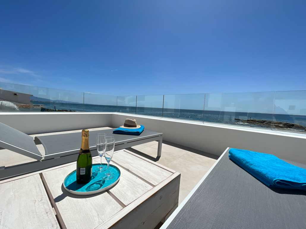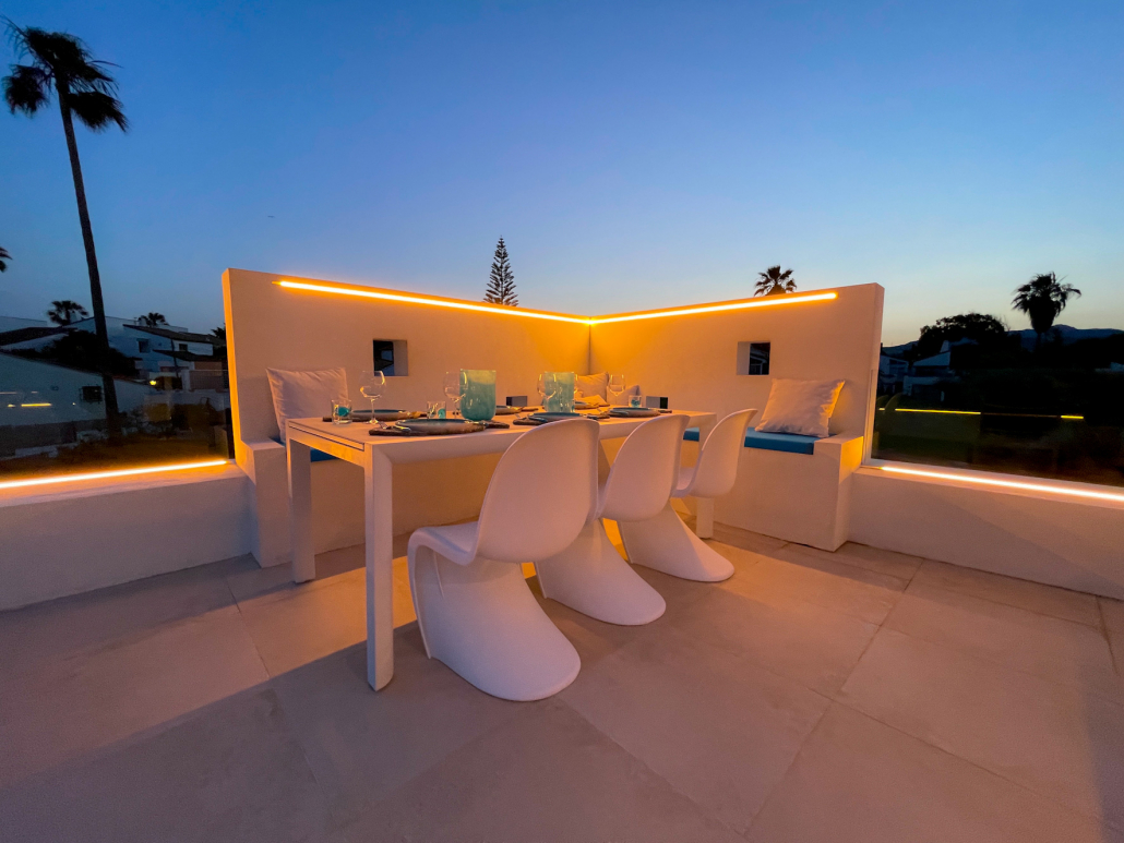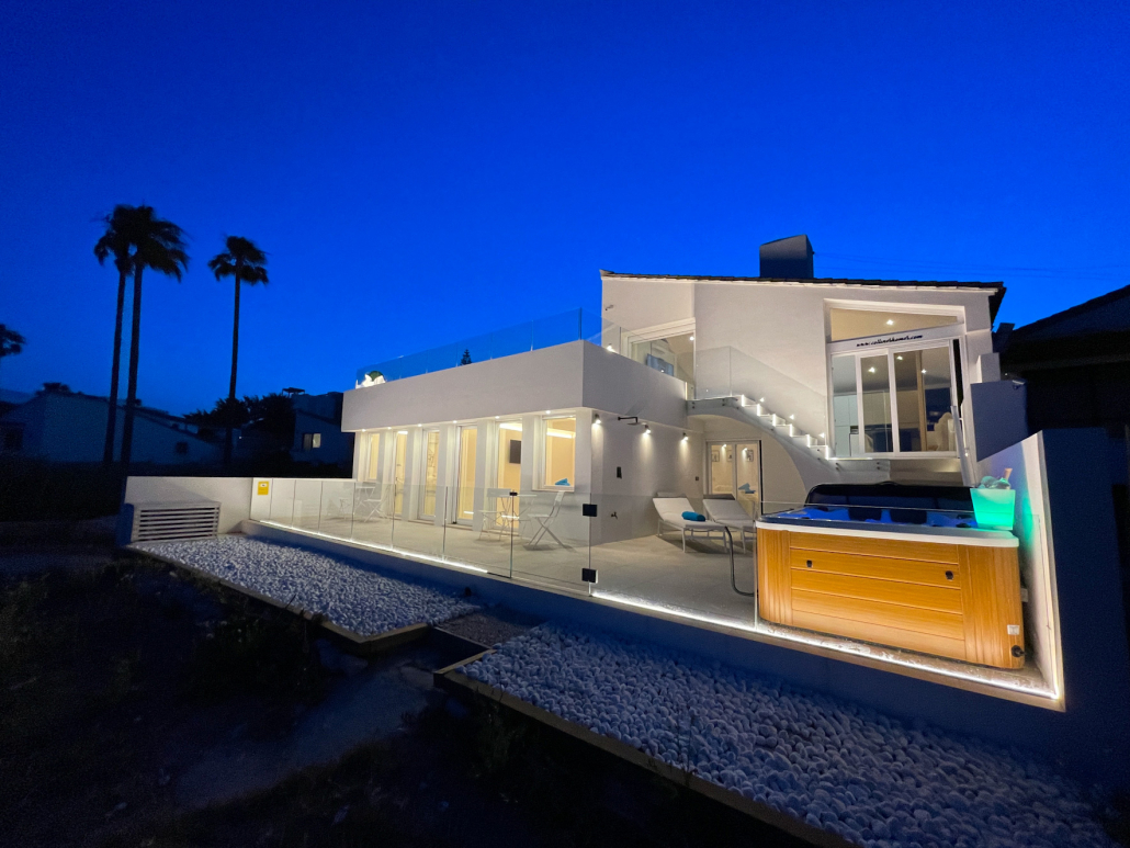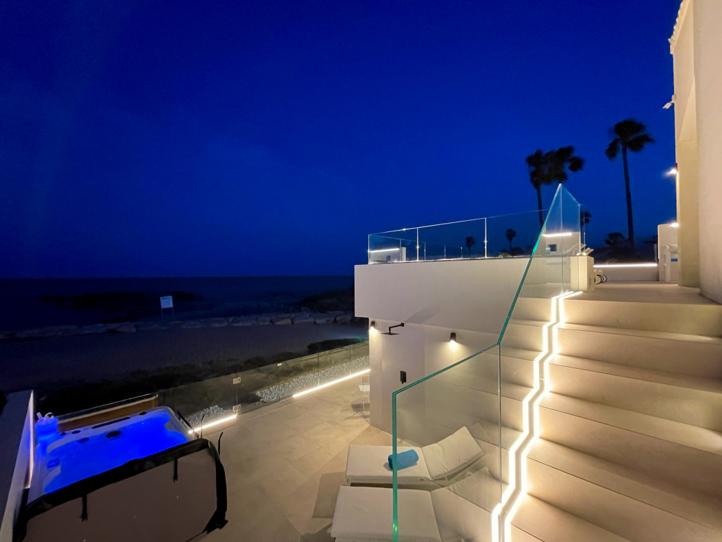 Al Mar is een luxe vakantiewoning voor 6 personen, rechtstreeks gelegen aan het strand van Estepona (Málaga, Costa del Sol, Spanje). Dit vakantiehuis aan de Costa del Sol op het strand is zeer uitzonderlijk dankzij de unieke ligging. Net aan de zee gelegen in een afgesloten residentiële wijk met verschillende privé zwembaden op slechts enkele kilometers van het centrum van Estepona.