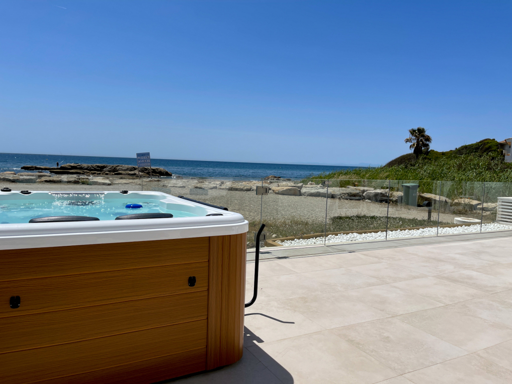 Op de vele terrassen geniet je van een lekker etentje dankzij de grote teppanyaki in een prachtige setting. S'avonds kunnen de terrassen verlicht worden en geeft een feeërieke sfeer. Er is vanuit de vakantiewoning een directe toegang tot het strand en gemeenschappelijk zwembad. Op nog geen 10m zit je met de voetjes in de zalige verfrissende zee. Er zijn in totaal 6 zwembaden en 1 tennisplein op de urbanisatie het dichtste gedeeld zwembad ligt op een paar stappen van de woning. Indien men liever wenst op te warmen, bijvoorbeeld tijdens de koudere maanden, kan men daarnaast nog gezellig genieten van de grote jacuzzi.