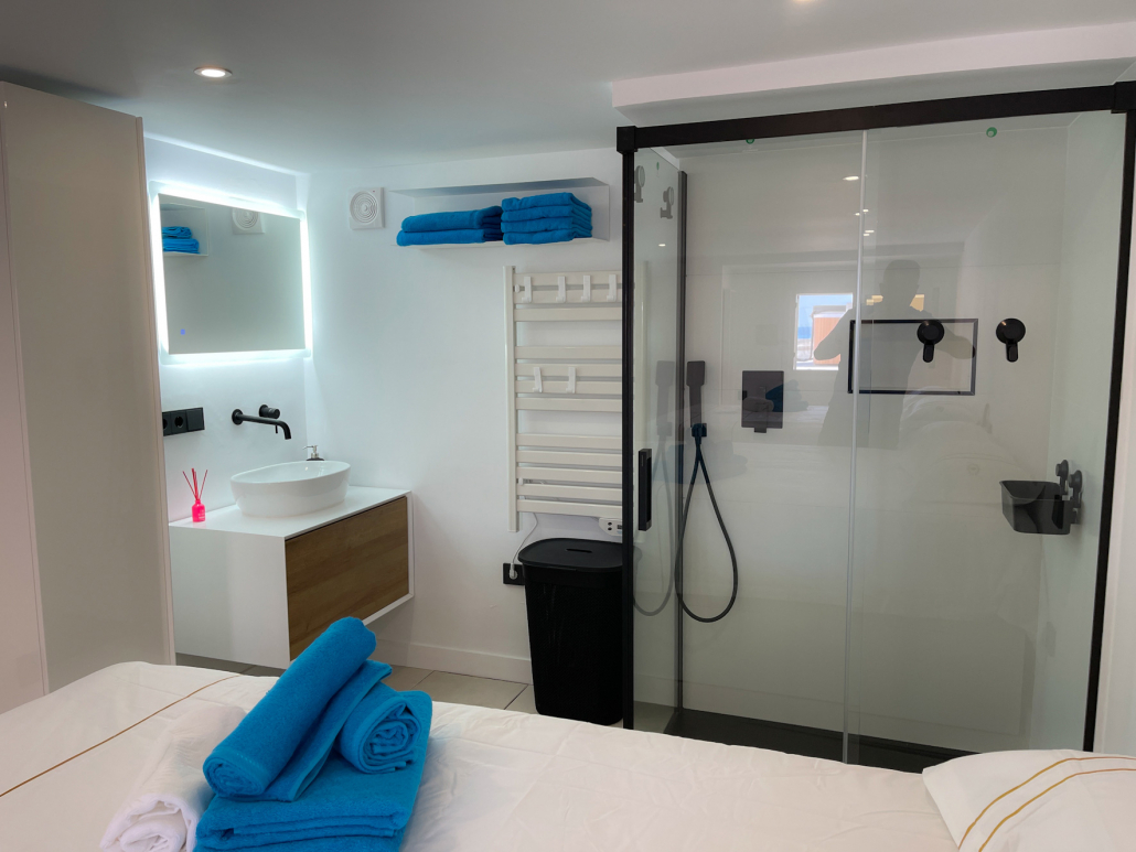 De slaapkamers bevinden zich op de benedenverdieping en zijn ruim en mooi ingericht. Alle de tv's in de slaapkamers hebben vlaamse televisie. De grootste troef is natuurlijk de grote lichtpartijen die uitzicht geven op strand, zee en of de terrassen.
