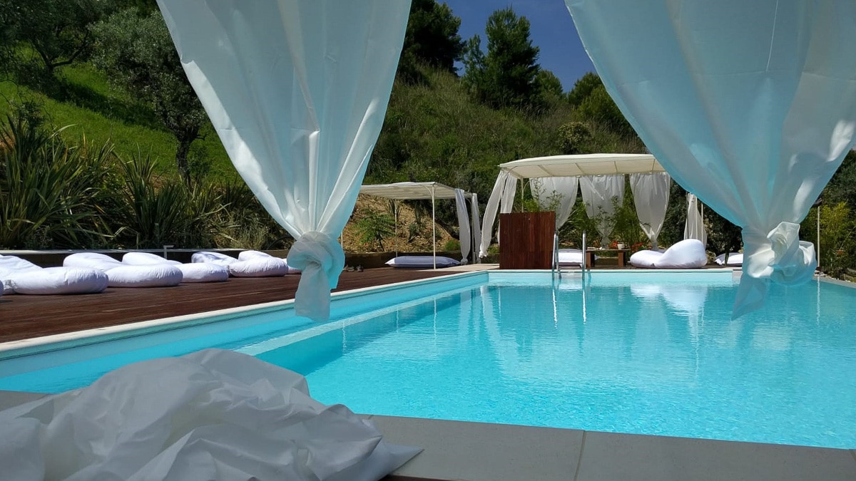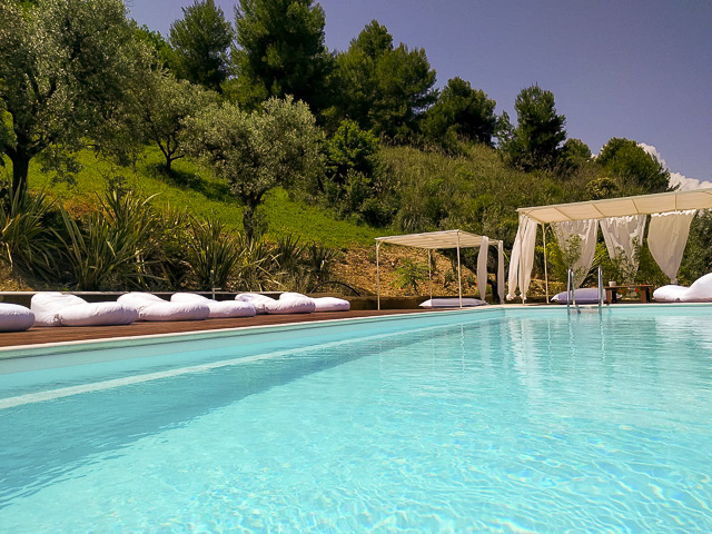 Naast het grote vakantiehuis met zwembad staat een poolhouse met een ingerichte keuken om allemaal samen te gebruiken. Buiten staan er tafels en er is een vaste BBQ. Het privé zwembad ligt op een terrein hoger gelegen dan het huis. Het vakantiehuis voor 8 personen geniet van een groot infinity-zwembad van 5 x 10 meter, vanwaar er een prachtig panoramisch uitzicht is op de Adriatische zee. Rondom het zwembad van het vakantiehuis in Le Marche komt een houten terras met ligbedjes. Alles heel modern en van goede kwaliteit. Het vakantiehuis met zwembad is bereikbaar via een grindpad van 250 meter die afgesloten kan worden door een poort.