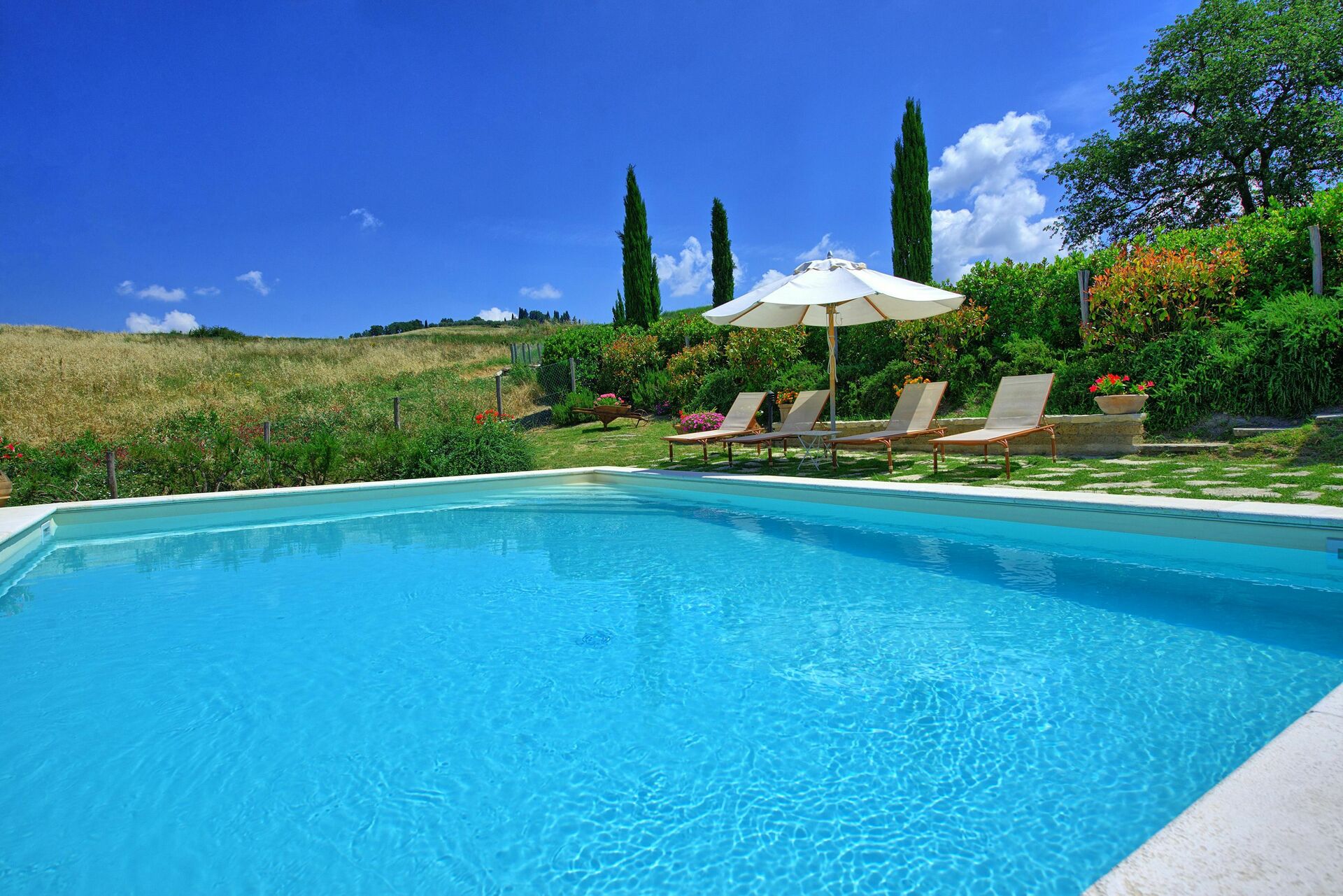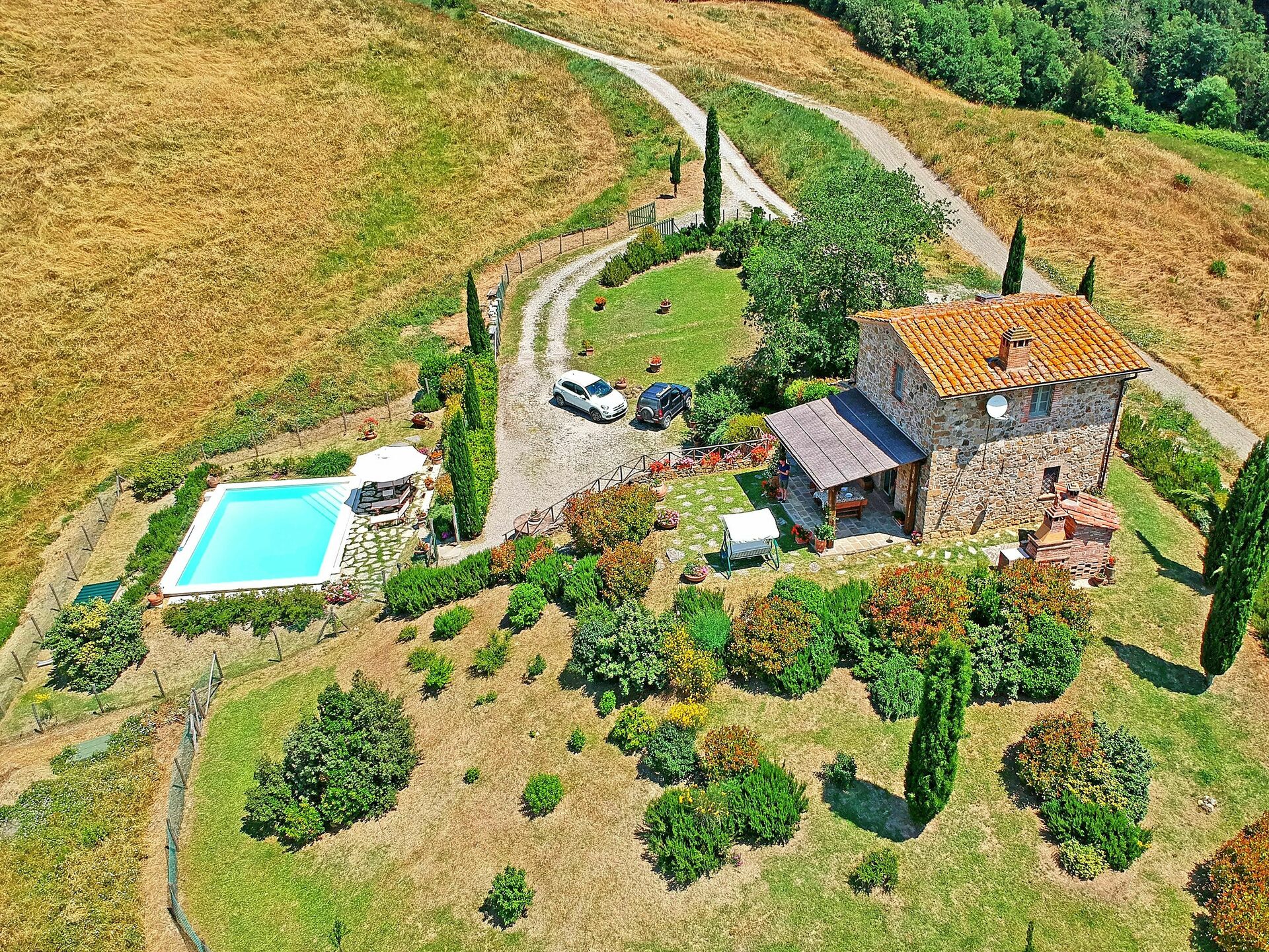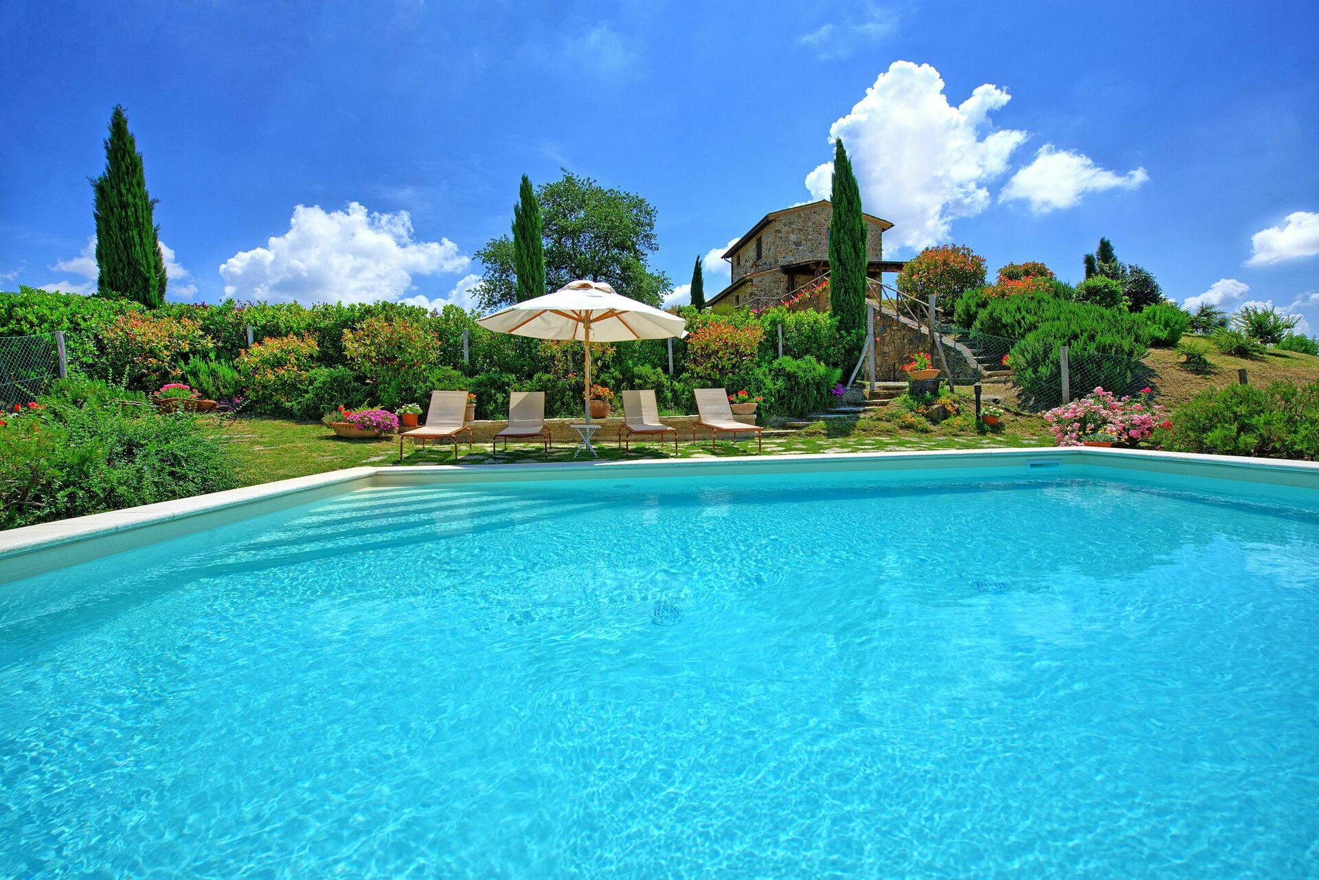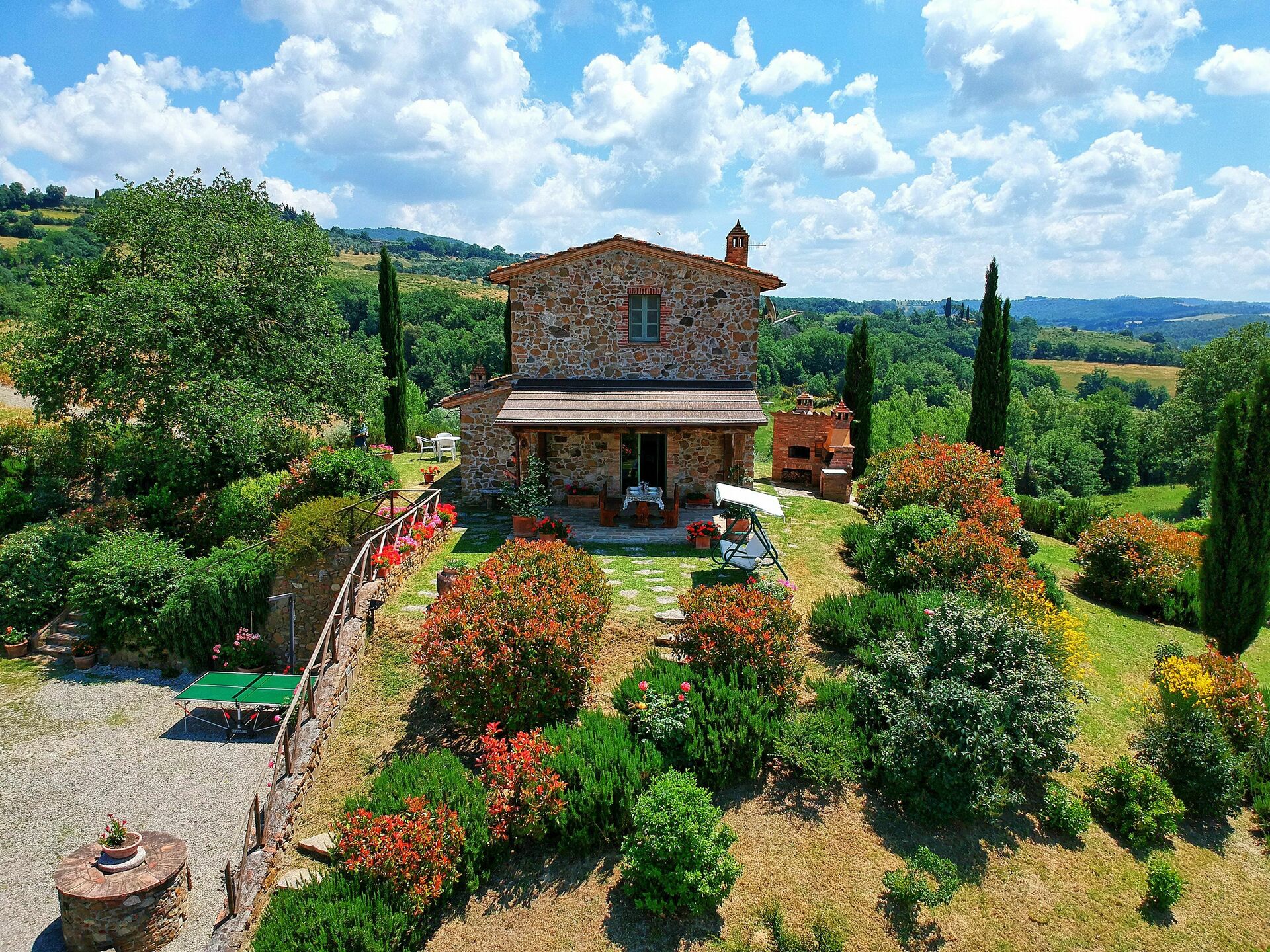 Castelmuzio is een prachtig en charmante gerenoveerde vakantiewoning gelegen ten zuiden van Siena, tussen de heuvels van de Crete Senesi (Toscanie,Trequanda, Siena en omgeving). De vakantiewoning (vroeger een schuur) werd gerenoveerd rekening houdend met de typische Toscaanse voorschriften tot een heel comfortabel verblijf. De inrichting is zeer smaakvol. Er is een grote tuin, voorzien van het nodige meubilair, een barbecue en een privé zwembad (7,80 x 5,20 m – max. diepte 1,50 m - open van 01/06 tot 30/09). Vanuit de living komt men direct op het terras met adembenemend zicht over de heuvels en de valleien. De toegang tot Castelmuzio is een verharde aardeweg, niet aan te raden voor verlaagde voertuigen.