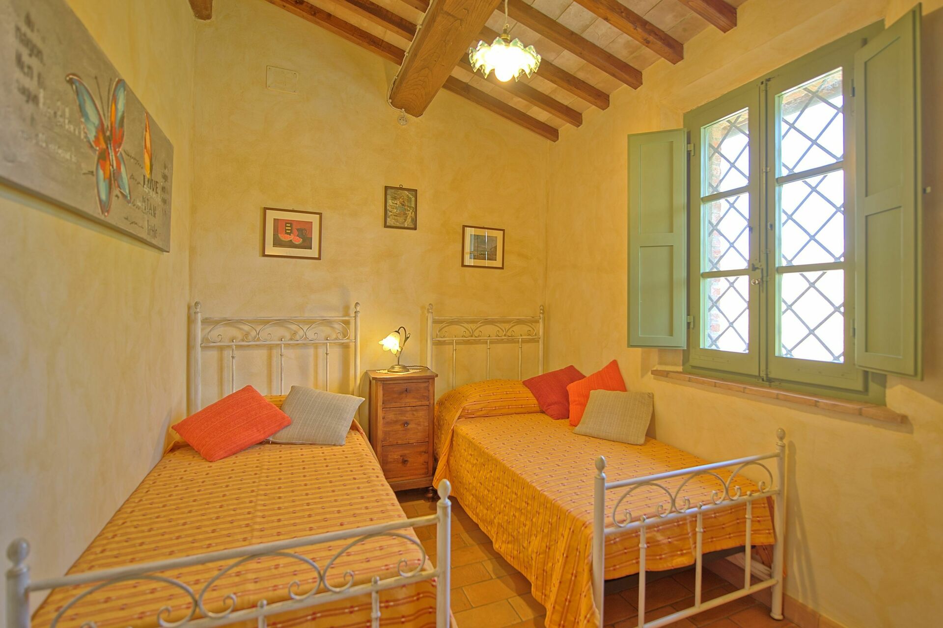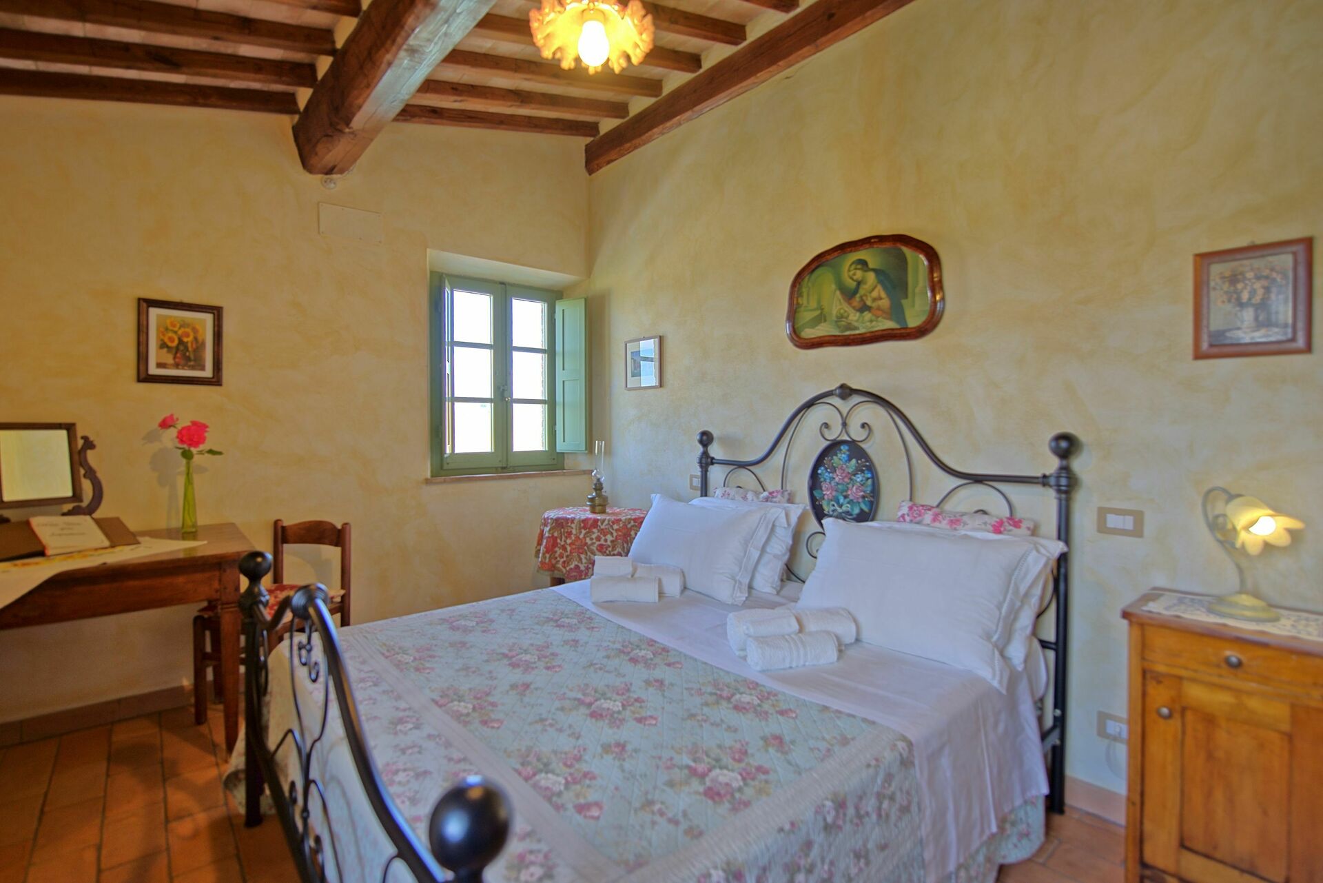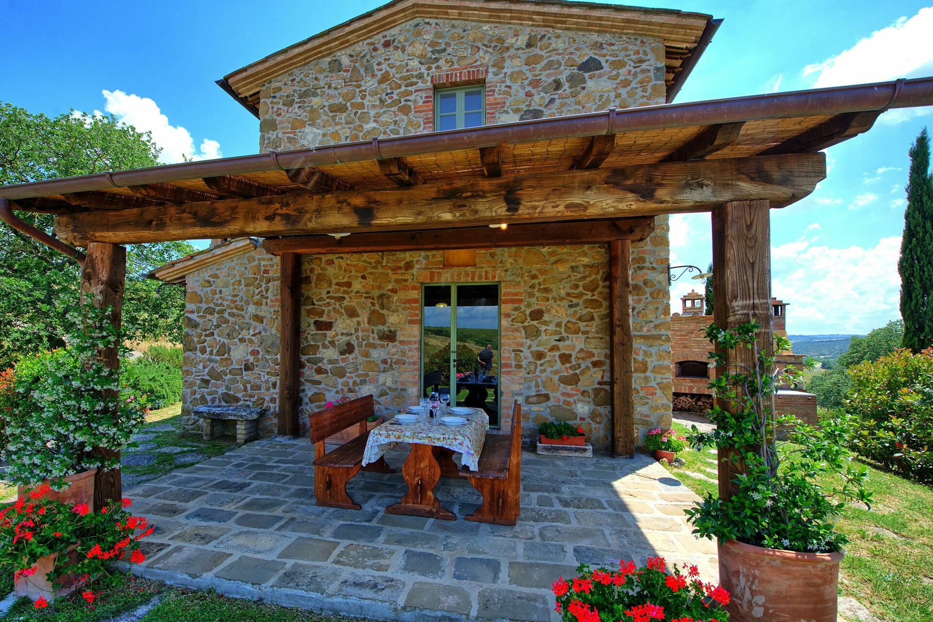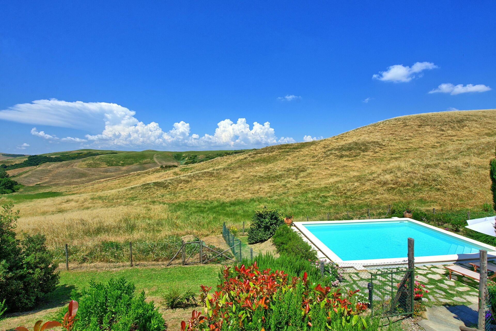 Castelmuzio is een prachtig en charmante gerenoveerde vakantiewoning gelegen ten zuiden van Siena, tussen de heuvels van de Crete Senesi (Toscanie,Trequanda, Siena en omgeving). De vakantiewoning (vroeger een schuur) werd gerenoveerd rekening houdend met de typische Toscaanse voorschriften tot een heel comfortabel verblijf. De inrichting is zeer smaakvol. Er is een grote tuin, voorzien van het nodige meubilair, een barbecue en een privé zwembad (7,80 x 5,20 m – max. diepte 1,50 m - open van 01/06 tot 30/09). Vanuit de living komt men direct op het terras met adembenemend zicht over de heuvels en de valleien. De toegang tot Castelmuzio is een verharde aardeweg, niet aan te raden voor verlaagde voertuigen.