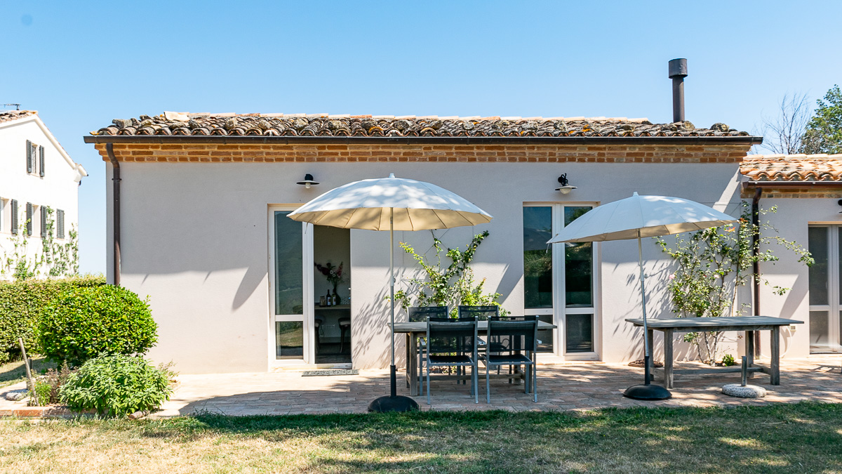 Alle accomodaties genieten van een prachtig panoramisch uitzicht op het glooiende landschap van de marken. Vanaf het gedeelde zwembad heb je een prachtig uitzicht over de typische Italiaanse velden en op het majestueuze Nationaal natuurpark Monti Sibillini. De regio biedt een perfecte mix van rust, cultuur, natuur, heerlijk eten en veel meer! Casa Capanna is één van de aparte huisjes tussen de 4 logementen in het domein. Het vakantiehuis werd luxueus gerenoveerd en perfect ingericht voor 4 personen. Buiten geniet je van een eigen privé terras en privé tuin met een ongelooflijk uitzicht. Buiten op het terras staat een tafel met stoelen om heerlijk te genieten van de vergezichten op het Sibillini Nationale Park.