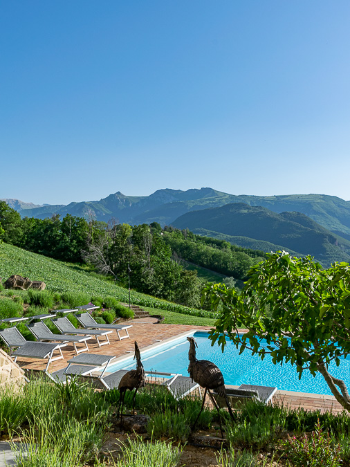 Het zeer groot gemeenschappelijk zwembad (6x12m) van het vakantiehuis in Italië is omringd door terrassen waar voldoende ligbedden en parasols voorzien worden. Het gemeenschappelijk zwembad van het vakantiehuis in Le Marche geeft ook opnieuw uit op de prachtige Italiaanse velden en bergen.
