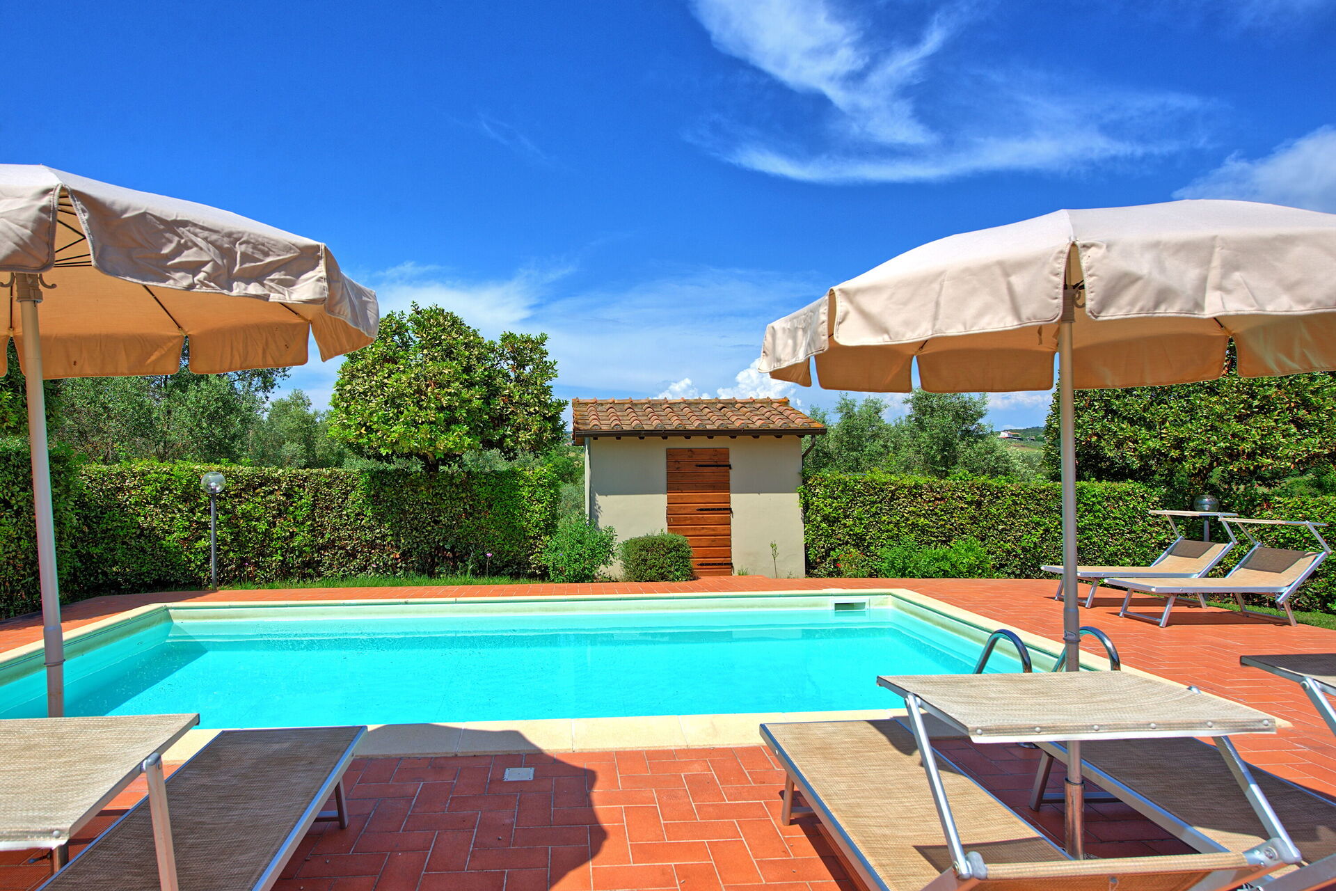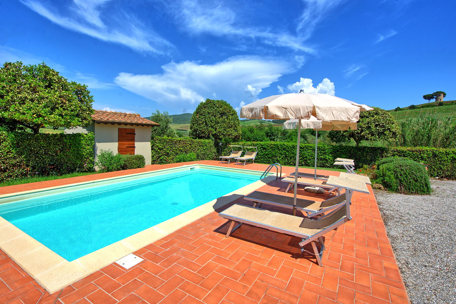 Cuccardino is een kleine, alleenstaande, volledig gerenoveerde schuur die heel charmant werd ingericht als vakantiewoning. Rustig gelegen op het platteland op 5 km van het zandstrand van Marina di Bibbona (Costa Toscana e Isole). Het charmante stadje Bolgheri met zijn vernieuwe cipressenlaan ligt in de heel nabije buurt, ook Cecina met zijn excellente restaurantjes ligt op slecht 7 km. Deze vakantiewoning heeft een private, afgesloten tuin met een rond zwembad (diameter 7,3 m - diepte 1,2 m - open van 1 mei tot 30 september) en een barbeque. Extra huishoudhulp te regelen ter plaatse.