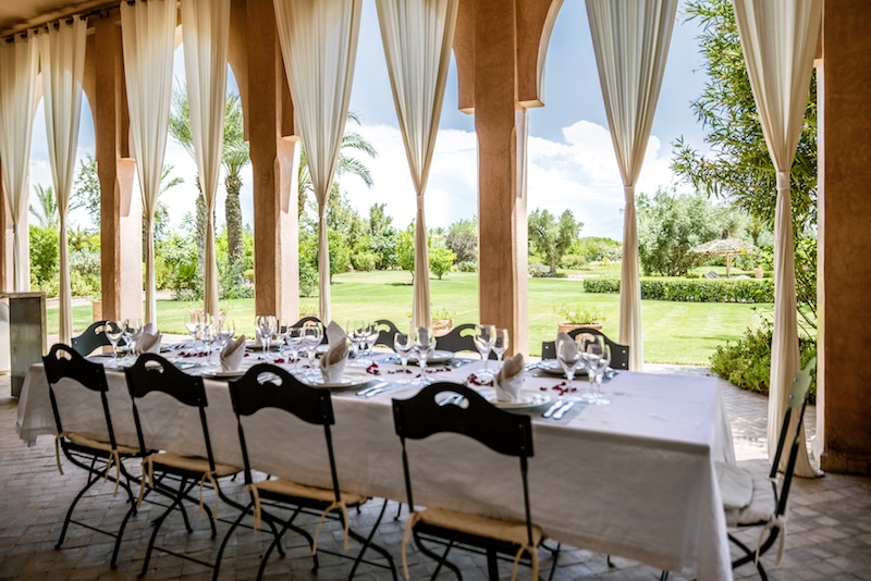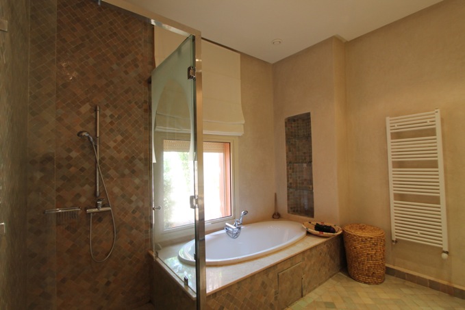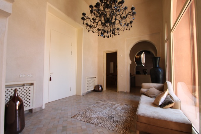 Voor een unieke vakantie Marokko met hotelservice! Begin je vakantie met elke dag een mooi gedekte tafel met gratis ontbijt! Dar Jenna betekent 'Hemels Huis'. Deze adembenemde, mooie villa met privé hotelservice straalt één en al weelde en luxe uit ; alle gebruikte materialen zijn van exclusieve kwaliteit. De villa is gelegen op een zeer rustig domein van 11.000m2 op amper 25 km van Marrakesh. De tuin, met automatische bevloeiing, is prachtig en werd aangelegd door een gerenomeerd landschapsarchitect. Naast de grote open ruimtes zijn er palmbomen, olijfbomen, prachtige bloeiende struiken en bloemen. Het zwembad (17x6m) is omringd door grote terrassen, met voldoende tuinmeubilair (8 parasols) en met zicht op het Atlasgebergte waarvan de bergtoppen besneeuwd zijn tot eind mei. Een prachtig spektakel vol contrasten. Op aanvraag kan het zwembad verwarmd worden. Dar Jenna heeft de allures van een Marokkaans paleis en is heel groot (800 m2). Er zijn twee prachtig ingerichte salons (TV-flatscreen sateliet met ontvangst van Vlaamse zenders). Eén salon is typisch Marokkaans en het andere salon is westers. Men waant zich echt in een andere wereld. De keuken is volledig ingericht (oven, microgolf, vaatwas,wasmachine, droogkast, ....). Het huispersoneel staat in voor de opkuis van de kamers (hotelservice) en zorgt elke morgen voor een ontbijt. Elke dag wacht het zwembad op u met prachtig smeedijzeren tuinmeubilair, met heerlijke zachte kussens en telkens verse strandlakens. Dit alles is begrepen in de prijs. Op aanvraag kan er elke dag voor de lunch en het diner gezorgd worden, zodat u uw verlof in volledige rust en ontspanning kan doorbrengen (supplementair). En dit vooral voor een zeer democratische prijs. De 4 zeer ruime en prachtig gedecoreerde slaapkamers hebben elk een luxe badkamer met ligbad en douche. Elke slaapkamer heeft zijn eigen gezellig terras voorzien van het nodige meubilair met zicht op de tuin. De villa is volledig voorzien van air-conditioning. Alle linnen is voorzien.