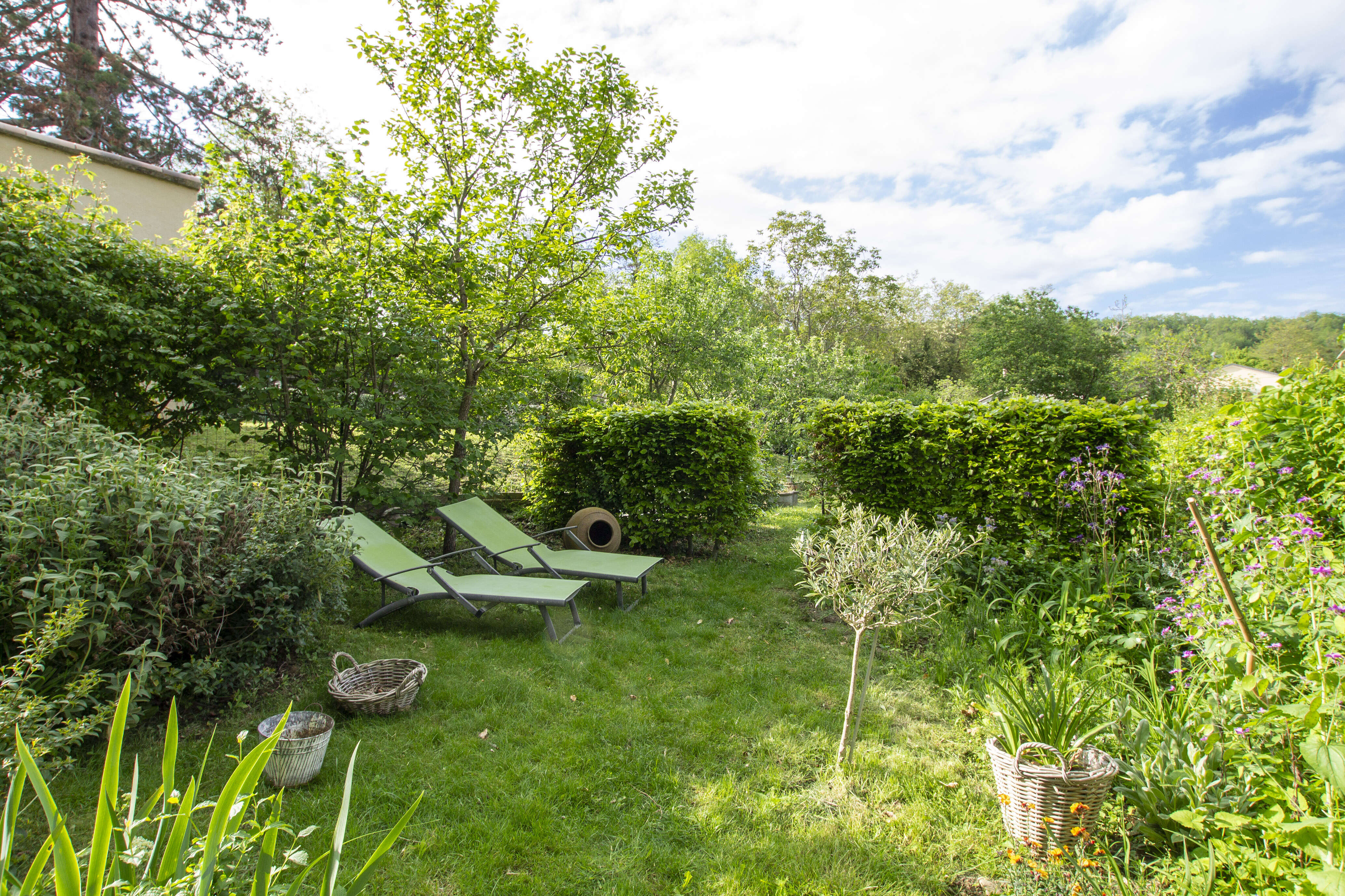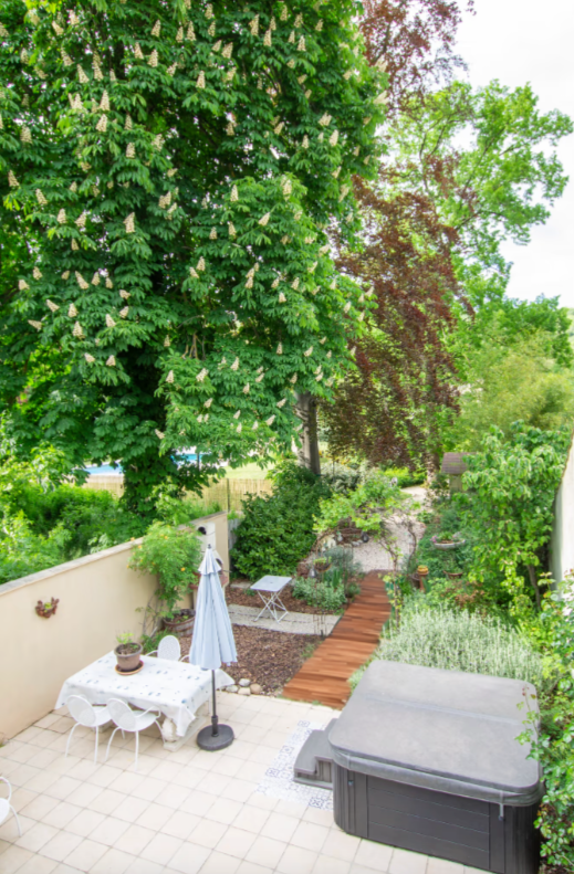 De tuin is bijzonder gezellig met veel kruiden en planten. Er is een barbecue, maar ook een egg-cooker waar je heerlijke gerechten kan in klaarmaken. 's Avonds is het zeer sfeervol en romantisch door de verlichte tuin en het verlicht zwembad. Het steegje waarin het huis is gelegen, is deel van een route naar Santiago de Compostella. In het huislinnen is voorzien : lakens, handdoeken, strandlakens, keukenhanddoeken, tafellinnen en een badjas per persoon.