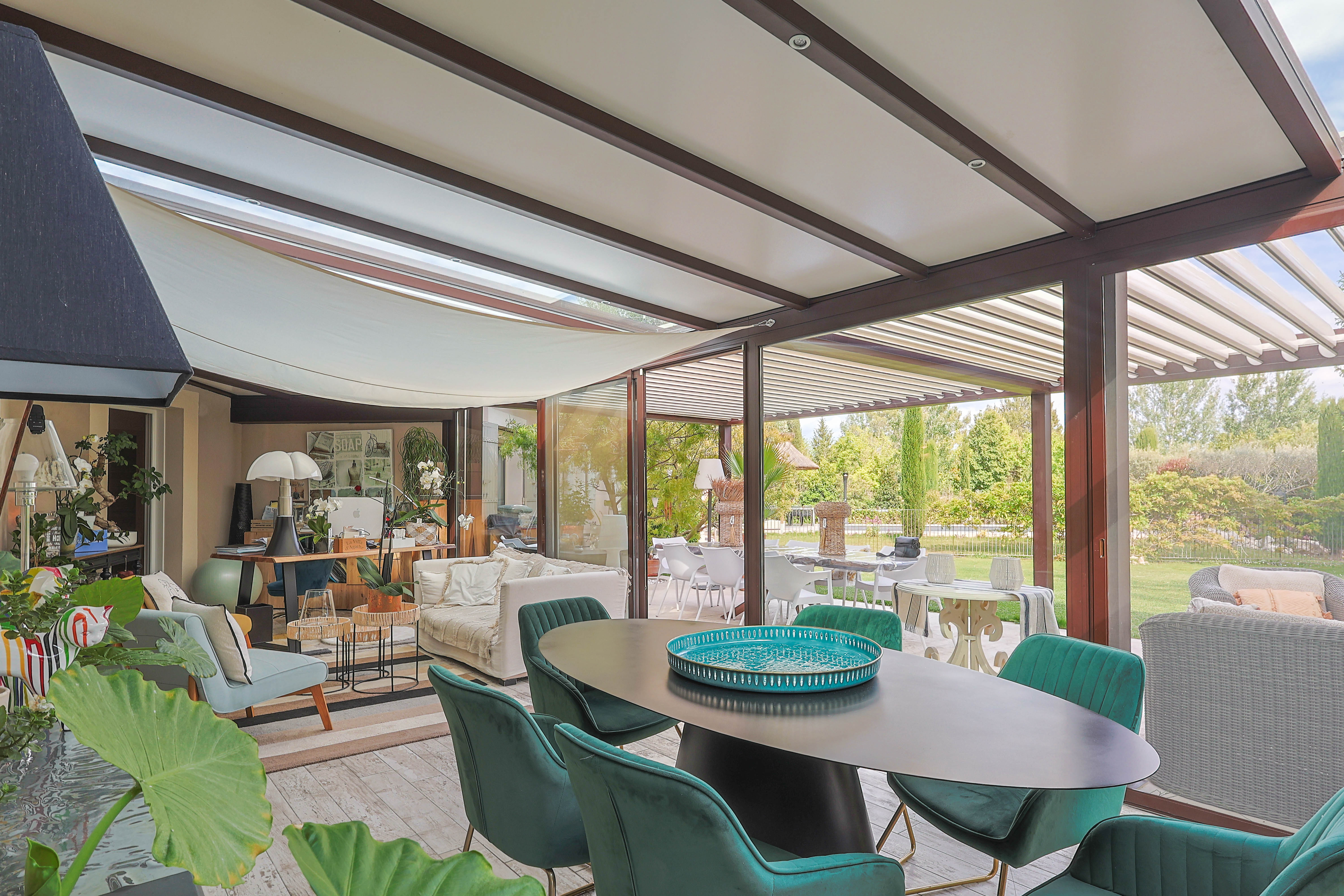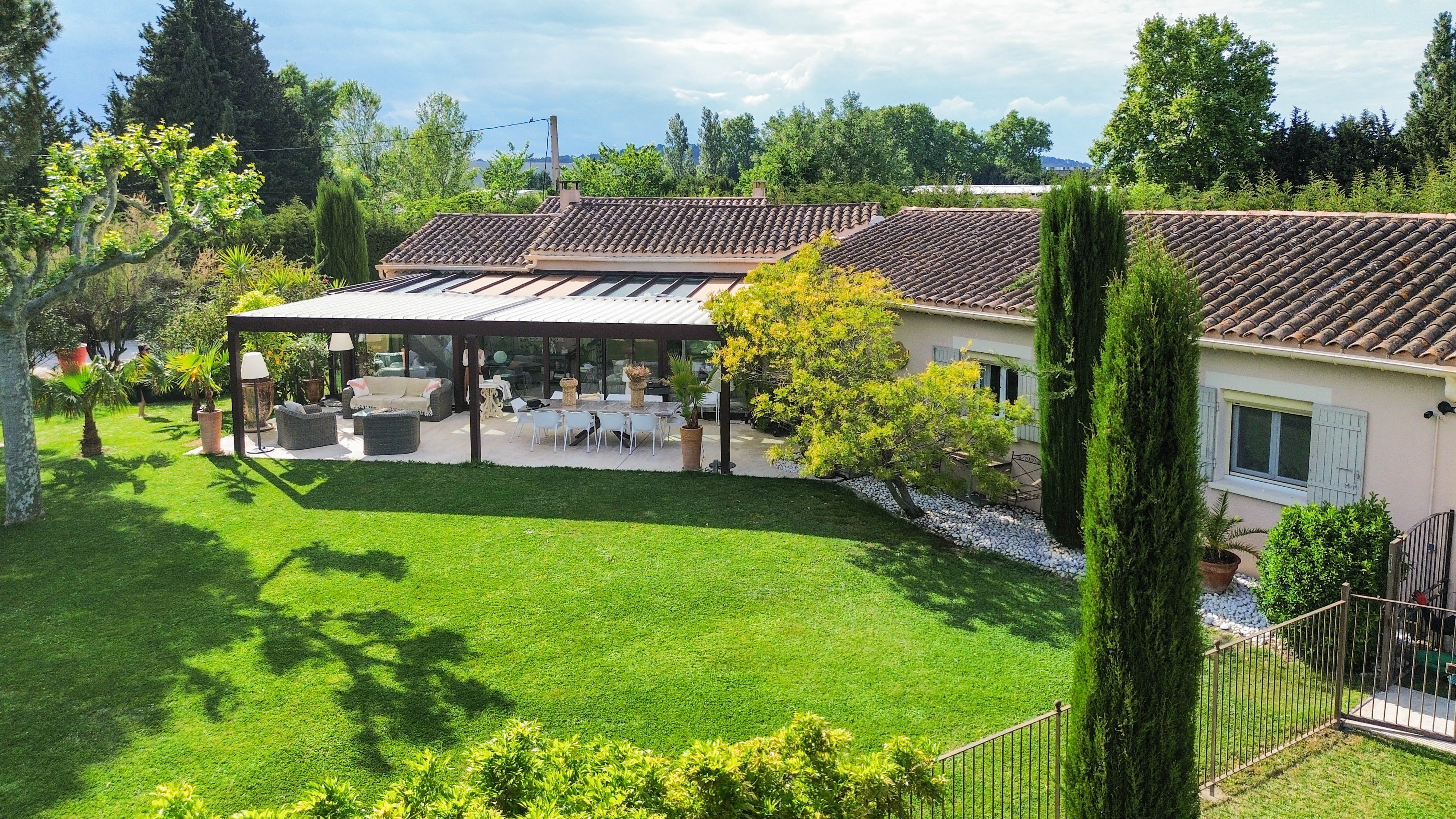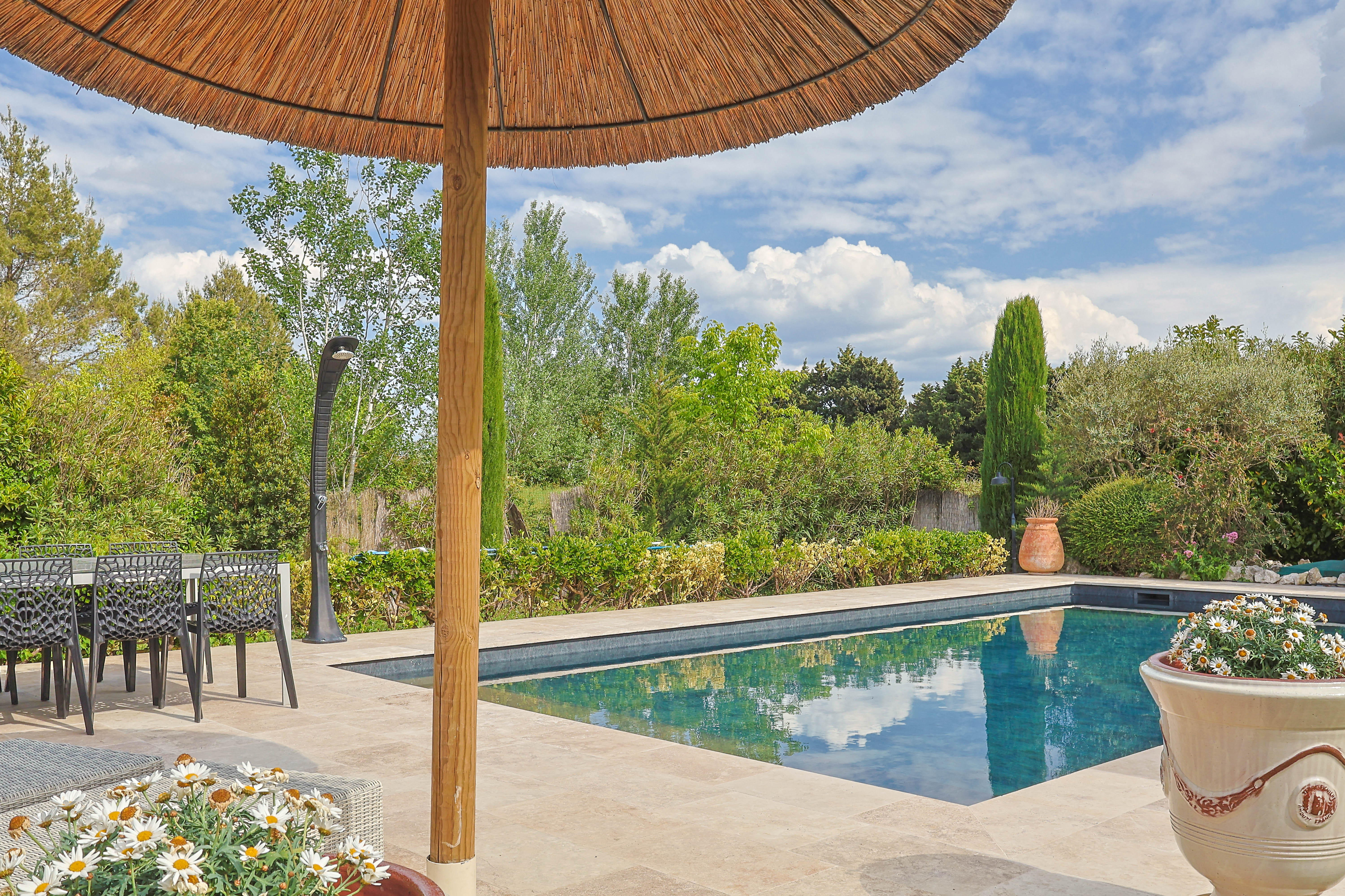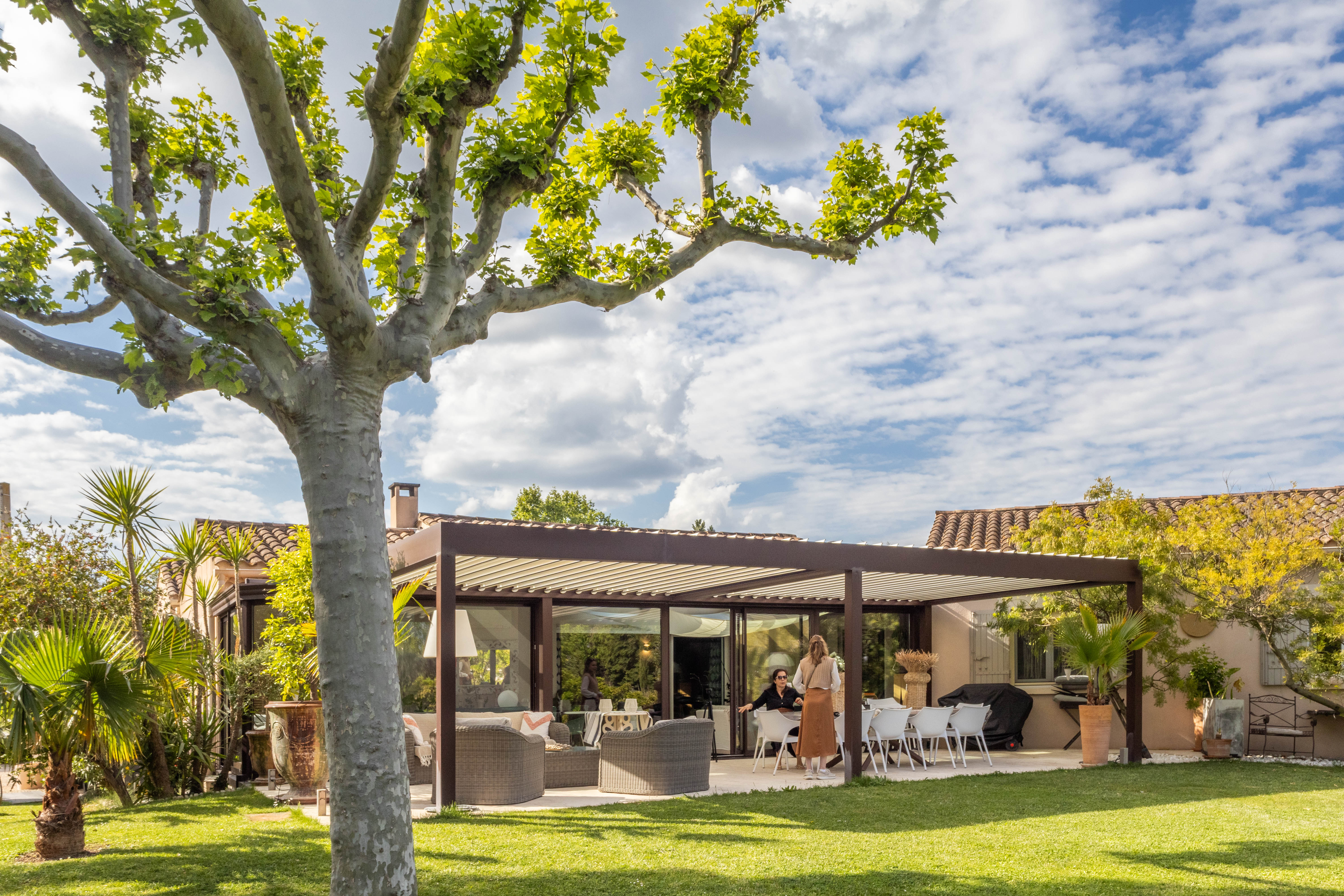 Dit vakantiehuis in de Provence is volledig voorzien van airconditioning en beschikt over drie tweepersoonskamers, elk met een groot bed, airco en een tv, en twee badkamers. Eén van de kamers biedt optioneel een babybedje. Het interieur is warm en sfeervol, met veel lichtinval dankzij de grote ramen en een stijlvolle inrichting. De vakantiewoning heeft ook een moderne, volledig uitgeruste keuken, een airconditioned veranda, en een bioklimatische pergola met veel tuinmeubilair en een prachtig uitzicht op de tuin en het zwembad.