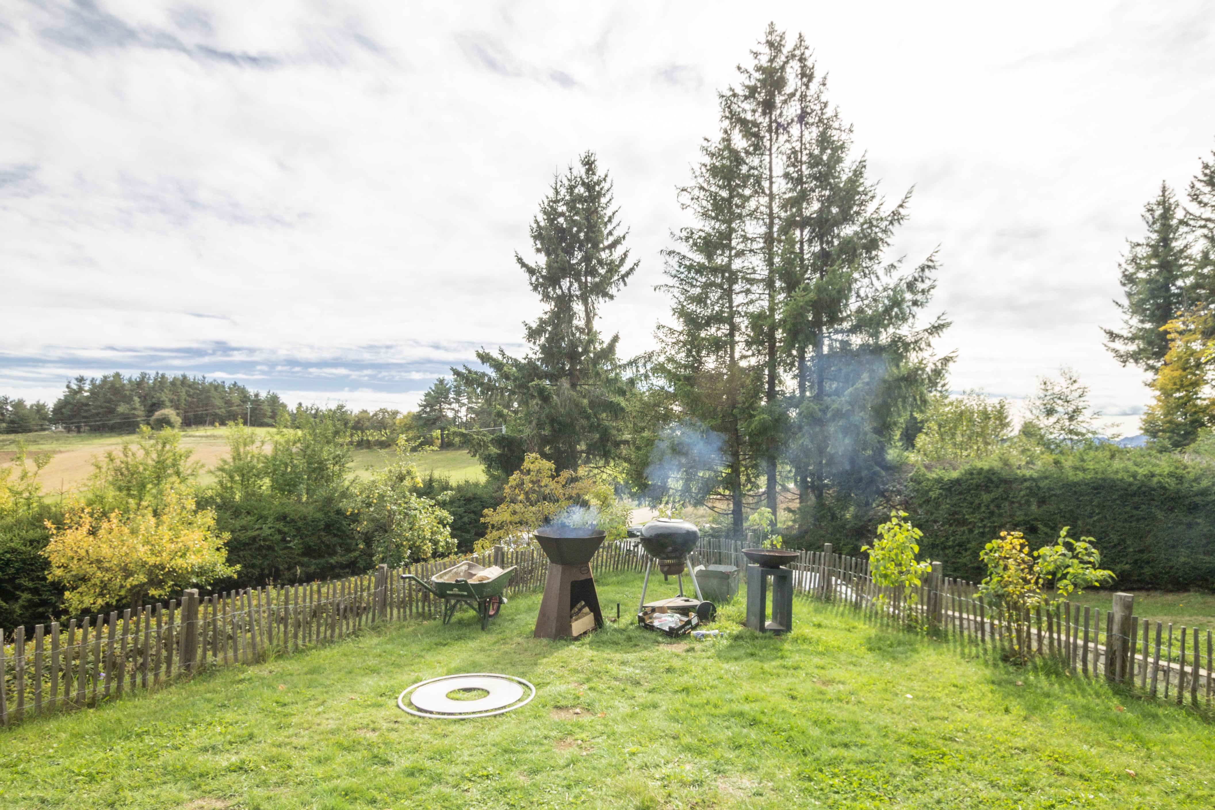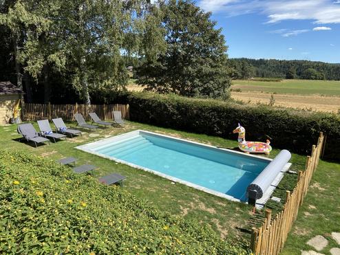 De vakantiewoning met verwarmd zwembad voor 12 personen is omgeven door veel groen op een volledig omheind perceel en biedt een ware oase van rust. Er zijn verschillende terrassen rondom de volledige vakantiewoning, allen genieten ze van een prachtig panoramisch uitzicht. Midden in de riante tuin bevindt zich het verwarmd privé zwembad uitgerust met een rolluik en een houten hek (afmetingen zwembad: 4 m x 8 m, diepte 1,40 m) geopend van april tot oktober. De temperaturen tijdens de, soms warme, zomermanden is zeer gematigd. In deze regio, omgeven door een bergachtige omgeving, zijn de temperaturen zeer aangenaam. Overdag kan het een lekker warme 28 graden zijn, terwijl het 's nachts voldoende afkoelt om zeer goed te kunnen slapen. Hierdoor is airco niet steeds nodig, er zijn wel ventilatoren beschikbaar. In de winterperiode is het er ook zalig te verblijven. Op slechts 15 kilometer is reeds een skipiste Lalouvesc. Andere skipistes liggen allemaal binnen de 25km van het vakantiehuis. Rond de ruime open haard in de grote open lichtrijke living zijn verschillende sofa's waar men helemaal in kan wegzakken met een warme tas thee.