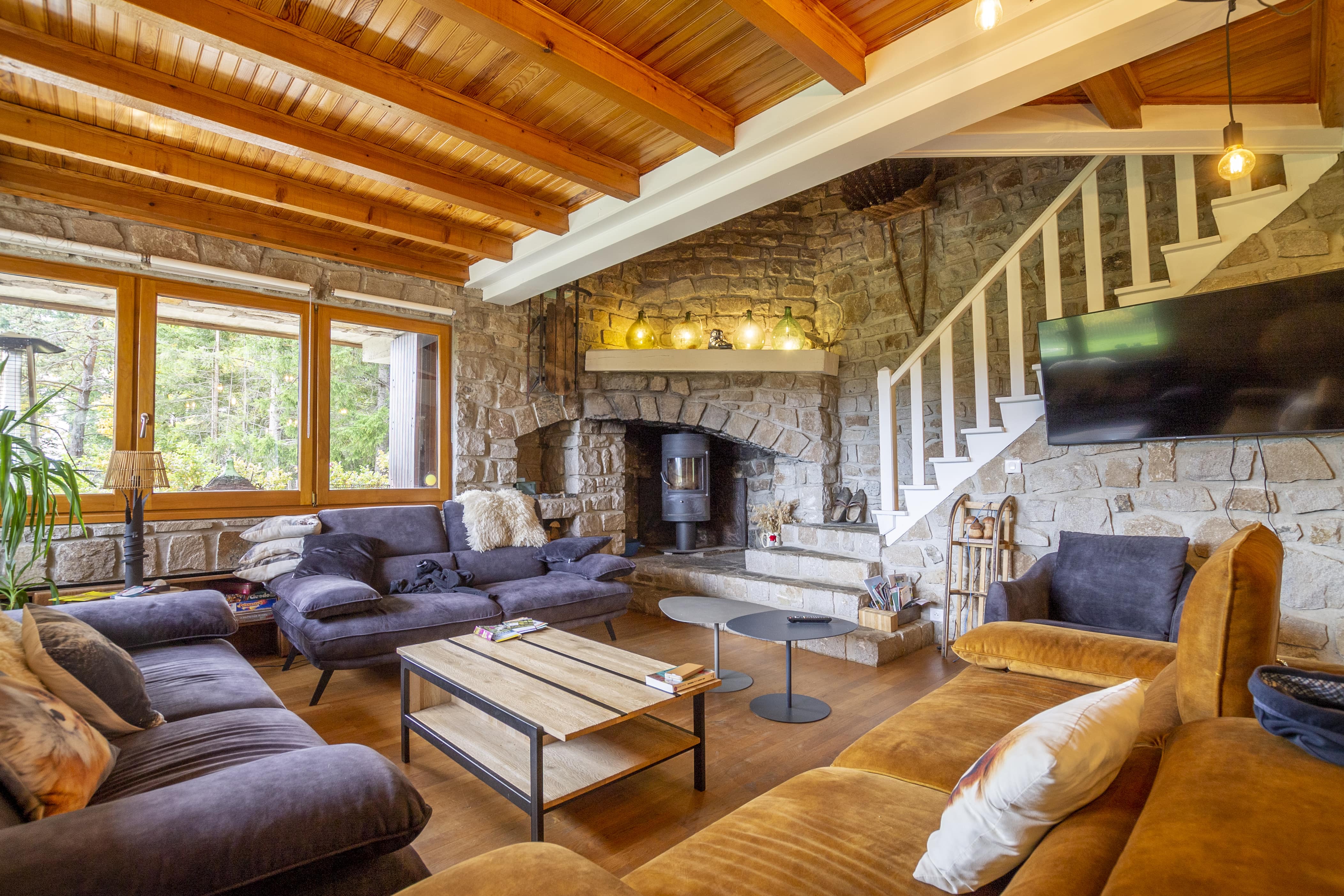 Het vakantiehuis voor 12 personen in de Ardeche werd ingericht in gezellige chalet-stijl. Er werd gedecoreerd met verschillende mooie houtmaterialen en comfortabel meubilair. Gezellige hoekjes en stijlvolle kunstwerken stralen rust en kalmte uit. De slaapkamers werden met zorg ingericht. Eén van de slaapkamers geniet van een zeer ruim privé balkon waar men ten volle kan genieten van een adembenemend uitzicht op omliggende valeien en bossen. In de kelder van de woning werd een volledige ontspanningsruimte ingericht, compleet met cinemaprojector, tafeltennis, darts en pool.