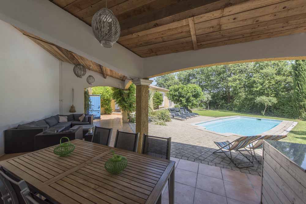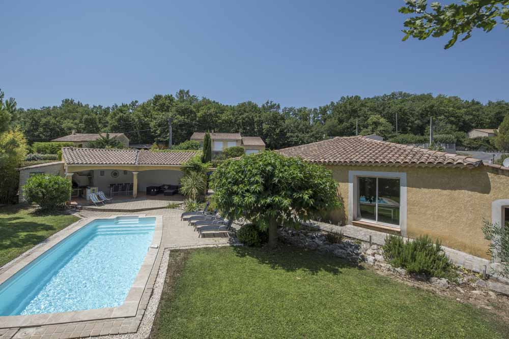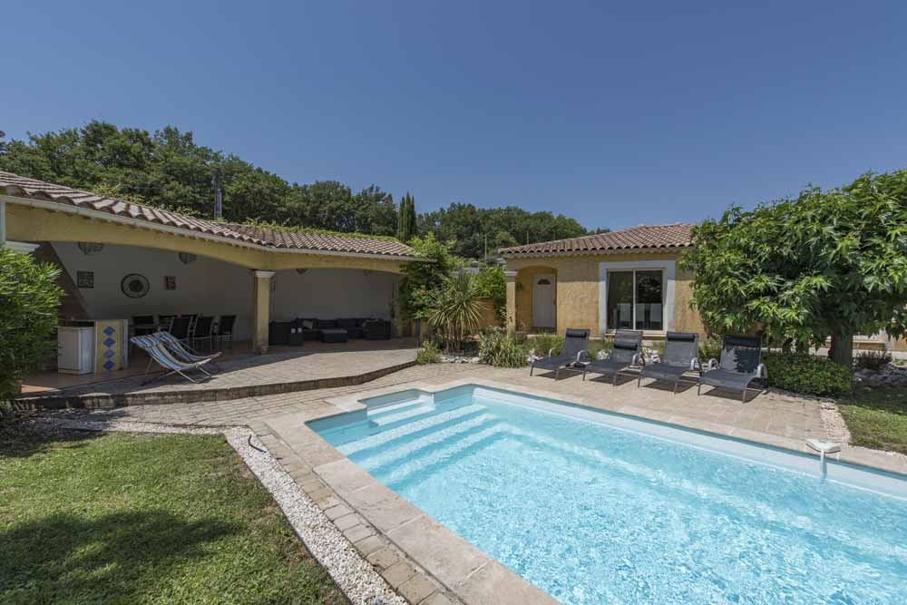 Welkom in Les Cypresses, een mooie gelijkvloerse vakantiehuis voor maximaal 8 personen met privézwembad en prachtig uitzicht op de heuvels van de Gard (Zuid-Frankrijk). Gelegen net buiten het pittoreske middeleeuwse dorpje Monteils, biedt dit vakantiehuis rust, comfort en een uitstekende ligging voor het verkennen van zowel natuur als cultuur. Voor de dagelijkse boodschappen kunt u terecht op 2 km van het huis of in Alès, op slechts 8 km. Interieur: Comfort en privacy voor iedereen Deze recente woning van 130 m² beschikt over 3 ruime slaapkamers, elk met een eigen badkamer met douche en lavabo – ideaal voor families of meerdere koppels. Er zijn 2 aparte toiletten aanwezig. De volledig uitgeruste open keuken biedt alle comfort: koelkast met diepvriezer, gasfornuis, elektrische oven, microgolf, vaatwasser en wasmachine. De gezellige woonkamer met sofa’s sluit naadloos aan op de eetruimte en is voorzien van tv, dvd-speler, muziekinstallatie en wifi. Dankzij de airconditioning blijft het binnen altijd aangenaam fris. Exterieur: Geniet van het buitenleven Dit vakantiehuis beschikt over een prachtig aangelegd domein van 2000 m² met een ruim terras van 100 m², deels overdekt, perfect om buiten te eten of te relaxen. Er is een volledig ingerichte buitenkeuken met koelkast en barbecue – ideaal voor zomerse kookmomenten. Het privézwembad (9 x 4,5 m, diepte 1,5 m) is uitgerust met een alarminstallatie en wordt onderhouden via zoutdialyse (zonder chloor). Rond het zwembad staan ligbedden klaar om in alle rust te genieten van de zon of een goed boek. Voor de wagen is er een schaduwrijke staanplaats op de oprit. Omgeving: Rust en cultuur in balans Deze villa ligt in het hart van de Gard, tussen de wijngaarden en heuvels. Binnen een straal van 60 km bereikt u talrijke hoogtepunten: het indrukwekkende Parc Régional des Cévennes, de Grotte des Demoiselles, het Cirque de Navacelles, de levendige steden Nîmes, Avignon en Montpellier, en zelfs de stranden van de Camargue. De woning is vlot bereikbaar via de luchthavens van Nîmes en Montpellier of met de TGV naar Nîmes, Avignon of Montpellier.