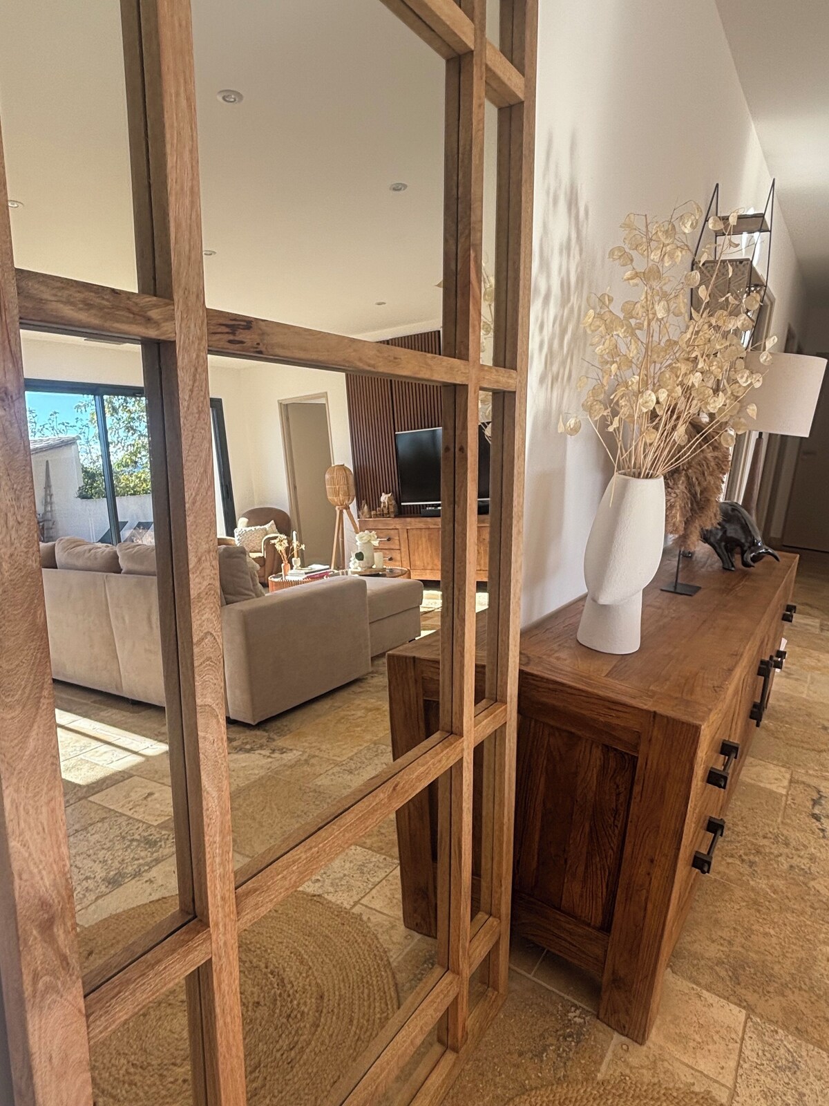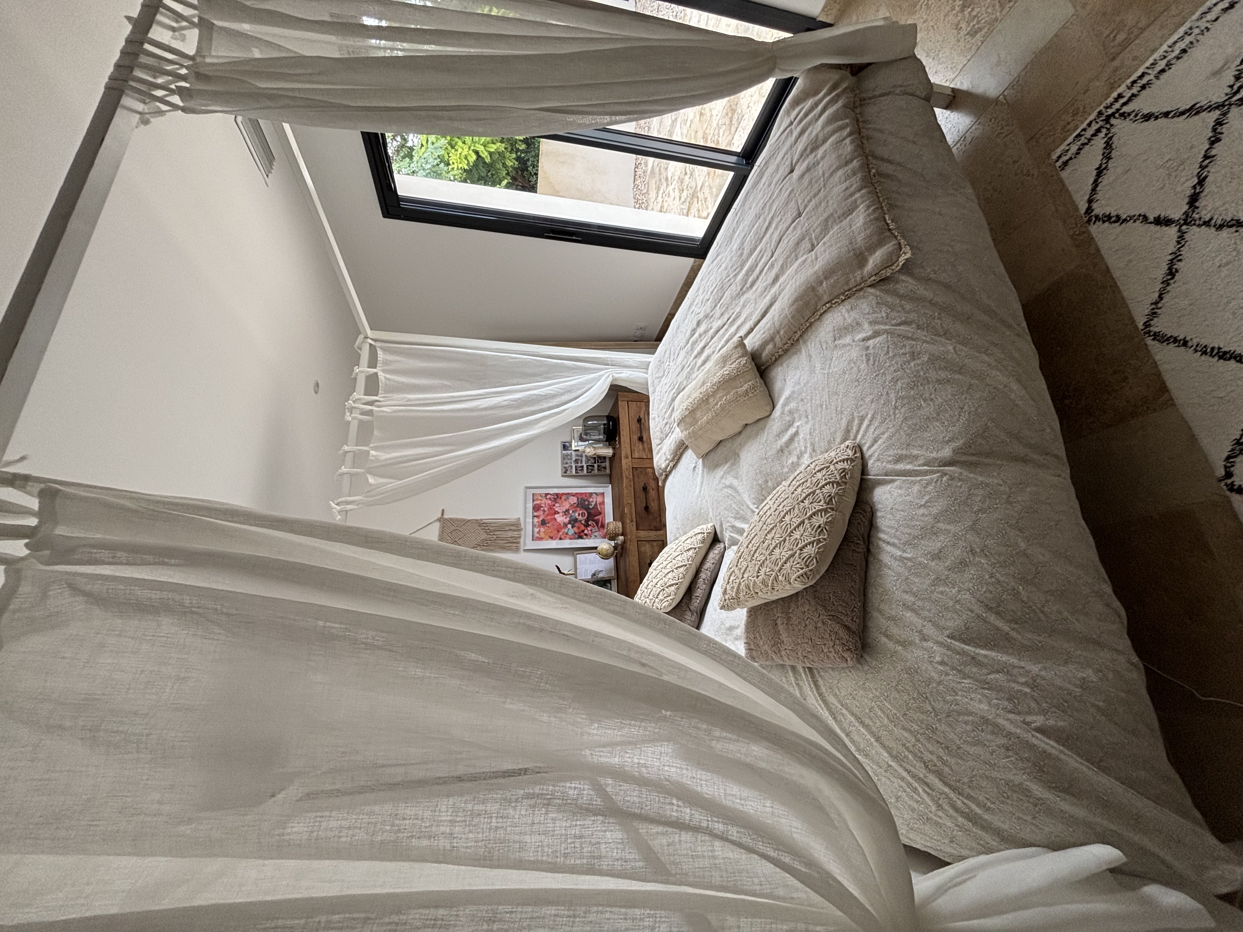 Binnen straalt de woning een lichte, serene sfeer uit die meteen uitnodigt tot rust. De leefruimte is uitgerust met airconditioning. De drie gelijkvloerse slaapkamers zorgen voor een heerlijke nachtrust dankzij comfortabele bedden en airconditioning. Het geheel voelt warm, huiselijk en doordacht ingericht—ideaal voor families en vrienden.