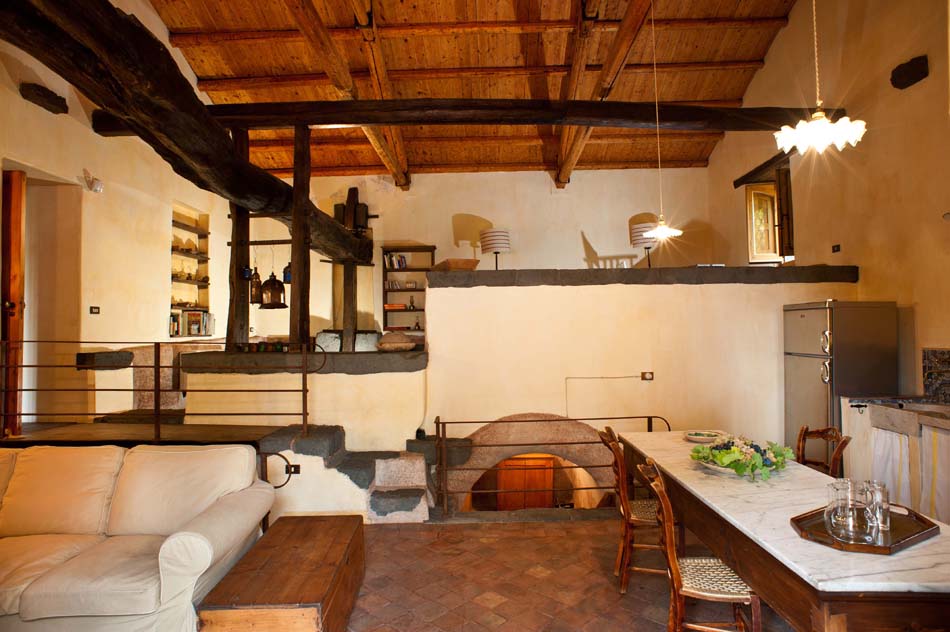 De charmante heuvelachtige omgeving van de Etna vormt de achtergrond voor dit prachtige vakantiehuis met tuin dicht bij Trecastagni (Sicilië, Italië), een klein dorpje op de zuidoostelijke helling van een vulkaan, op slechts 15 km afstand van Catania.