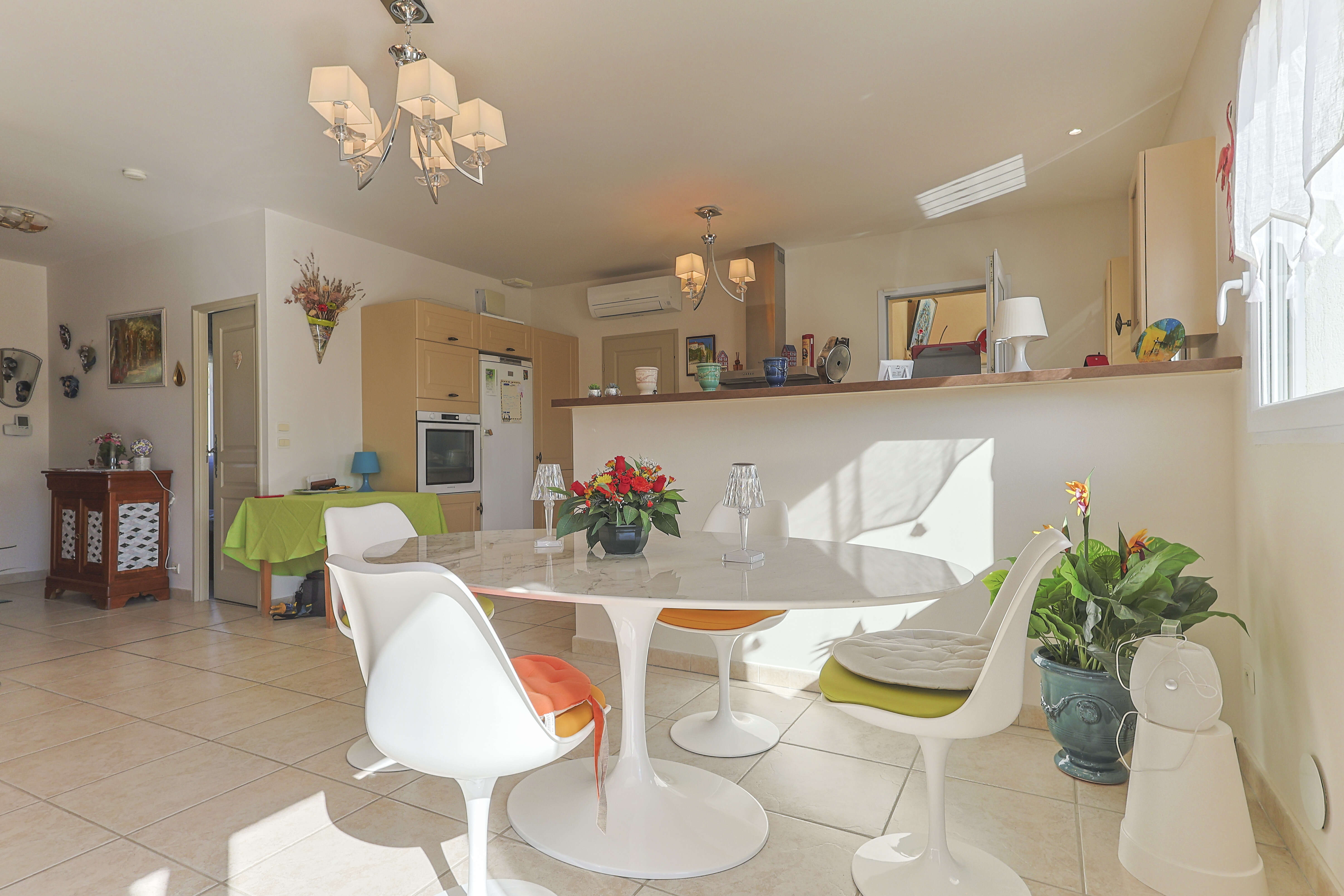 Het interieur is bijzonder goed en zeer kwaliteitsvol ingericht. Het biedt een warme en gastvrije sfeer. De glazen deuren van de lichte en luchtige leefruimte openen naar een betoverend terras, waar je kunt genieten van Fresco diners en de Provençaalse zonsondergang. De leefruimtes zijn airconditioned en de slaapkamers zijn uitgerust met ventilatoren om uw verblijf aangenaam te maken, zelfs tijdens de warme zomerdagen.