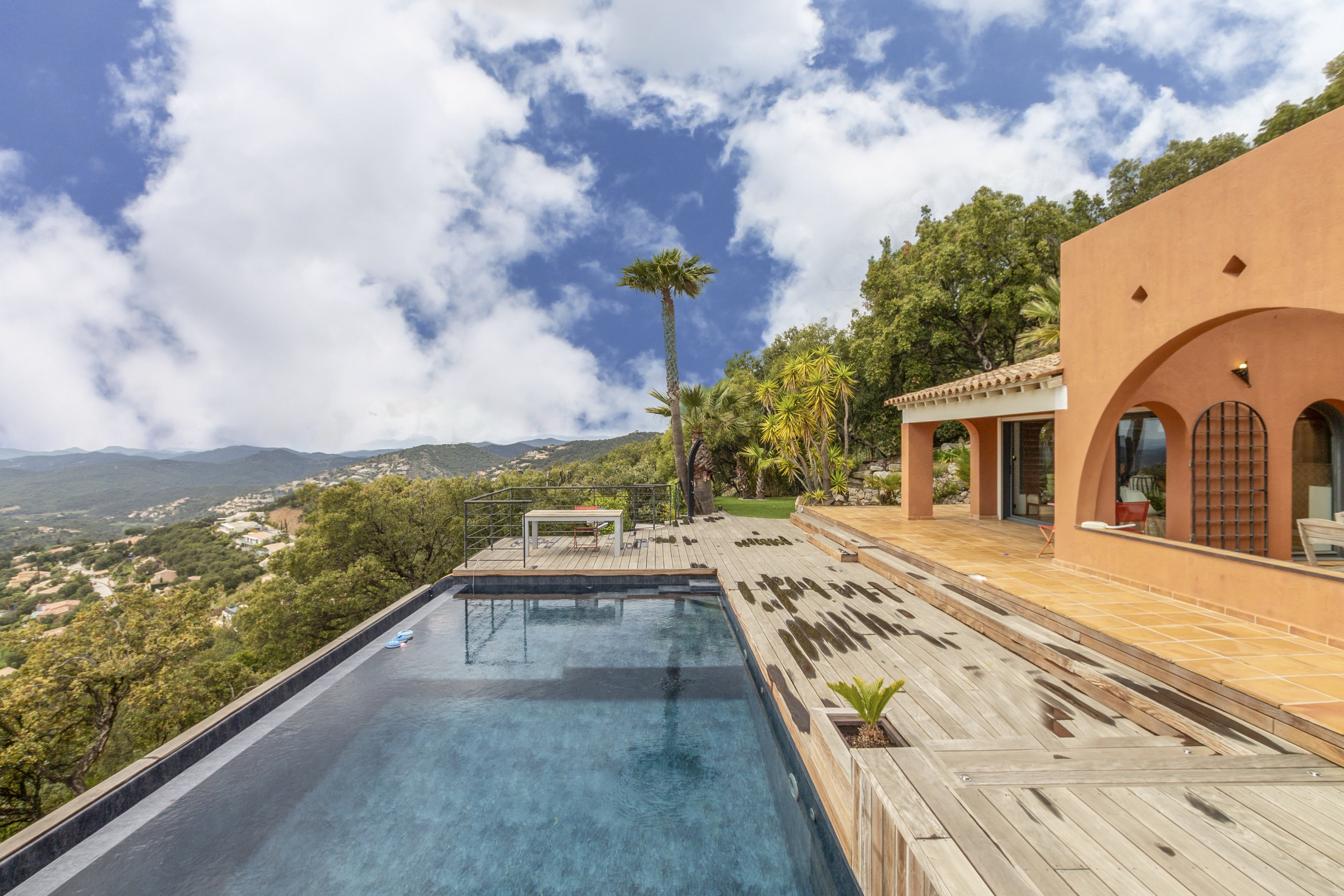Er werd aan alles gedacht om volop te kunnen genieten van deze buitengewone omgeving. De riante infinitypool, verwarmd privézwembad (9x4m, 1,8m diep, verwarmd enkel in juni en september), is omringd door ruime terrassen met ligzetels en tuinsalon om volop te relaxen in de zon. Er zijn ook verschillende overdekte en schaduwrijke plekjes. Er is een mooie aangelegde omheinde tuin met typische provençaalse plantengroei en een parking voor 3 wagens. Dit vakantiehuis met zeezicht in zuid-Frankrijk werd met veel smaak en zorg ingericht. Het beschikt over een grote woonkamer met eettafel, TV-hoek en Mezzanine. Volledig ingerichte keuken met een directe toegang tot een schaduwrijke buiten-eethoek. Alle slaapruimtes hebben rechtstreeks zicht op de zee en genieten van deugddoende airco.