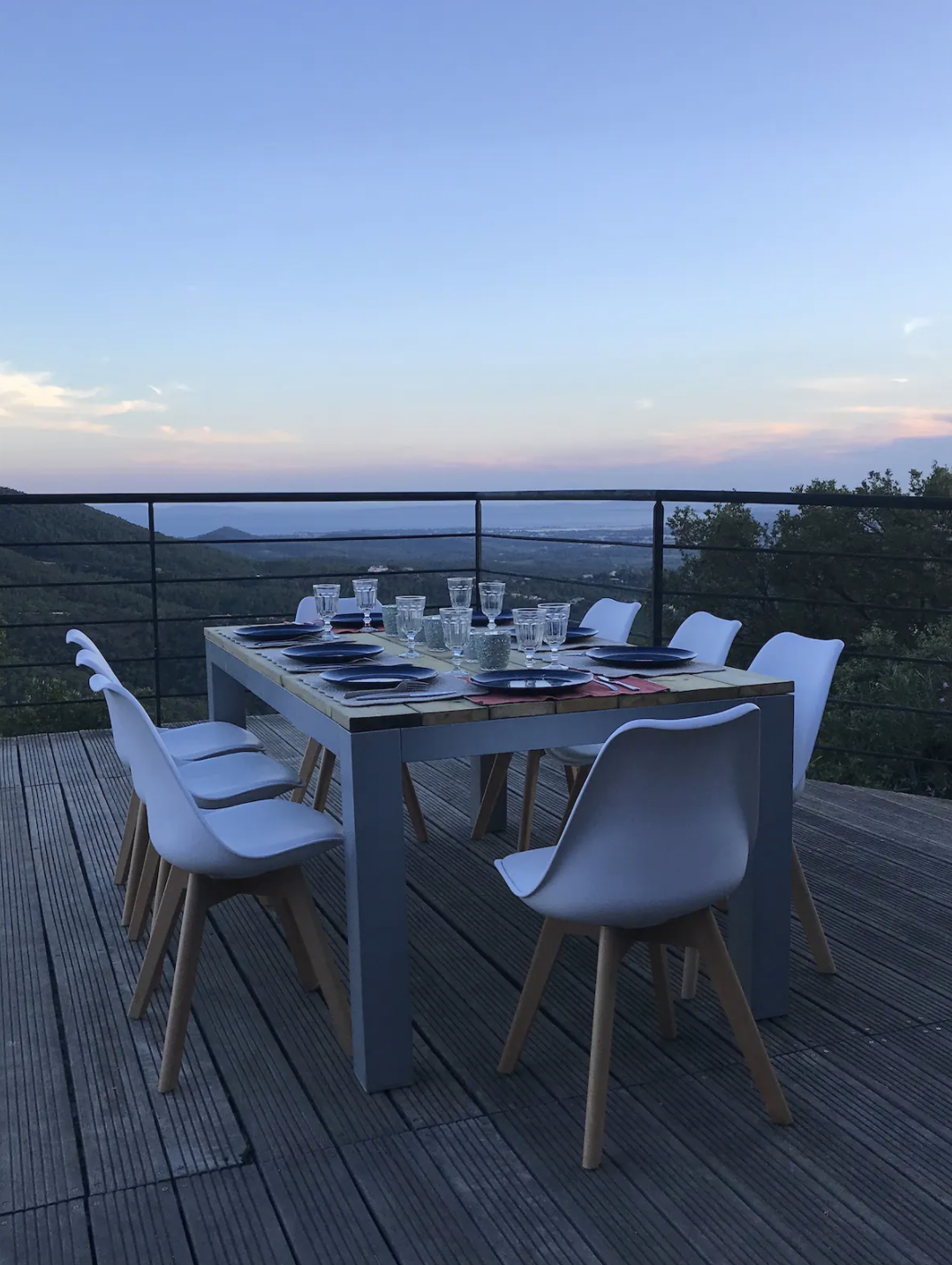 Het vakantiehuis voor 10 personen is volledig zuidelijk georiënteerd en het zeezicht is gewoon onvoorstelbaar. De kwalitatieve inrichting en de vele terrassen garanderen rust en intimiteit, ideaal om de batterijen opnieuw volledig te herladen tijdens een onvergetelijk verblijf. Dichtbij de mooiste stranden, op 5 min. van de golf van Valcros en 25 min. van de luchthaven van Toulon.