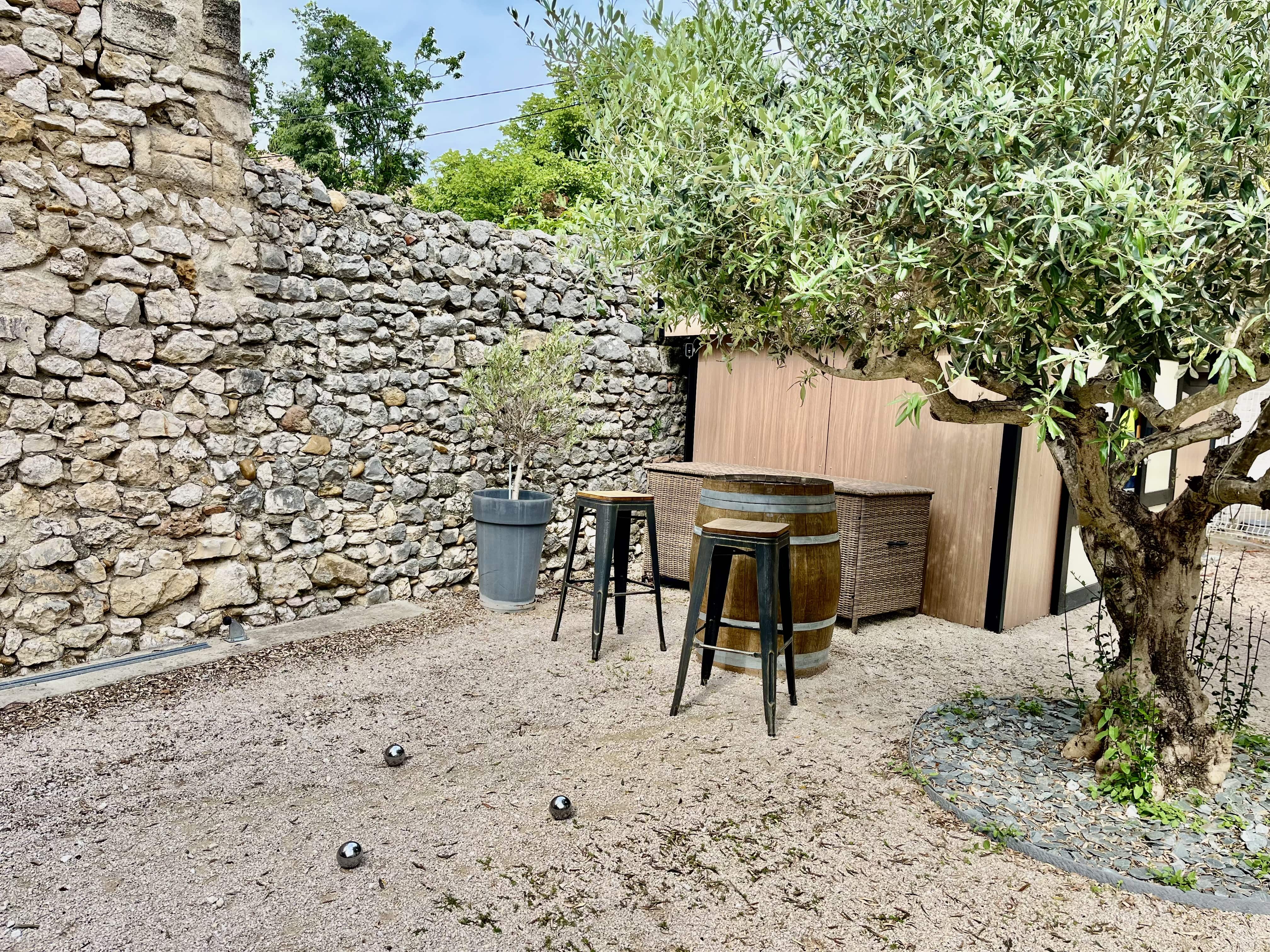 Exterieur: Een mooie, goed onderhouden tuin Geniet van zowel open als overdekte terrassen, uitgerust met kwaliteitsvol tuinmeubilair. De terrassen bieden direct zicht op de tuin en het privézwembad (8x4m, met veiligheidsafdekking), dat de hele dag van de zon geniet. Het water zal dus altijd aangenaam op temperatuur zijn! Er is een petanquebaan en een pingpongtafel aanwezig voor extra plezier. Tot slot beschikt de villa over een privéparking.