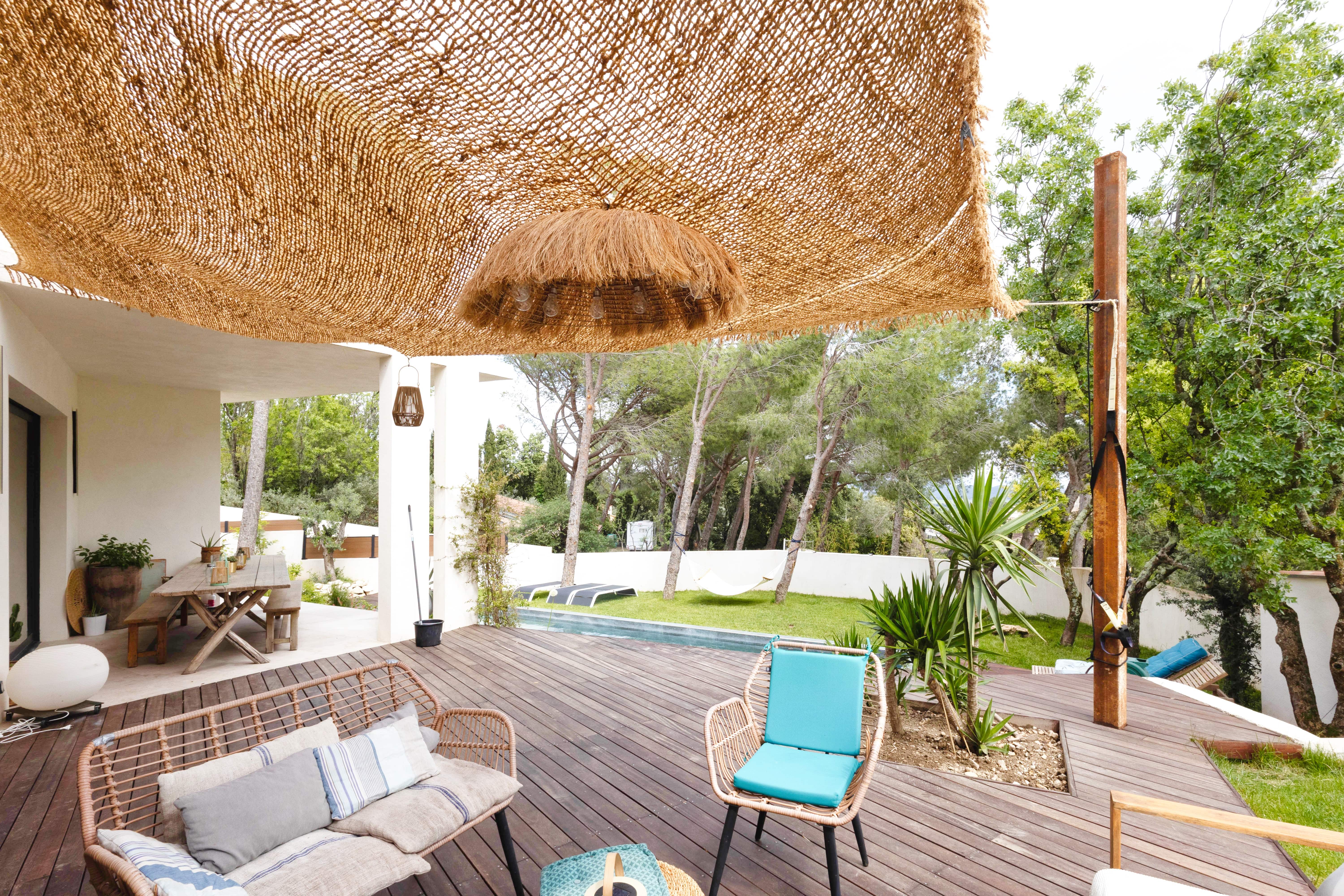 Interieur: De begane grond is zeer licht dankzij de grote schuiframen die uitkijken op de 200m² aan buitenterrassen. De volledig uitgeruste open keuken grenst aan een ruime eetkamer en een gezellige woonkamer, ideaal voor leuke momenten met familie of vrienden. Op de begane grond bevindt zich een master bedroom met een eigen badkamer en directe toegang tot het buitenterras. Op de eerste verdieping zijn er nog 3 slaapkamers en 2 douchekamers. Alle slaapkamers zijn zeer comfortabel en voorzien van airconditioning. Op de eerste verdieping is er ook een ontspanningsruimte waar je kunt lezen, aan yoga kunt doen of gewoon kunt genieten van het mooie uitzicht.