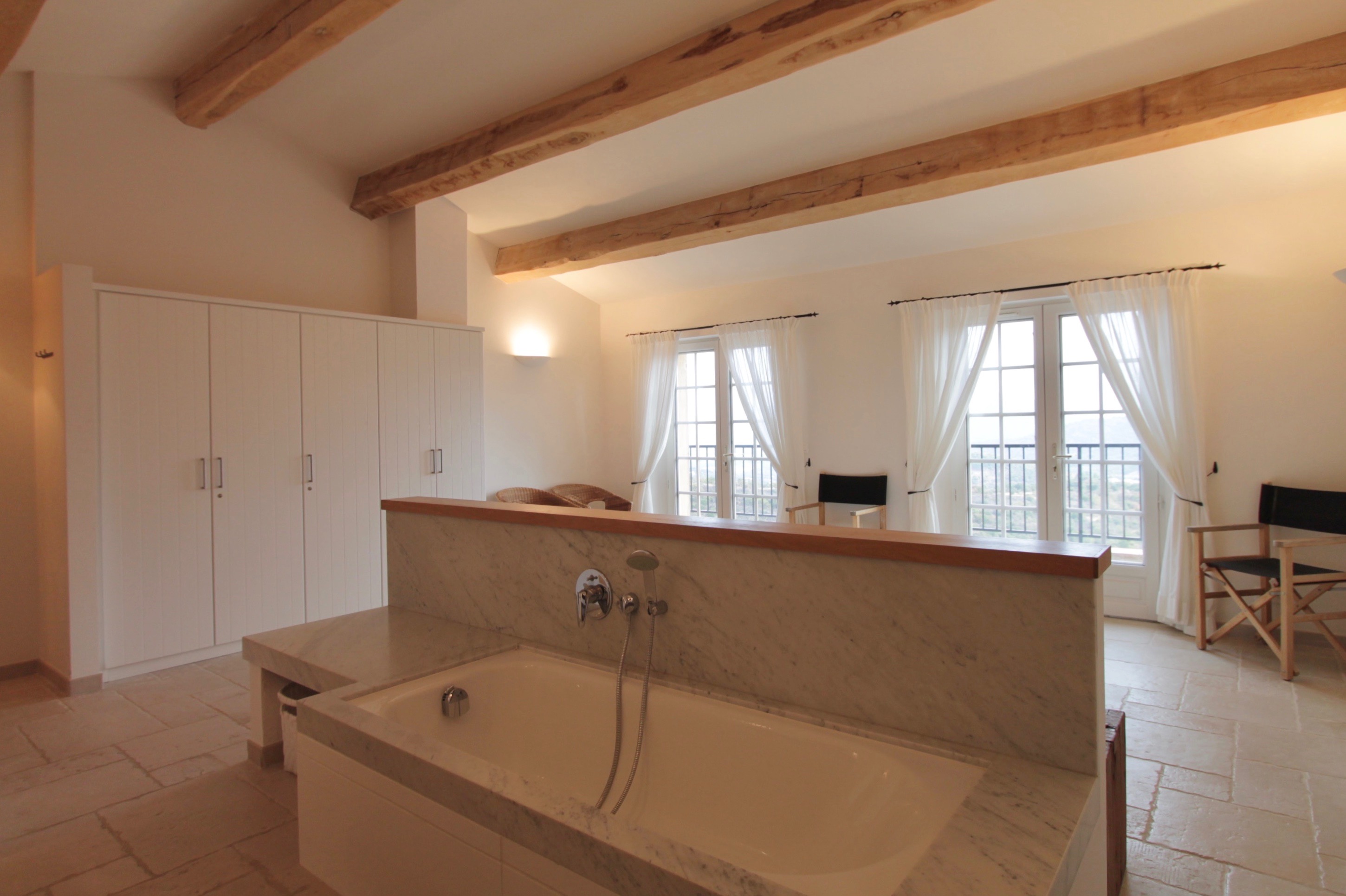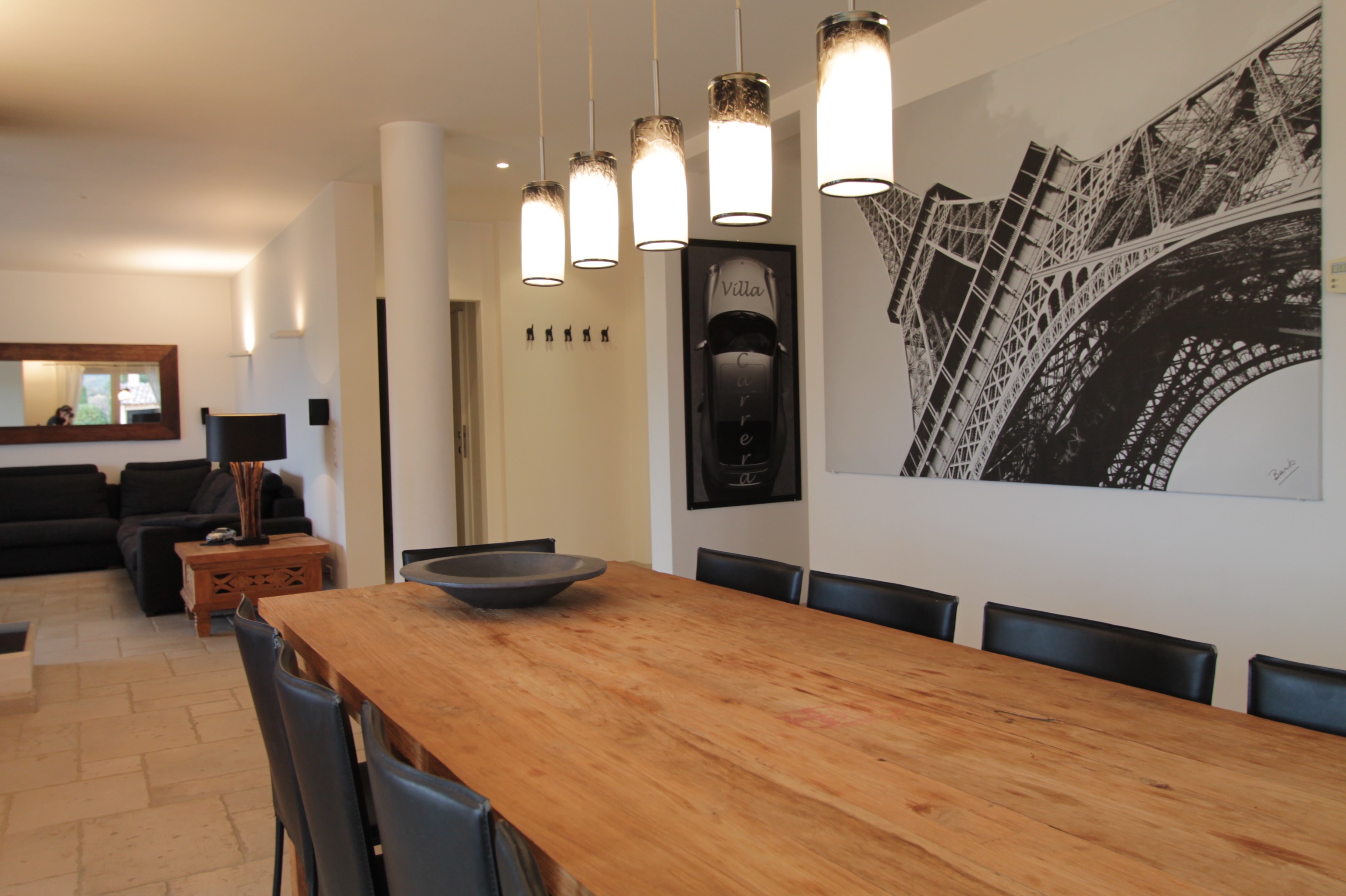 Villa Carrera is een luxueuze vakantievilla, gelegen op een prachtig privé-domein van 4000m2, in het zeer typische dorpje Plan de la Tour (Provence-Alpes-Côte d’Azur). De ligging van deze vakantiewoning in de Côte d'Azur is werkelijk uniek. Het heeft een zeer rustige, natuurlijke omgeving en de zee ligt op amper 10km afstand. Villa Carrera heeft een prachtig aangelegde tuin en vele verschillende ruime open terrassen met luxueus tuinmeubilair. Perfect om te genieten van het eindeloos privé zwembad (12mx4,5m). Het vakantiehuis voor 10 personen ligt op een heuvelflank, dus u geniet van fenomenale panoramische zichten op de variërende natuur van het Massif des Maures, tot de zee van St Maxime. Een werkelijk adembenemend, rustgevend zicht op de prachtige vallei. Dit vakantiehuis met zwembad werd met veel smaak ingericht. Het heeft een zeer ruim, modern en luxueus interieur. Op het gelijkvloers geven de beide slaapkamers en de living rechtstreeks uit op het terras of de tuin. De keuken is ook volledig ingericht en biedt al het nodige comfort. Ook op het eerste verdieping geven 2 kamers uit op een ruim balkon waar je ook weer geniet van een adembenemend zicht. De masterbedroom, met haar luxebadkamer is er eentje om U tegen te zeggen. Er is een multifunctioneel sportterein. LET OP: Geen internet. Villa Carrera is kortom een TOPvakantiehuis dat alles te bieden heeft. Eentje uit de duizend. De ruime slaapkamers zijn steeds voorzien van degelijke springboxbedden en luxueuze badkamers. Een ware parel aan de Côte d’Azur met uitzonderlijke prijs/kwaliteit verhouding.