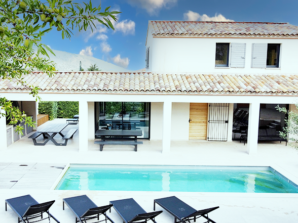 Villa La Provenca is een modern vakantiehuis voor 8p (+2 kinderen) met verkoeling en verwarmd privézwembad (8m op 3,5m) gelegen in Malaucène aan de voet van de Mont Ventoux.