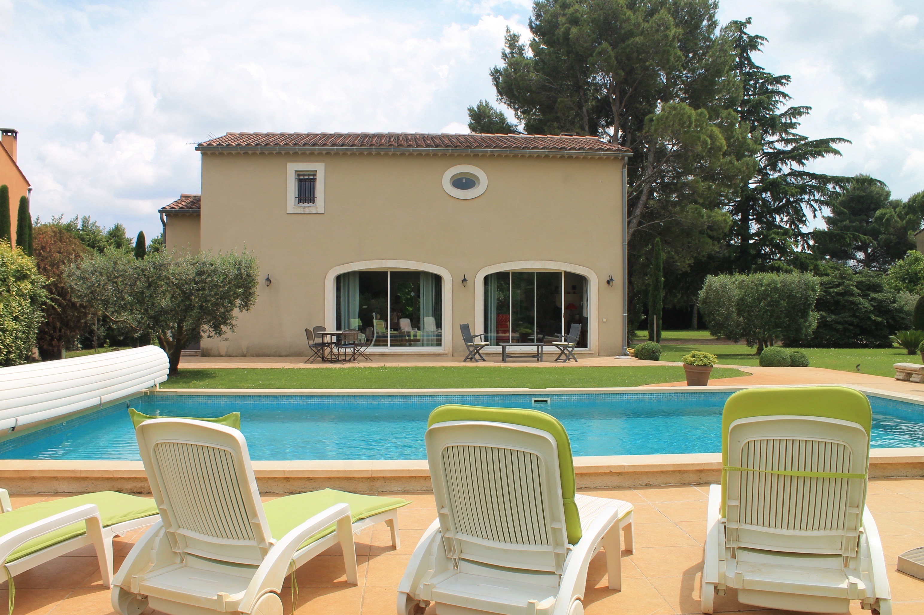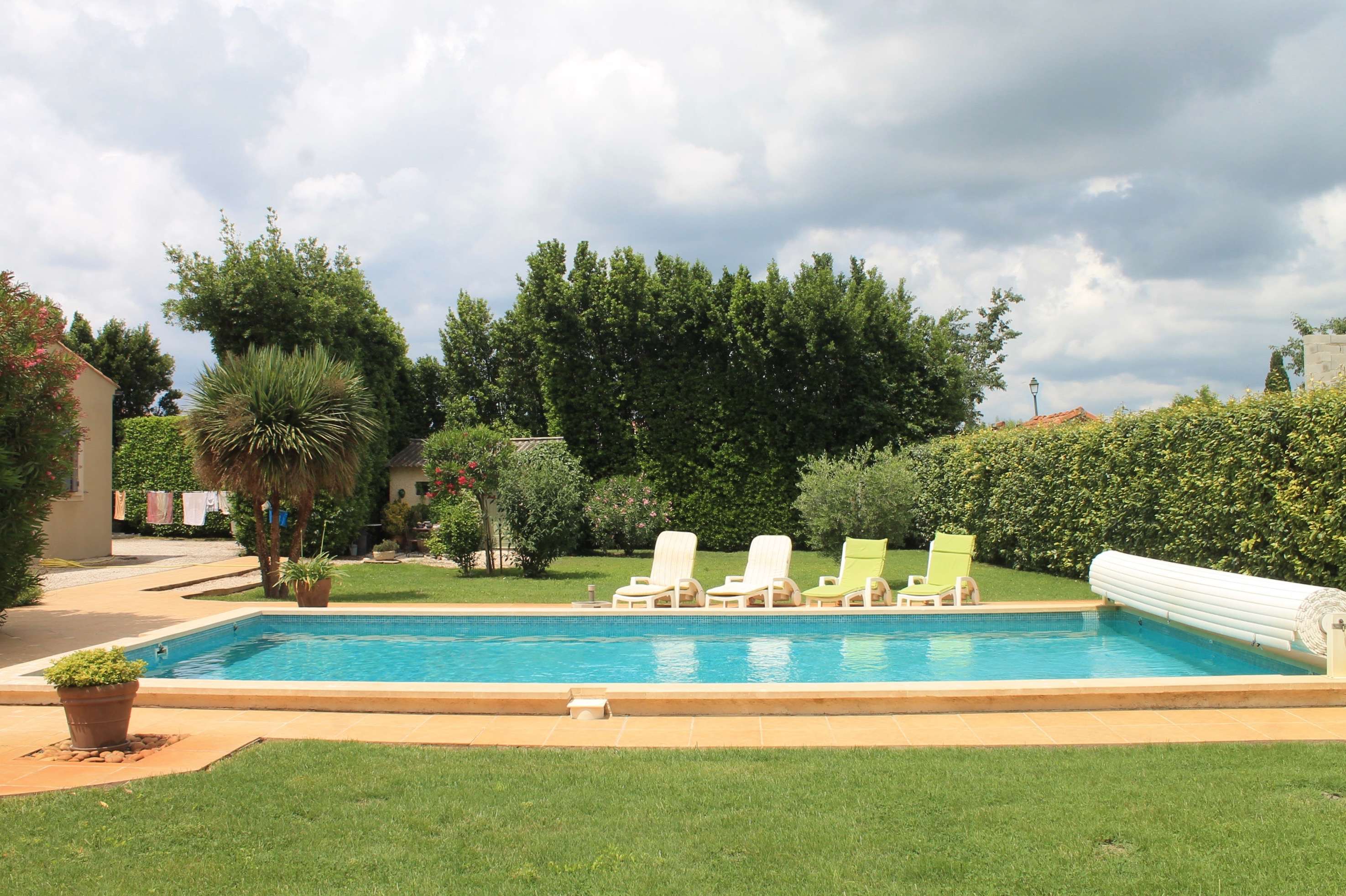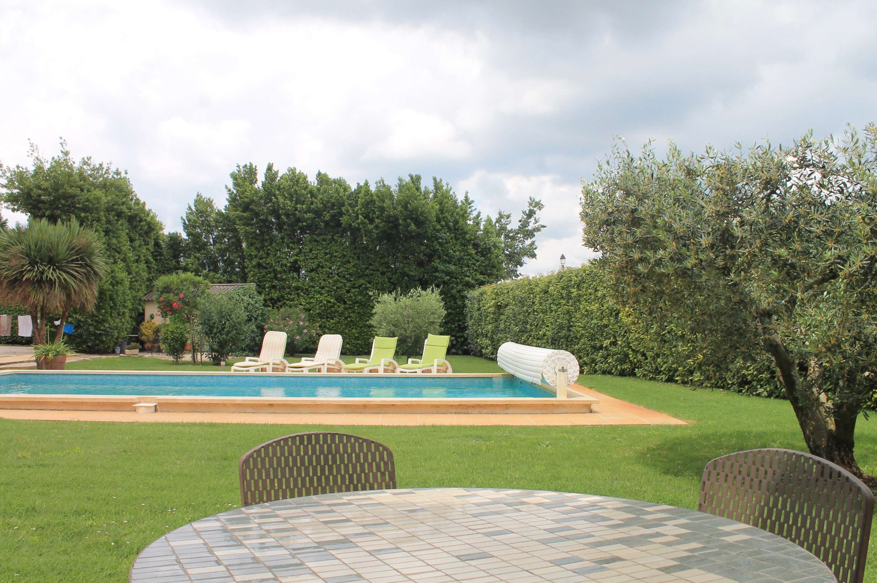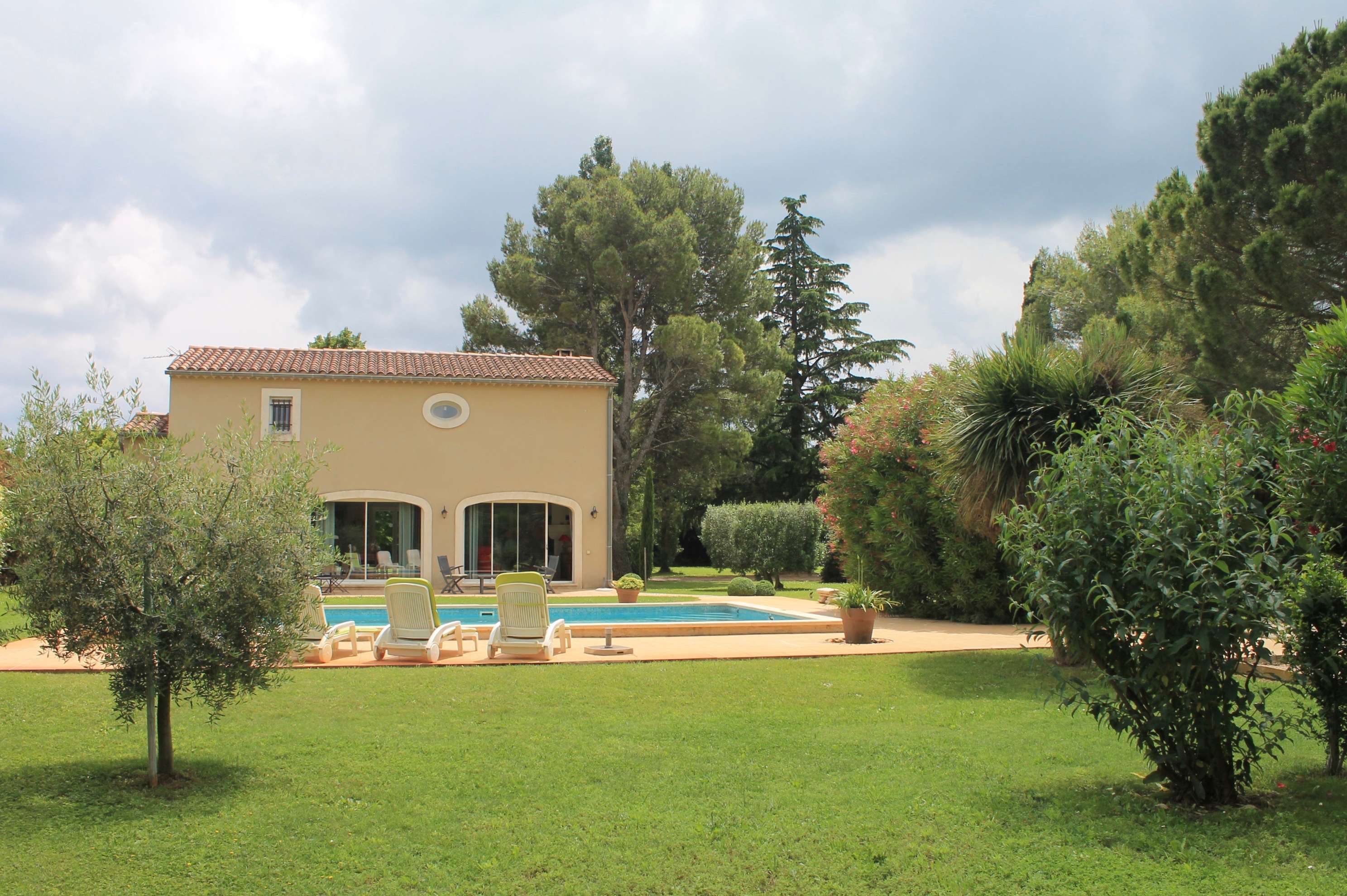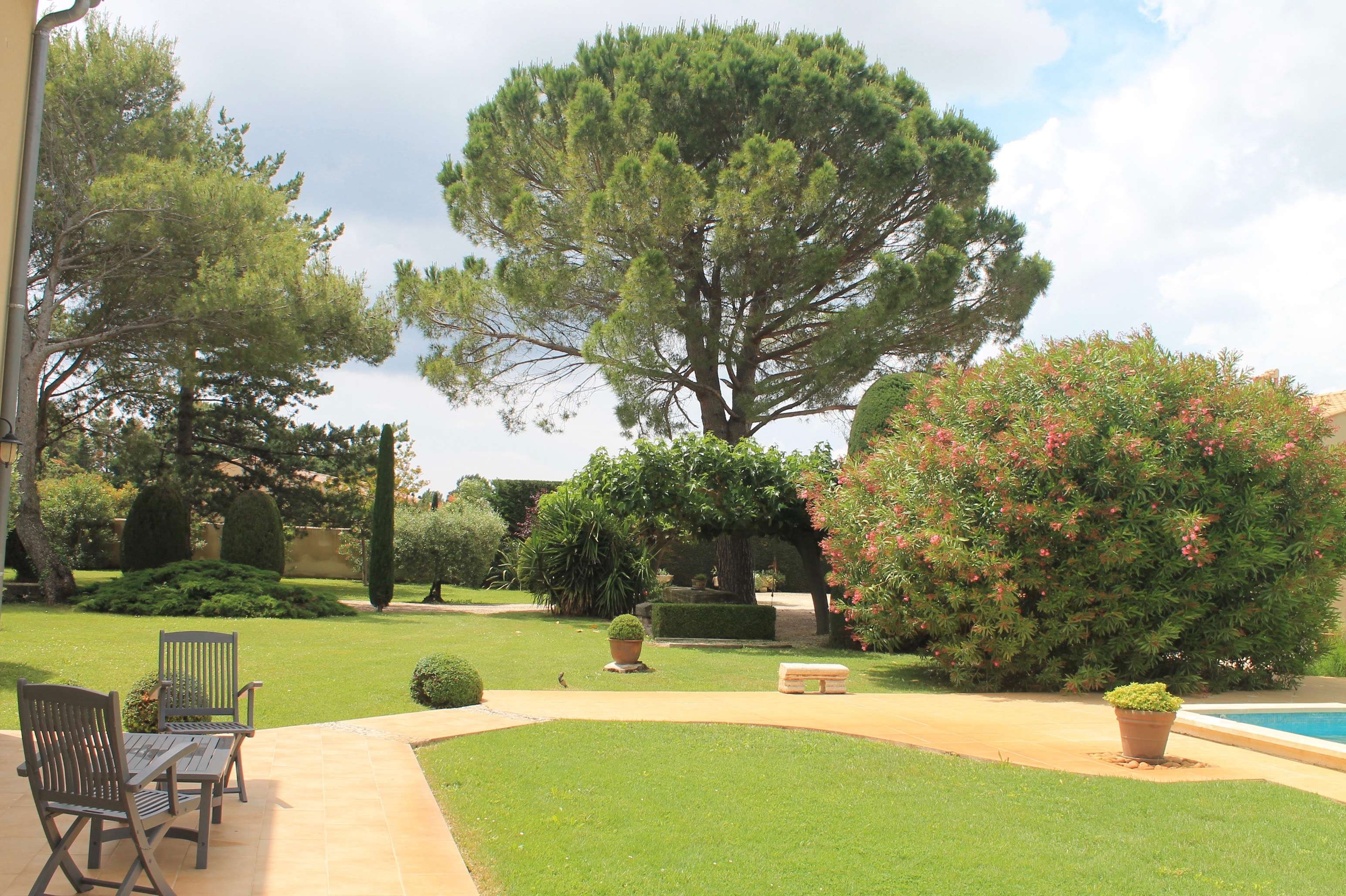 Exterieur: Prachtige provençaalse tuin Dit vakantiehuis in de Provence op wandelafstand van het dorpje is omgeven door een weelderige, zorgvuldig aangelegde tuin met palmbomen, bloeiende struiken en grote grasperken. Het mooie privézwembad (10x5m, 1,4 m diep) nodigt uit tot een verfrissende duik. Op het ruime zonneterras met voldoende tuinmeubilair geniet je volop van de rust en het zuiderse buitenleven. Je beleeft de charme van het dorpje Maillane. 's Morgens kan je te voet naar de bakker. De woning geniet van een rustige omgeving en biedt volledige privacy. De eigenaar woont ook op het domein, discretie is verzekerd.
