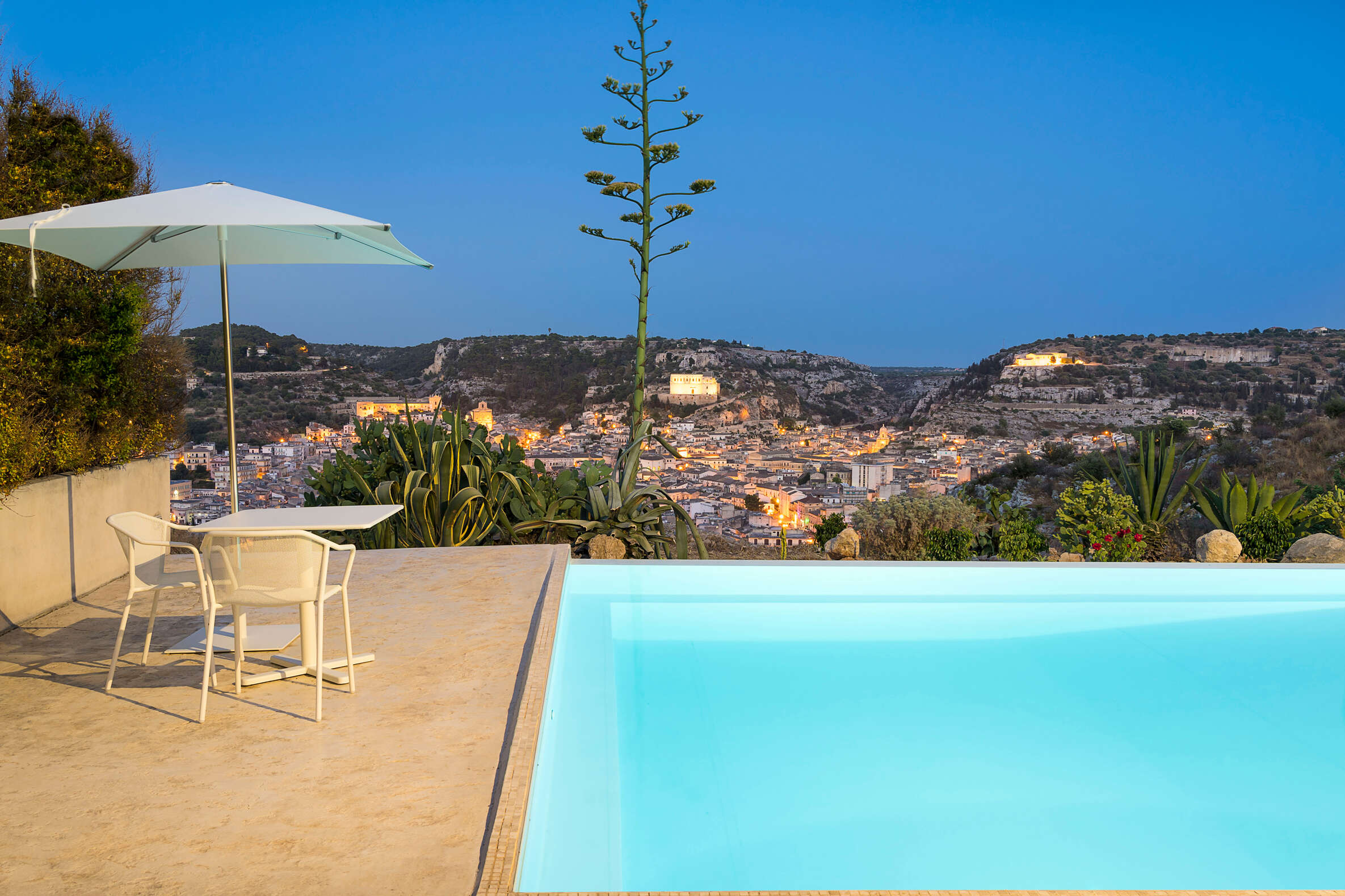 Omgeven door een rustig, pittoresk landschap met zijn typische olijfbomen en droge stenen muren, heeft de vakantiewoning in Sicili een top ligging. Er zijn meerdere terrassen en overloopzwembad (infinity pool) met uitzicht op de stad Scicli en de vallei.