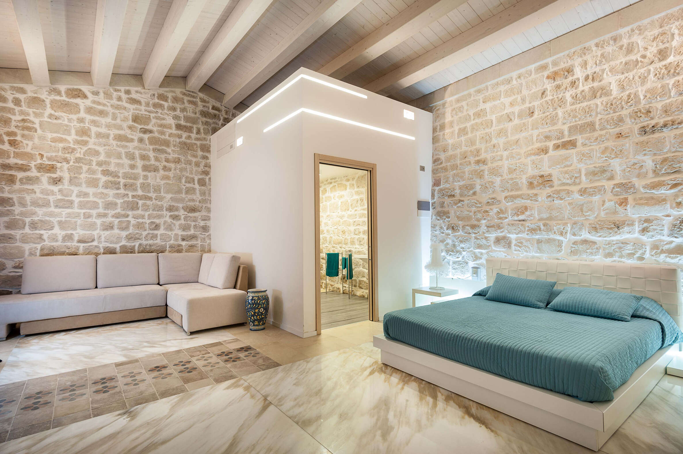 Het vakantiehuis met privézwembad is nauwkeurig gerestaureerd om ultiem comfort te bieden. Zo heeft dit vakantiehuis voor 8 personen een exclusieve spa met hydromassagebad en sauna. Het interieur met typische, witte stenen muren is voorzien van airconditioning en internet wi-fi. Het woongedeelte omvat een moderne keuken en een grote woonkamer met satelliet-tv, het slaapgedeelte bestaat uit vier comfortabele slaapkamers met elk een eigen en-suite badkamer en onafhankelijke toegang van buitenaf, waarvan er één zich in het nabije, houten vrijstaande bijgebouw bevindt.