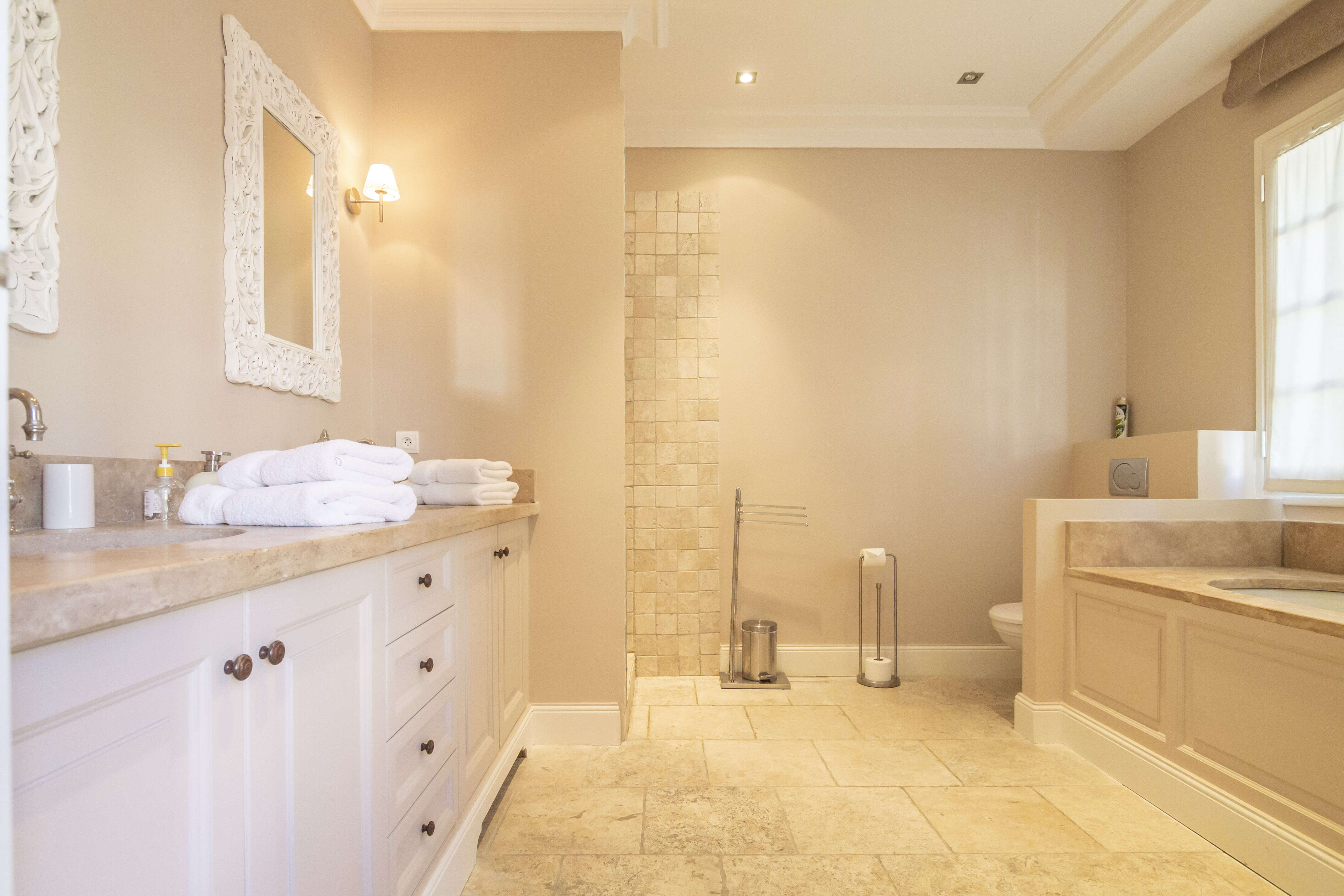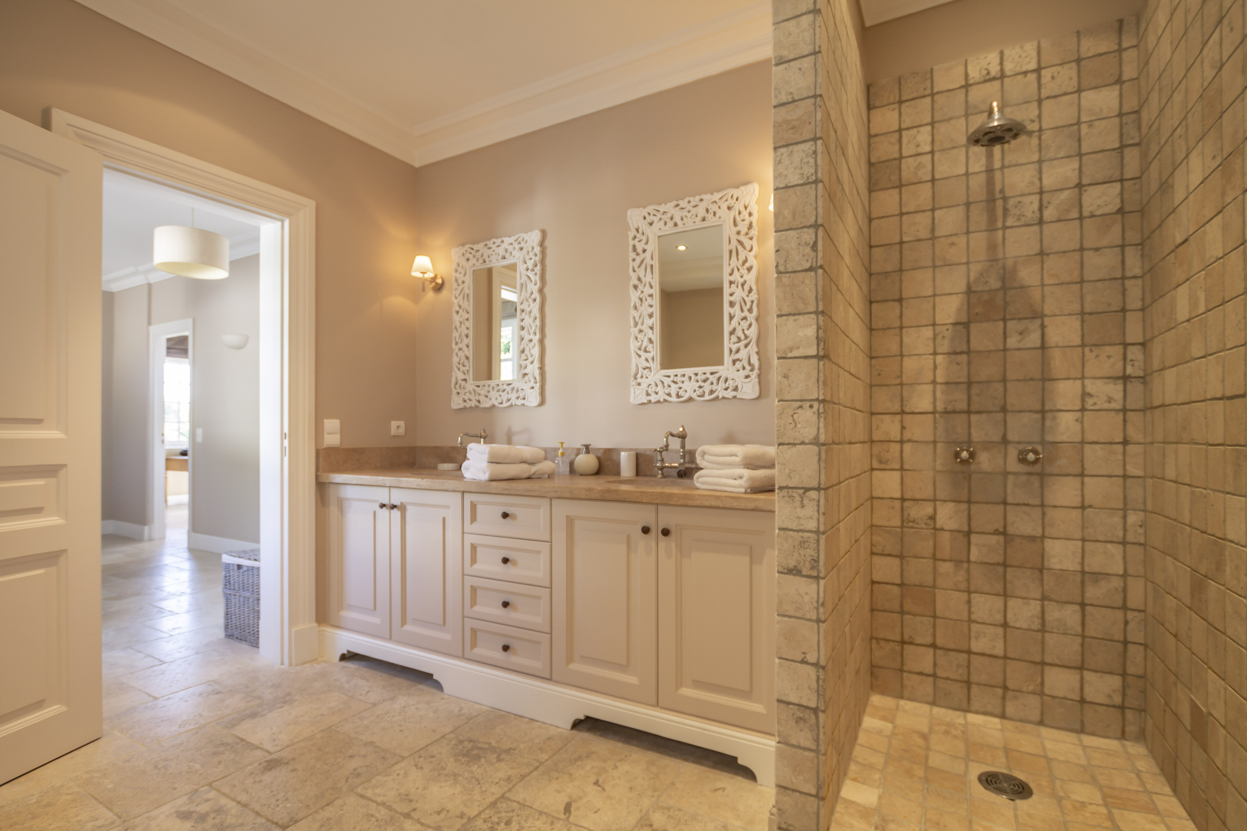 De vakantievilla met zwembad bevat 3 niveaus, bijna alle ruimtes geven uit op de ruime open en overdekte terrassen met adembenemende zeezichten. De bovenste terrassen kunnen verwarmd worden met hittelampen om ook s'avonds tijdens het laagseizoen aangenaam buiten te genieten. Op het laagste niveau is er via een aparte ingang een soort SPA met opnieuw terrassen en zeer veel ruimte. Hier is een aparte keuken, salon en prachtige douchekamer in natuursteen, waardoor je het eigenlijk eerder een privé appartement kan noemen. Perfect voor een koppel met kinderen of een ouder koppel dat een beetje meer privacy kan gebruiken. Je komt hier ook meteen uit op het lager gelegen privé zwembad en mooie tuin. Dit deel van de vakantievilla voor 10 personen geeft een gevoel van luxe en welzijn. In dit deel van de woning is er geen airco, er zijn meerdere ventilatoren. Door het feit dat het appartement lager gelegen is, blijven de ruimtes zeer fris.