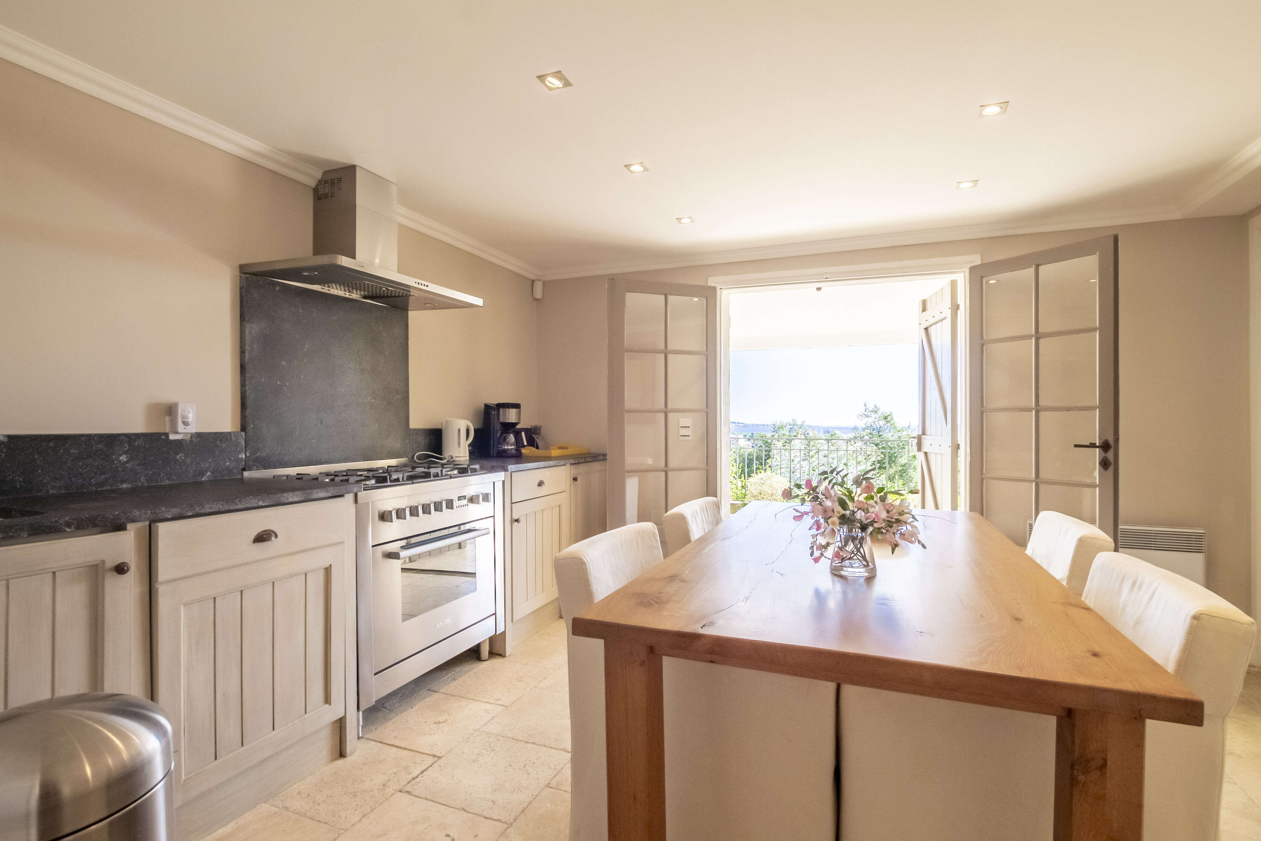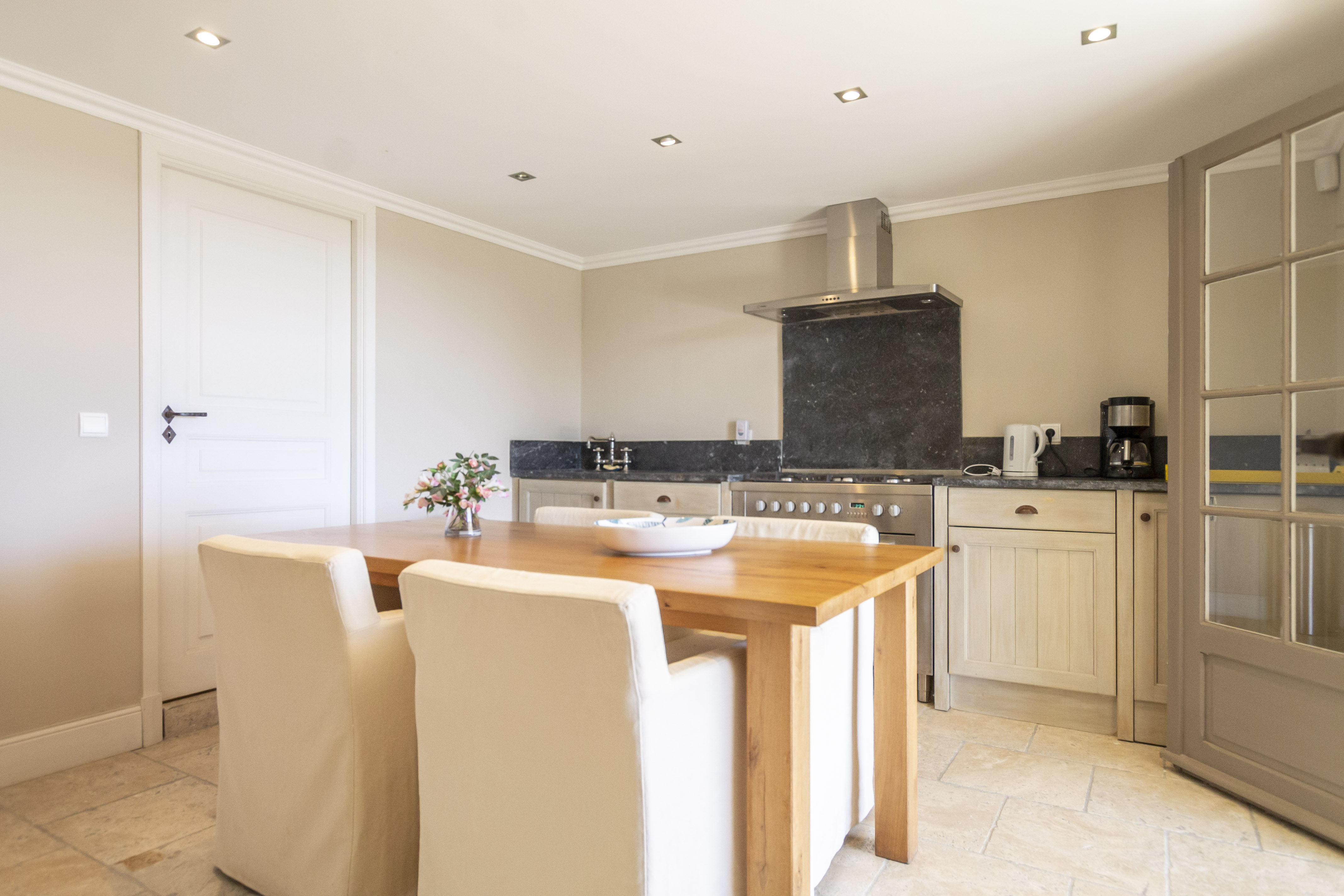 Deze prestigieuze vakantievilla voor 10 personen werd met zeer veel smaak gerenoveerd in een eigentijdse stijl. Er werd gebruik gemaakt van een mix van een landelijk en moderne luxe materialen. Mooie vol-eiken deuren en natuursteen geven de extra charme aan het vakantiehuis met zicht op zee. Elke kamer heeft zijn eigen cachet. Er is een ruim bureau en overal sterkte wifi. Perfect voor diegene die zich om professionele redenen even moeten afzonderen. De keuken is professioneel ingericht met hoogwaardige materialen zoals een indrukwekkend gasfornuis met 6 kookvuren en espressomachine.