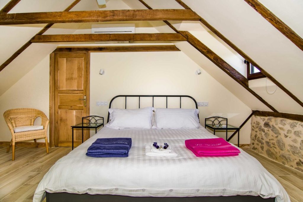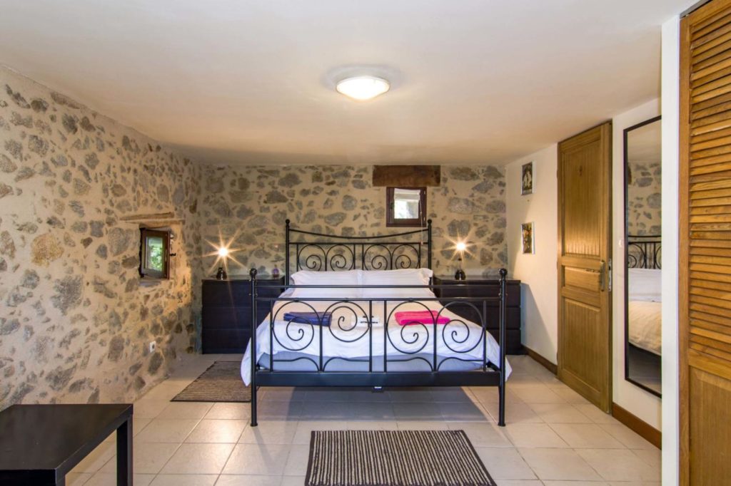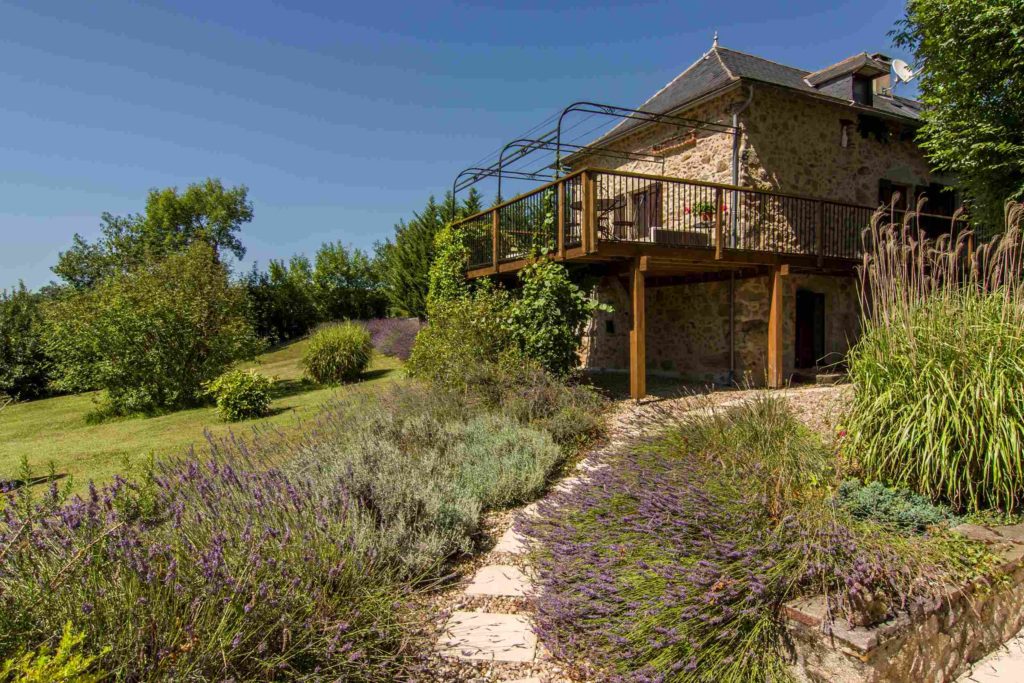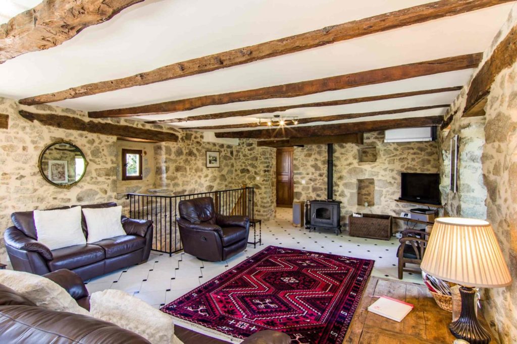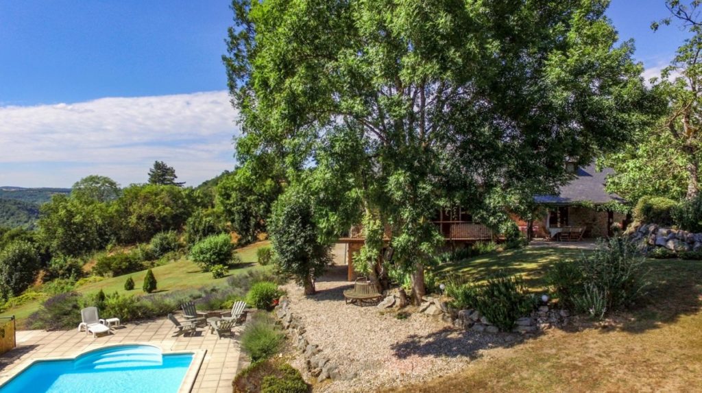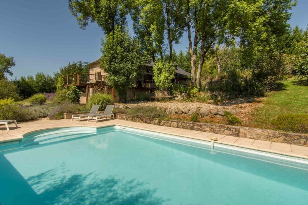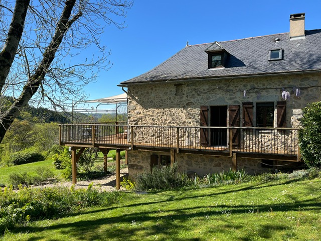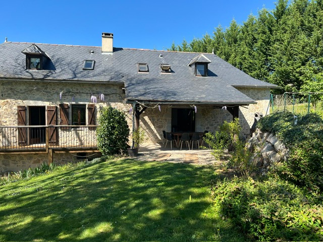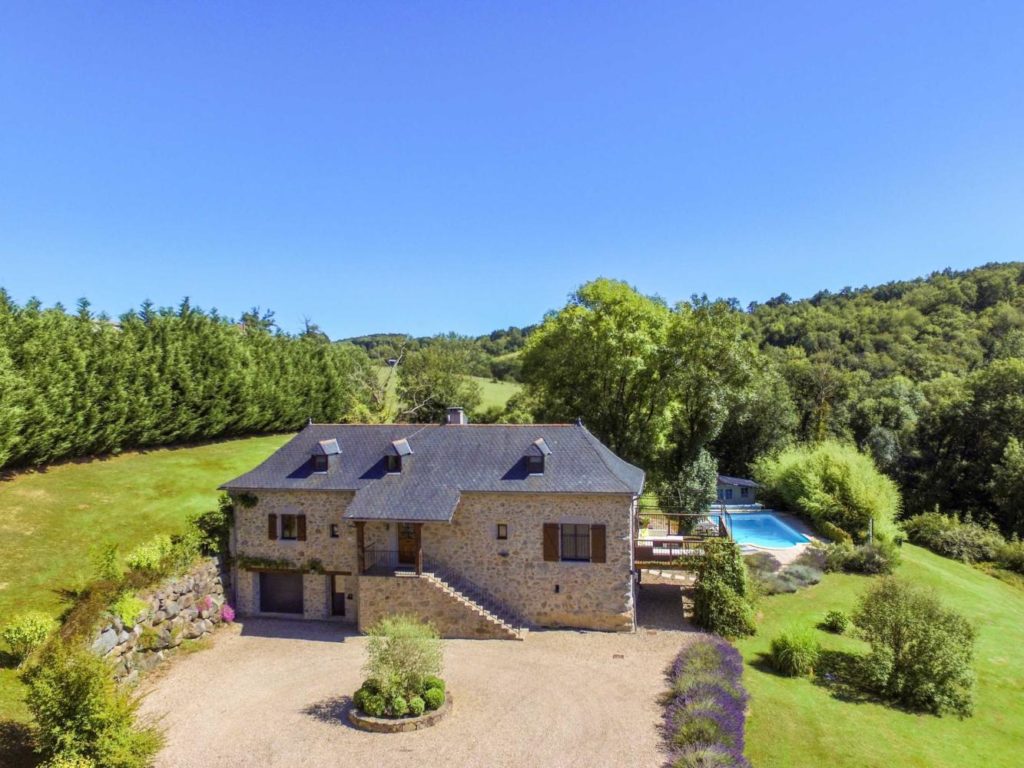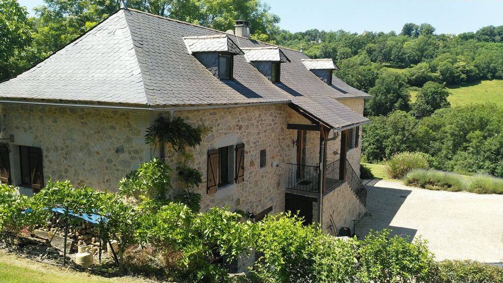 Interieur: Sfeer en karakter Dit vakantiehuis in Aveyron is verdeeld over drie verdiepingen: de leefruimte bevindt zich op de eerste verdieping, terwijl de slaapkamers verspreid liggen over de begane grond en de tweede verdieping. De traditionele charme is overal voelbaar door de natuursteen en prachtige houten balkenten balken. De open keuken met eetruimte baadt in het licht en geeft directe toegang tot een overdekt terras — perfect voor gezellige maaltijden in de buitenlucht. De tweede verdieping is volledig gewijd aan twee prachtige master bedrooms, elk met een eigen badkamer. De twee andere slaapkamers bevinden zich op de begane grond, waaronder een sfeervolle tweepersoonskamer met directe toegang tot de tuin en het zwembad — ideaal voor wie wat meer privacy wenst.