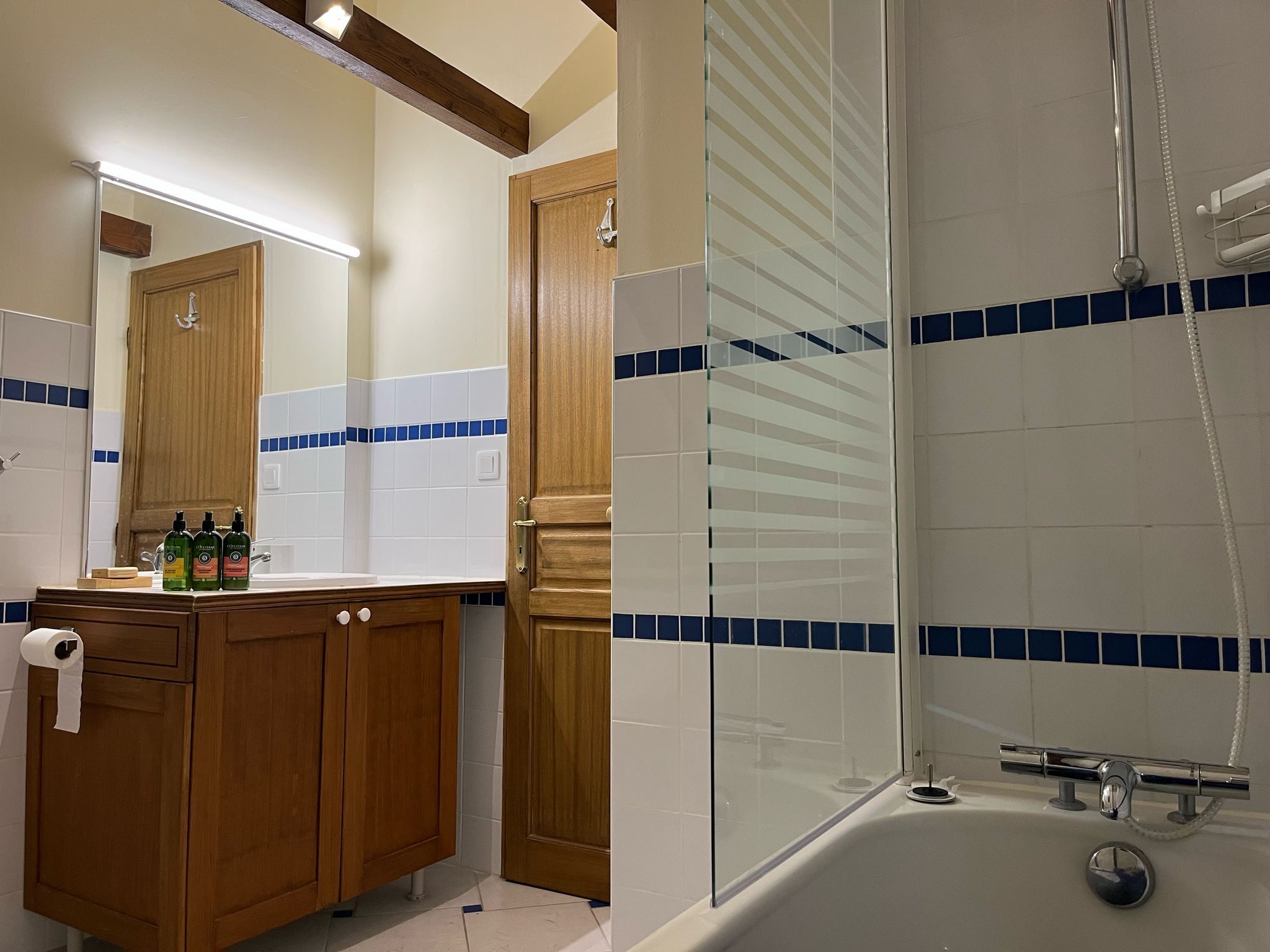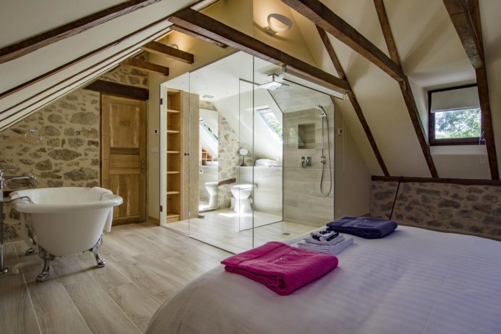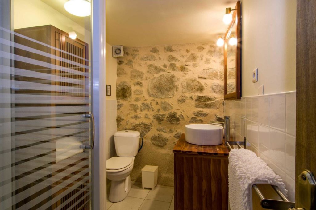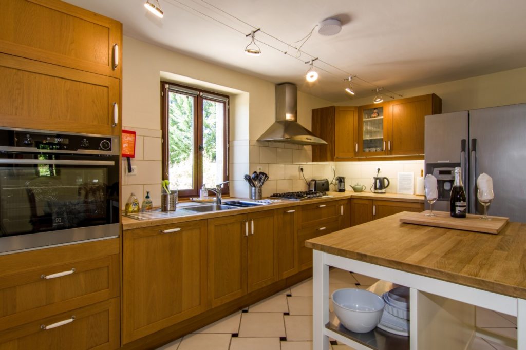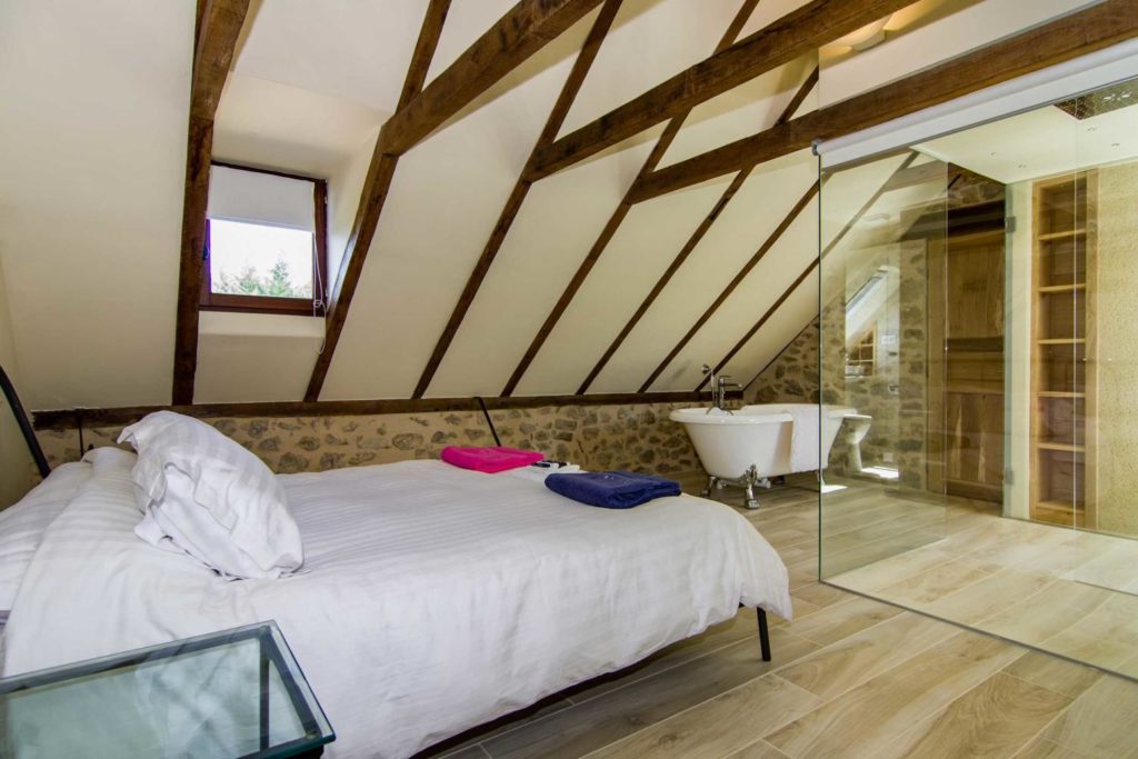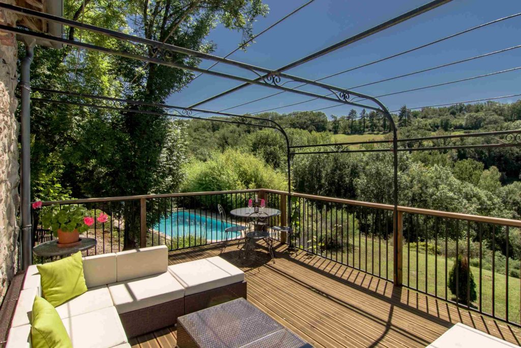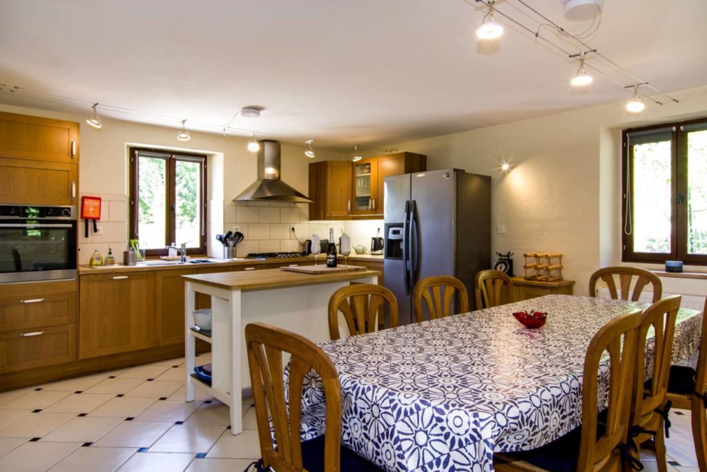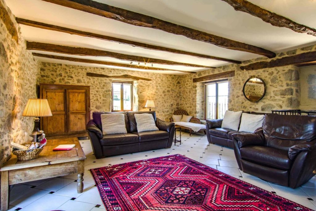 Interieur: Sfeer en karakter Dit vakantiehuis in Aveyron is verdeeld over drie verdiepingen: de leefruimte bevindt zich op de eerste verdieping, terwijl de slaapkamers verspreid liggen over de begane grond en de tweede verdieping. De traditionele charme is overal voelbaar door de natuursteen en prachtige houten balkenten balken. De open keuken met eetruimte baadt in het licht en geeft directe toegang tot een overdekt terras — perfect voor gezellige maaltijden in de buitenlucht. De tweede verdieping is volledig gewijd aan twee prachtige master bedrooms, elk met een eigen badkamer. De twee andere slaapkamers bevinden zich op de begane grond, waaronder een sfeervolle tweepersoonskamer met directe toegang tot de tuin en het zwembad — ideaal voor wie wat meer privacy wenst.
