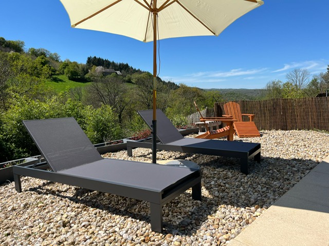 Exterieur: Ruimte en rust Een groene omgeving en een panoramisch uitzicht op de omliggende natuur wachten op u. Het grote privé verwarmd zwembad (10x5 m, max. diepte 2 m), geopend van mei tot oktober, is omringd door een prachtige tuin met mooie bomen die natuurlijke schaduwplekjes creëren. Aan de zijkant van het huis is recent een verhoogd houten terras toegevoegd — een heerlijke plek om te ontspannen en op elk moment van de dag van het uitzicht te genieten. De weelderige en bloemrijke tuin straalt een rustige en harmonieuze sfeer uit, ideaal om volledig tot rust te komen. Een waar toevluchtsoord midden in de natuur!