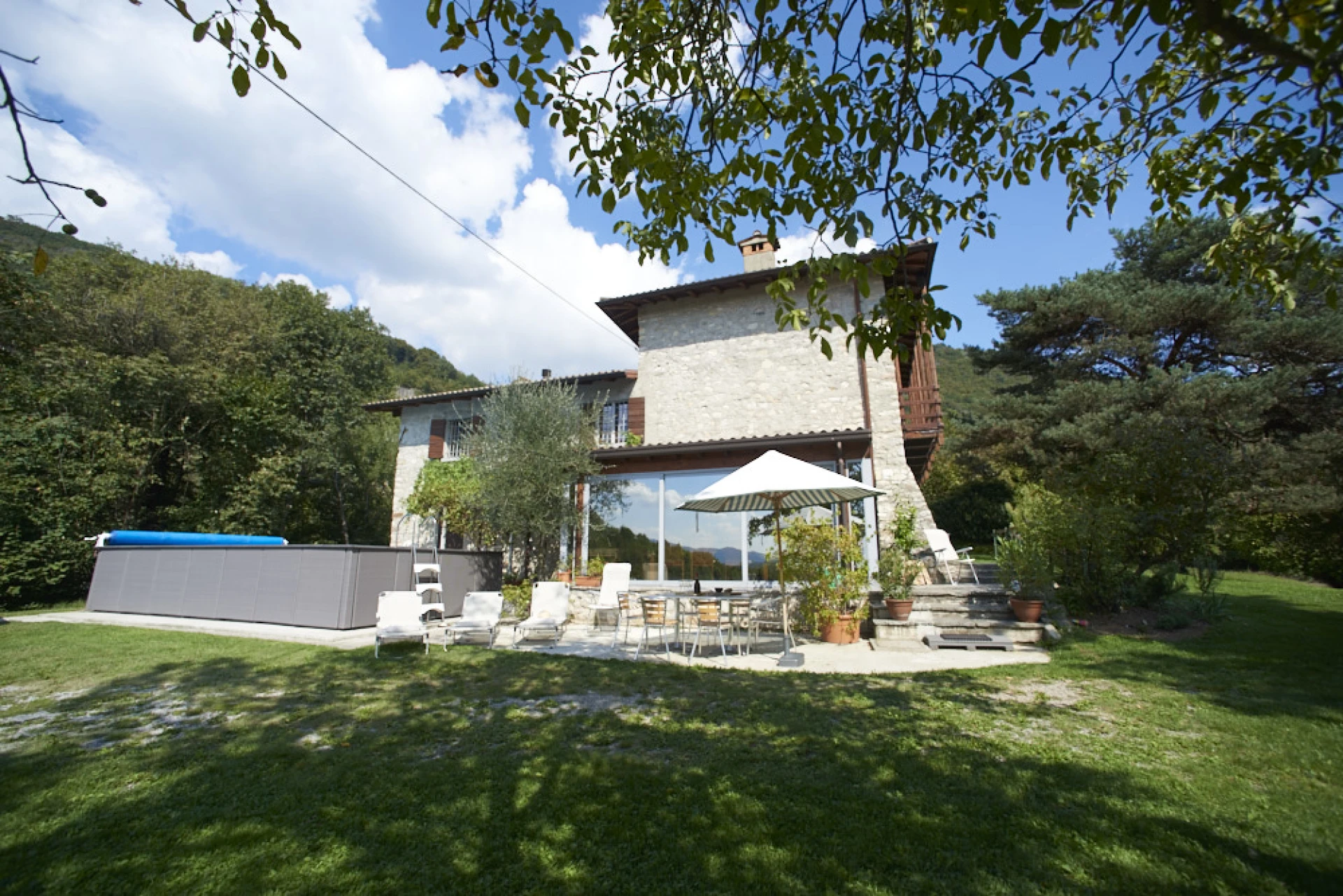 La Pradasella is een zeer leuke en heel typische cascina-hoeve met privé verwarmd zwembad gelegen in Caprino Bergamasco (Comomeer, Italië). Het staat op de top van een heuvel aan de voet van de Alpen, op zo'n 450m hoogte, gelegen tussen Lecco en Bergamo. Aan de ene kant afgeschermd door kastanjebomen en langs een andere kant een panoramisch zicht op de vallei van de Adda rivier tot Milaan (bij helder weer).