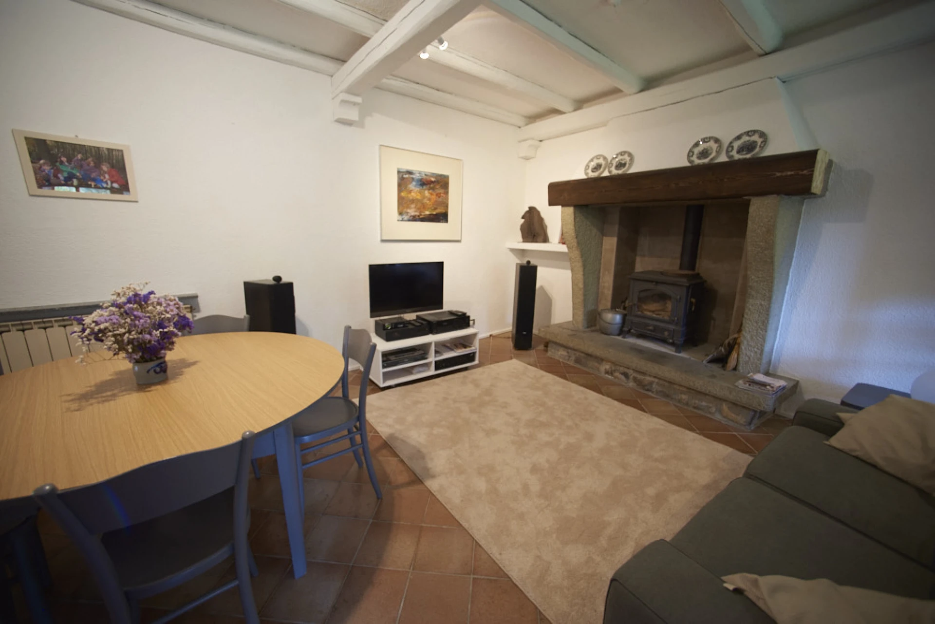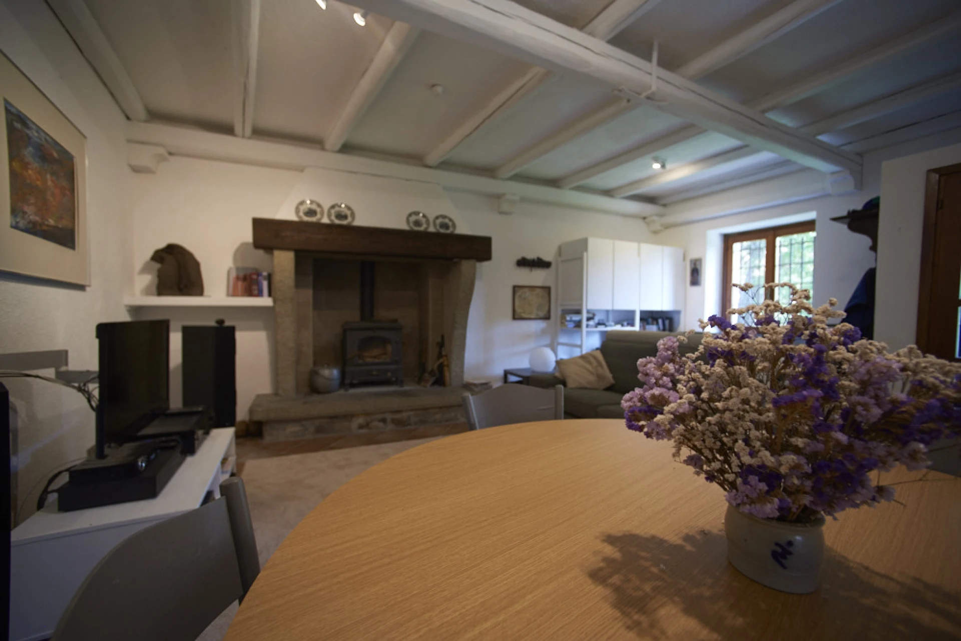 Woonkamer: open haard , TV
