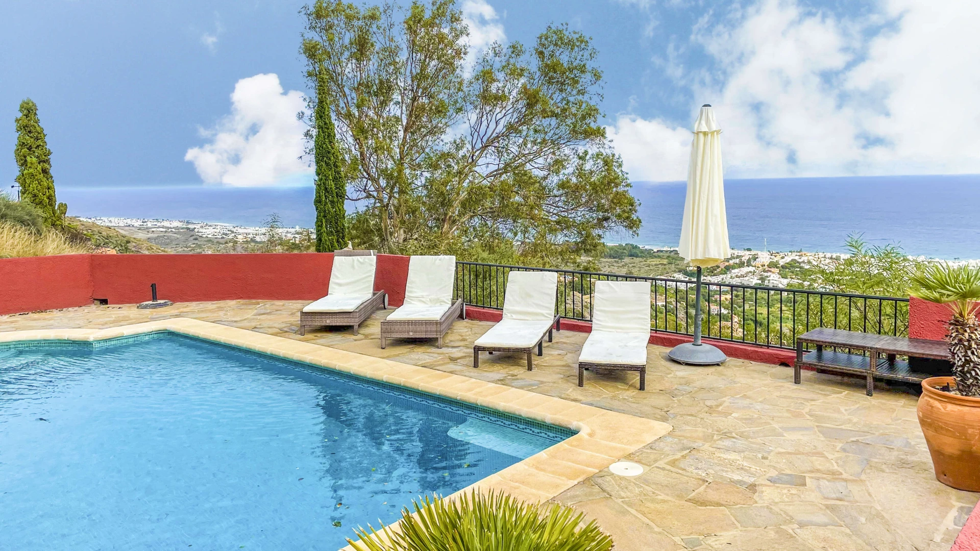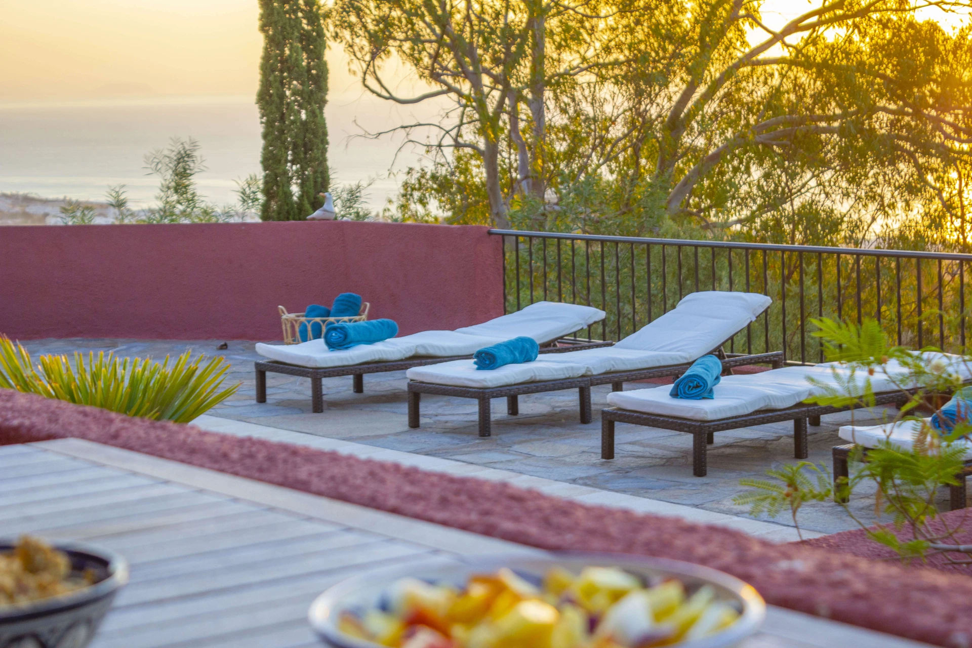 Buiten genieten krijgt een nieuwe betekenis in deze prachtige vakantievilla in La Parata, het meest prestigieuze deel van Mojácar. Het grote Moorse terras biedt panoramisch zeezicht en kijkt uit over het privézwembad. Er zijn meerdere zithoeken, comfortabele ligbedden en plekken met zowel zon als schaduw, perfect voor wie op zoek is naar een vakantiehuis met zwembad (8x4m, diepte van 0,5 tot 2,5m) en uitzicht op zee in Zuid-Spanje. De mediterrane tuin en het ruime terras nodigen uit tot lange avonden buiten.
