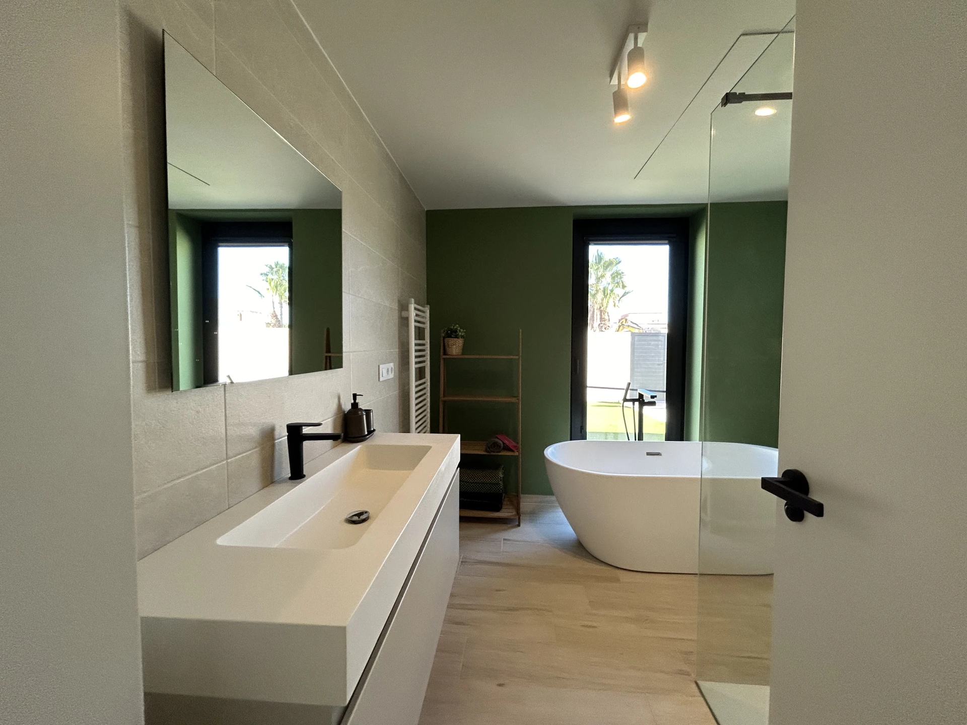 Dit vakantiehuis in Spanje voor 7 personen beschikt over een lichte en ruime leefruimte met open keuken, eetplaats en comfortabele zithoek. Grote raampartijen zorgen voor een aangename lichtinval en een directe connectie met het terras en het zwembad.