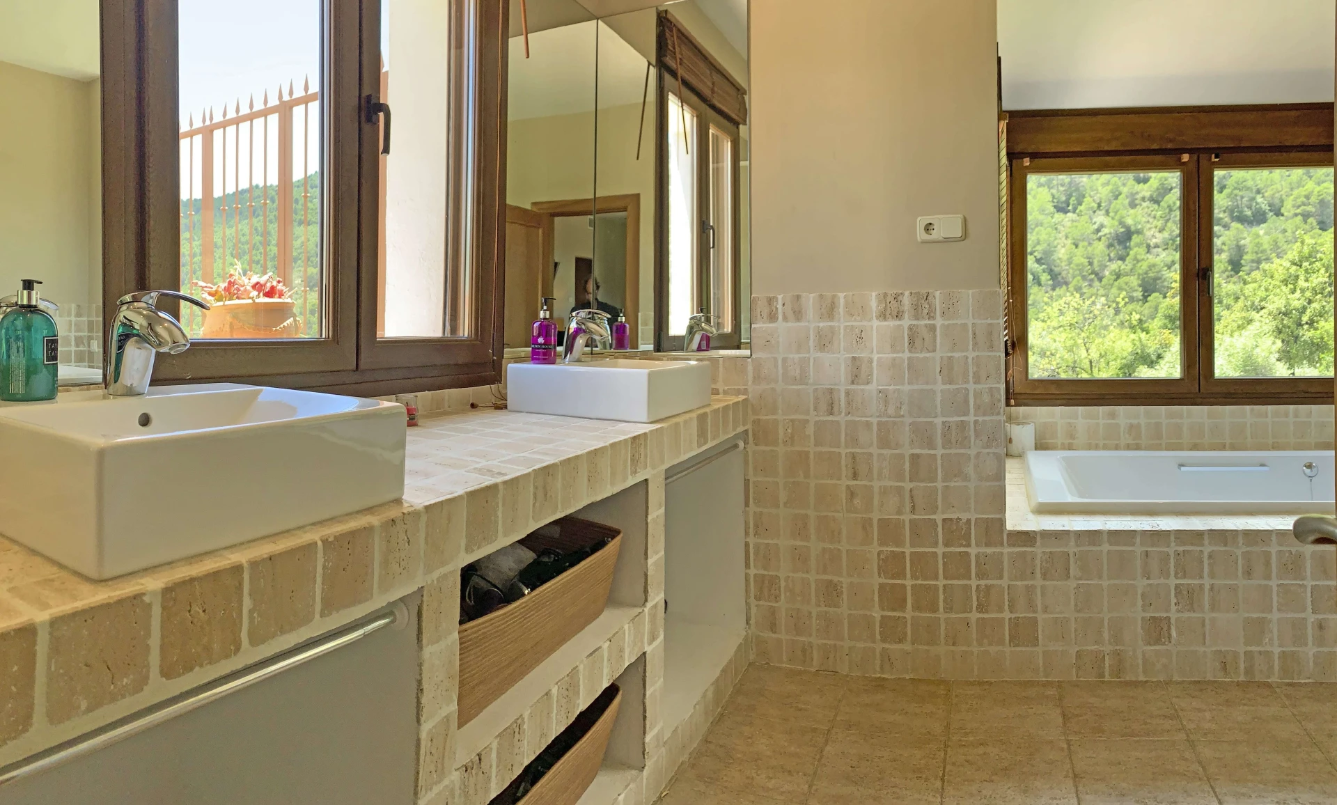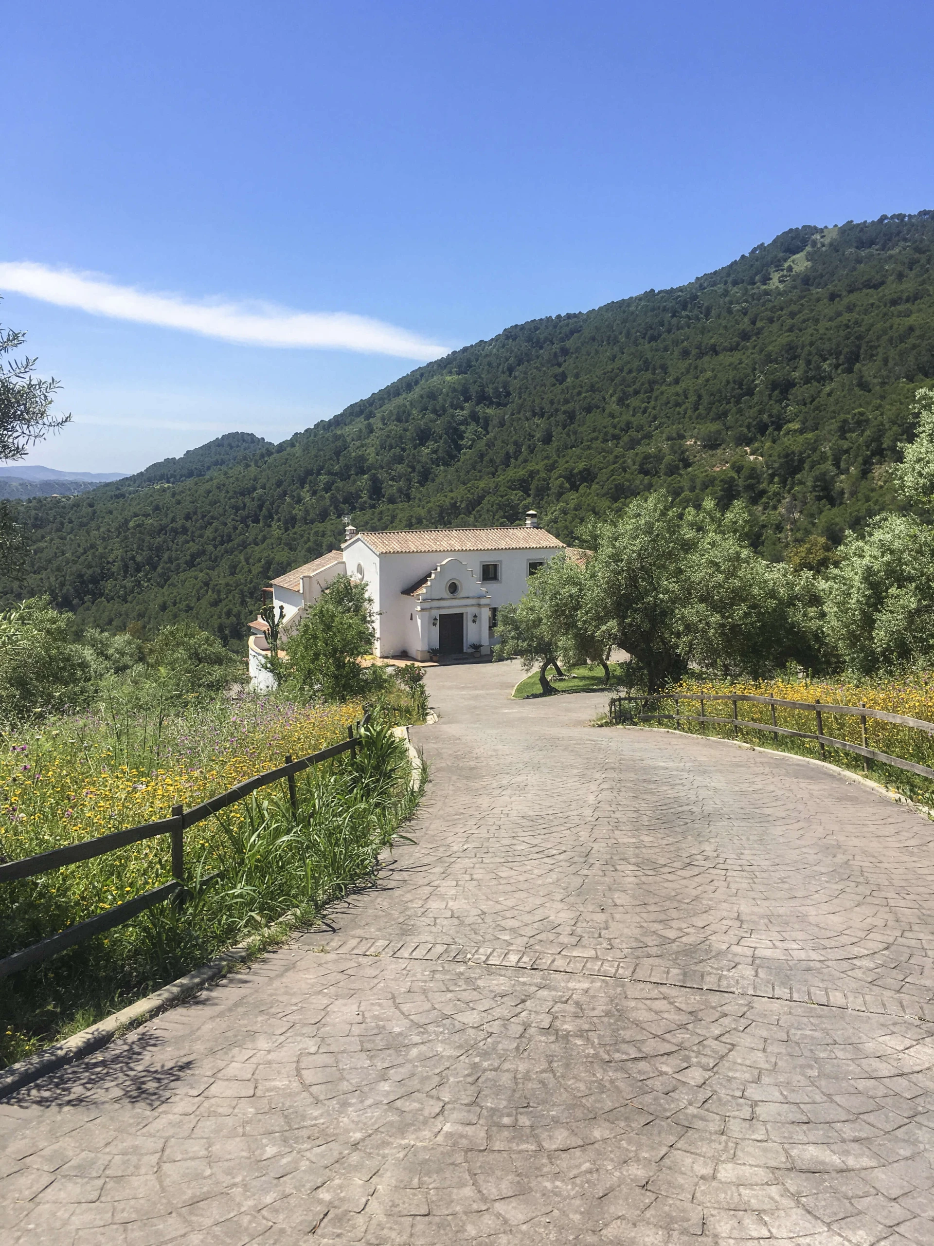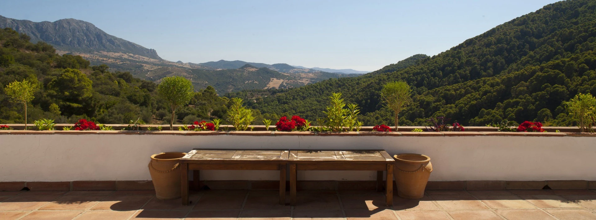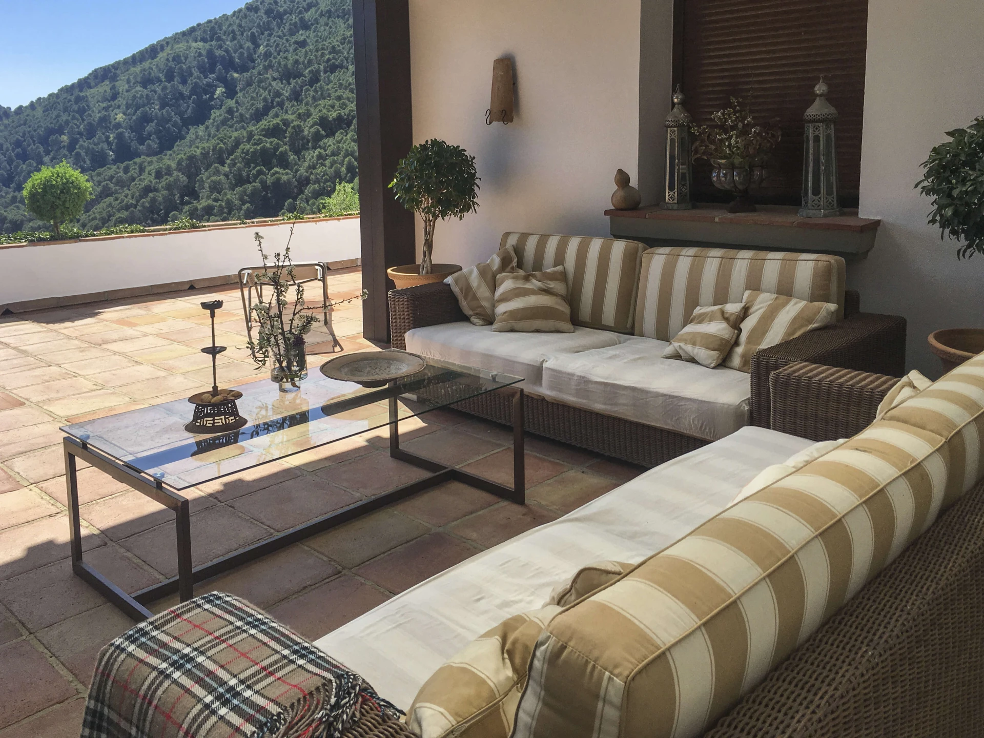 Vanop het overdekt terras met hippe loungeset heb je een adembenemend zicht op de omliggende heuvels en het groen van Andalusia. Onverstoorde natuur zonder een ander huis of straat in zicht. Als je goed kijkt, zie je soms een prachtig zwart paard of vriendelijk ezeltje op de heuvel grazen die in de vallei wonen. De terrassen geven ook uit op het lager gelegen privé zwembad.